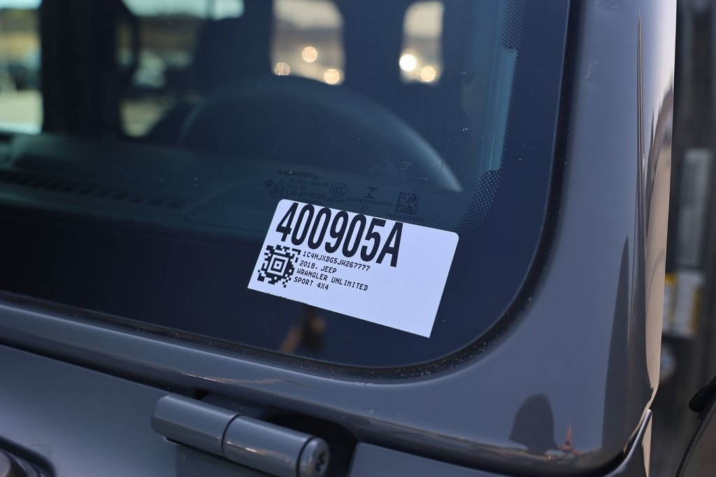 Sting-Gray Clearcoat 2018 Jeep Wrangler Unlimited Sport 4WD 6-Speed Manual 3.6L V6 24V VVT 8 Speakers, Air Conditioning, Brake assist, Cloth Low-Back Bucket Seats, Electronic Stability Control, Front fog lights, ParkView Rear Back-Up Camera, Quick Order Package 23B, Radio: Uconnect 3 w/5" Display, Wheels: 17" x 7.5" Black Steel Styled.Recent Arrival!Awards: * 2018 KBB.com 10 Most Awarded Brands