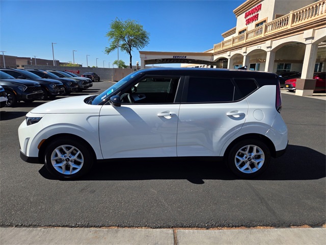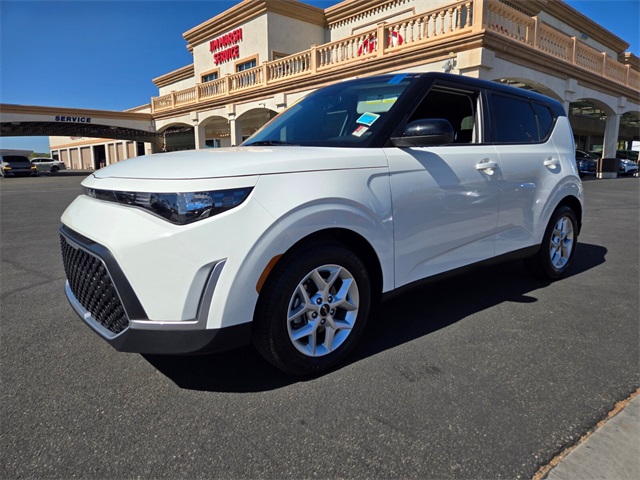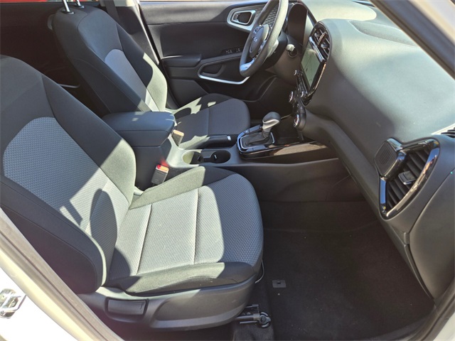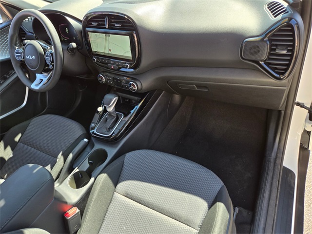 Recent Arrival!29/35 City/Highway MPGClear White w/Black Roof 2023 Kia Soul S FWD IVT 2.0L I4 DOHCIf you don't drive here, you can't save here!Price may not include recon fee. 4-Wheel Disc Brakes, 6 Speakers, ABS brakes, Air Conditioning, Apple CarPlay & Android Auto, Auto High-beam Headlights, Brake assist, Bumpers: body-color, Carpeted Floor Mats, Compass, Delay-off headlights, Driver door bin, Driver vanity mirror, Dual front impact airbags, Dual front side impact airbags, Electronic Stability Control, Envelope Cargo Net, Exterior Parking Camera Rear, Front anti-roll bar, Front Bucket Seats, Front Center Armrest, Front reading lights, Front wheel independent suspension, Fully automatic headlights, Illuminated entry, Low tire pressure warning, Occupant sensing airbag, Outside temperature display, Overhead airbag, Overhead console, Panic alarm, Passenger door bin, Passenger vanity mirror, Power door mirrors, Power steering, Power windows, Radio data system, Radio: AM/FM/MP3/HD Audio System, Rear window defroster, Rear window wiper, Remote keyless entry, Speed control, Speed-sensing steering, Split folding rear seat, Steering wheel mounted audio controls, Tachometer, Telescoping steering wheel, Tilt steering wheel, Traction control, Trip computer, Variably intermittent wipers, and Woven & Tricot Cloth Seat Trim.