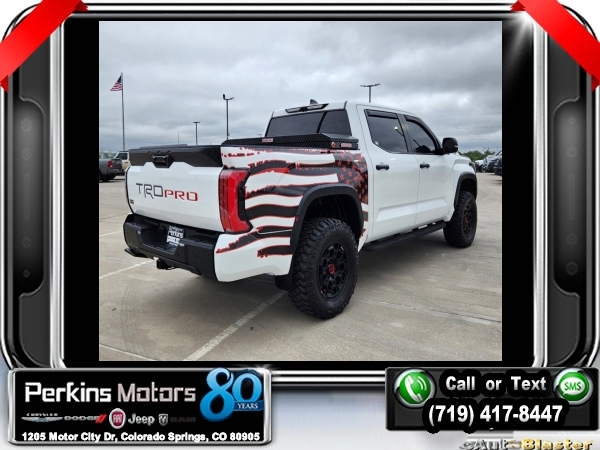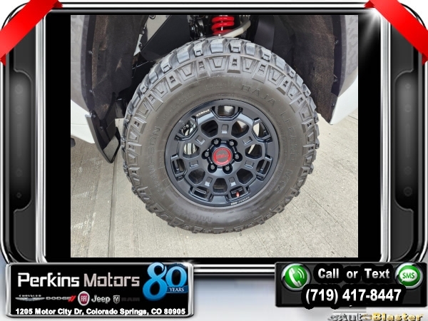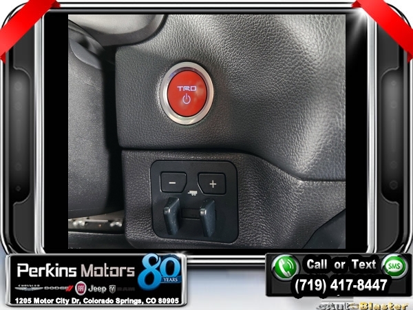 White 4WD 3.4L V6 10-Speed Automatic<br><br>3.4L V6, 12 Speakers, Navigation System, Power moonroof, Radio: Premium Audio w/JBL, TRD Pro Package.<br><br><br>CARFAX One-Owner.<br><br>Check us out at www.perkinsmotors.com to see our specials! Since opening our doors in 1944, we’ve been proud to serve Colorado Springs, CO, and the surrounding areas of Pueblo, Castle Rock and Denver, CO. Throughout this time of being family owned for 80 years, we’ve maintained a firm commitment to our customers: to offer a wide selection of New Chrysler, Dodge, Fiat, Jeep, and Ram vehicles and quality pre-owned vehicles, and provide a quick, no-hassle car-buying process that ensures everyone drives off the lot satisfied with their purchase.<br><br><br>TRD Pro Package, 3.4L V6, 12 Speakers, Navigation System, Power moonroof, Radio: Premium Audio w/JBL, 3.31 Axle Ratio, 4-Wheel Disc Brakes, ABS brakes, Air Conditioning, Alloy wheels, AM/FM radio: SiriusXM, Apple CarPlay/Android Auto, Auto High-beam Headlights, Auto-dimming door mirrors, Auto-dimming Rear-View mirror, Automatic temperature control, Brake assist, Bumpers: body-color, Cruise Control, Delay-off headlights, Driver door bin, Driver vanity mirror, Dual front impact airbags, Dual front side impact airbags, Electronic Stability Control, Emergency communication system: Safety Connect (10-year trial), Front anti-roll bar, Front Bucket Seats, Front Center Armrest, Front dual zone A/C, Front fog lights, Front reading lights, Front wheel independent suspension, Fully automatic headlights, Garage door transmitter: HomeLink, Heated & Ventilated Front Bucket Seats, Heated door mirrors, Heated front seats, Heated steering wheel, Illuminated entry, Knee airbag, Leather Shift Knob, Low tire pressure warning, Memory seat, Occupant sensing airbag, Outside temperature display, Overhead airbag, Overhead console, Panic alarm, Passenger door bin, Passenger vanity mirror, Power door mirrors, Power driver seat, Power passenger seat, Power steering, Power windows, Radio data system, Rear reading lights, Rear seat center armrest, Rear step bumper, Rear window defroster, Remote keyless entry, Security system, SofTex Seat Trim, Speed-sensing steering, Split folding rear seat, Sport steering wheel, Steering wheel mounted audio controls, Tachometer, Telescoping steering wheel, Tilt steering wheel, Traction control, Trip computer, Turn signal indicator mirrors, Variably intermittent wipers, Ventilated front seats, Voltmeter, and Wheels: 18 x 8 Black BBS Forged Aluminum.