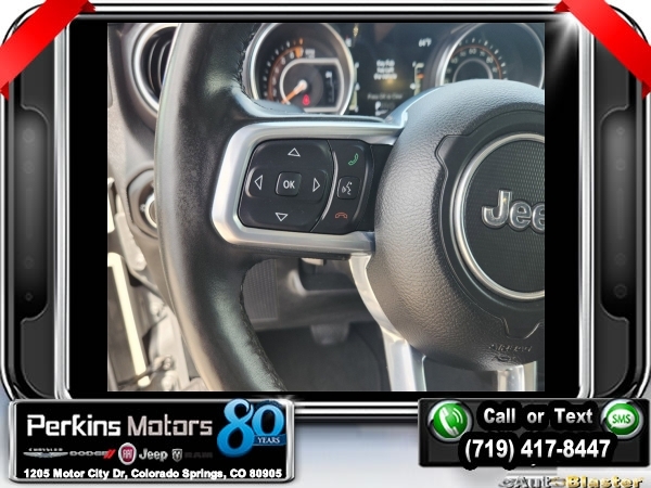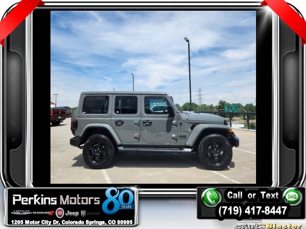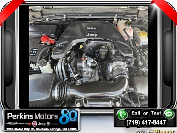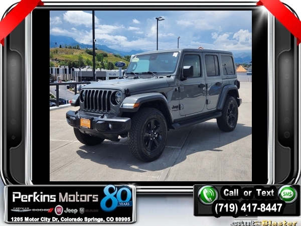 Sting-Gray Clearcoat 4WD 3.6L V6 24V VVT 8-Speed Automatic<br><br>1-Year SiriusXM Guardian Trial, 240 Amp Alternator, 4G LTE Wi-Fi Hot Spot, 5-Year SiriusXM Traffic Service, 5-Year SiriusXM Travel Link Service, 7 & 4 Pin Wiring Harness, 700 Amp Maintenance Free Battery, 8.4 Radio & Premium Audio Group, 8.4 Touchscreen Display, Advanced Brake Assist, Advanced Safety Group, Alpine Premium Audio System, Auto High Beam Headlamp Control, Auto-Dimming Rear-View Mirror, Auxiliary Switches, Black Interior Accents, Black Trail Rated Badge, Blind Spot & Cross Path Detection, Body Color 3-Piece Hard Top, Body Color Grille w/Gloss Black Rings, Class II Receiver Hitch, Cold Weather Group, Daytime Running Lamps LED Accents, Emergency/Assistance Call, For Details, Visit DriveUconnect.com, Front LED Fog Lamps, Full Speed Forward Collision Warning Plus, GPS Navigation, HD Radio, Heated Front Seats, Heated Steering Wheel, Leather Trimmed Bucket Seats, Leather Trimmed Bucket Seats (KL), Leather Wrapped Park Brake Handle, Leather Wrapped Shift Knob, LED Lighting Group, LED Premium Reflector Headlamps, LED Taillamps, Matte Black Jeep Badge, Mold In Color Bumper w/Gloss Black, MOPAR Hardtop Headliner, ParkSense Rear Park Assist System, Quick Order Package 25L Altitude (DISC), Radio: Uconnect 4C Nav w/8.4 Display, Safety Group, SiriusXM Traffic Plus, SiriusXM Travel Link, Trailer Tow & HD Electrical Group, Wheels: 18 x 7.5 Gloss Black Aluminum, Wizard Black Instrument Panel Bezels.<br><br>Certified. FCA US LLC Certified Pre-Owned Details:<br><br> * Roadside Assistance<br> * Includes First Day Rental, Car Rental Allowance, and Trip Interruption Benefits. SiriusXM 3 month trial subscription<br> * 125 Point Inspection<br> * Powertrain Limited Warranty: 84 Month/100,000 Mile (whichever comes first) from original in-service date<br> * Transferable Warranty<br> * Limited Warranty: 3 Month/3,000 Mile (whichever comes first) after new car warranty expires or from certified purchase date<br> * Warranty Deductible: $100<br> * Vehicle History<br><br><br>CARFAX One-Owner. Clean CARFAX.<br><br>Check us out at www.perkinsmotors.com to see our specials! Since opening our doors in 1944, we’ve been proud to serve Colorado Springs, CO, and the surrounding areas of Pueblo, Castle Rock and Denver, CO. Throughout this time of being family owned for 80 years, we’ve maintained a firm commitment to our customers: to offer a wide selection of New Chrysler, Dodge, Fiat, Jeep, and Ram vehicles and quality pre-owned vehicles, and provide a quick, no-hassle car-buying process that ensures everyone drives off the lot satisfied with their purchase.<br><br><br>8.4 Radio & Premium Audio Group (1-Year SiriusXM Guardian Trial, 4G LTE Wi-Fi Hot Spot, 5-Year SiriusXM Traffic Service, 5-Year SiriusXM Travel Link Service, 8.4 Touchscreen Display, Alpine Premium Audio System, Auto-Dimming Rear-View Mirror, Emergency/Assistance Call, For Details, Visit DriveUconnect.com, GPS Navigation, HD Radio, Radio: Uconnect 4C Nav w/8.4 Display, SiriusXM Traffic Plus, and SiriusXM Travel Link), Advanced Safety Group (Advanced Brake Assist, Auto High Beam Headlamp Control, and Full Speed Forward Collision Warning Plus), Cold Weather Group (Heated Front Seats and Heated Steering Wheel), LED Lighting Group (Daytime Running Lamps LED Accents, Front LED Fog Lamps, LED Premium Reflector Headlamps, and LED Taillamps), Quick Order Package 25L Altitude (DISC) (Black Interior Accents, Black Trail Rated Badge, Body Color 3-Piece Hard Top, Body Color Grille w/Gloss Black Rings, Leather Trimmed Bucket Seats, Leather Wrapped Park Brake Handle, Leather Wrapped Shift Knob, Matte Black Jeep Badge, Mold In Color Bumper w/Gloss Black, MOPAR Hardtop Headliner, Wheels: 18 x 7.5 Gloss Black Aluminum, and Wizard Black Instrument Panel Bezels), Safety Group (Blind Spot & Cross Path Detection and ParkSense Rear Park Assist System), Trailer Tow & HD Electrical Group (240 Amp Alternator, 7 & 4 Pin Wiring H