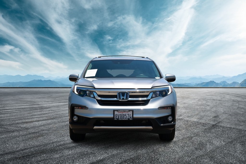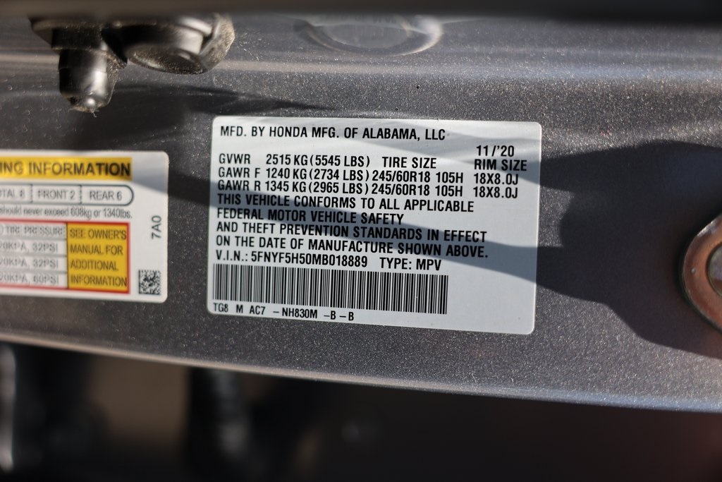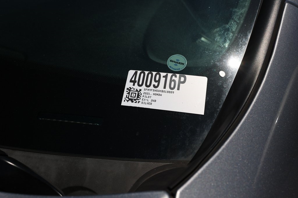 Lunar Silver Metallic 2021 Honda Pilot EX-L FWD 9-Speed Automatic 3.5L V6 24V SOHC i-VTEC 18" Machine-Finished Alloy Wheels, 3rd row seats: split-bench, Air Conditioning, Apple CarPlay/Android Auto, Blind Spot Information (BSI) System warning, Brake assist, Electronic Stability Control, Exterior Parking Camera Rear, Forward collision: Collision Mitigation Braking System (CMBS) + FCW mitigation, Fully automatic headlights, Heated Front Bucket Seats, Lane departure: Lane Keeping Assist System (LKAS) active, Leather Seat Trim, Memory seat, Power Liftgate, Power moonroof, Rear air conditioning, Reclining 3rd row seat.20/27 City/Highway MPG