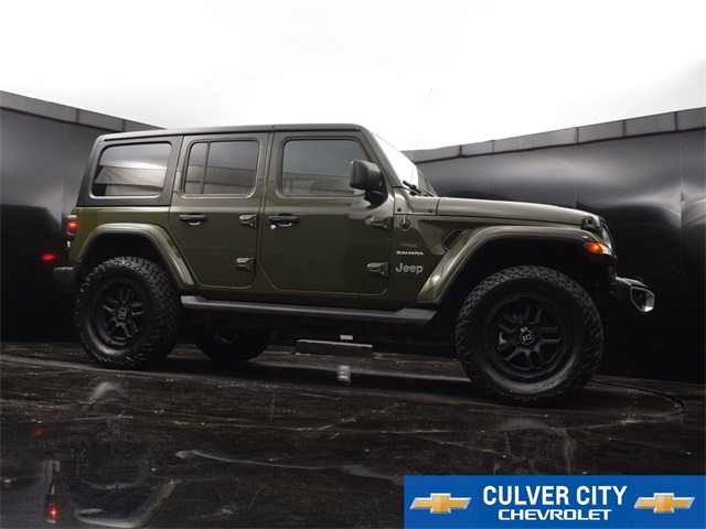 Recent Arrival! This 2021 Jeep Wrangler Unlimited Sahara is the ultimate blend of rugged capability and refined comfort. Known for its iconic design and off-road prowess, the Wrangler Unlimited Sahara features a robust 3.6-liter V6 engine that delivers powerful performance both on and off the road. The four-door configuration provides ample space for passengers and cargo, making it perfect for adventurous journeys. Inside, the Sahara trim offers a well-appointed cabin with premium materials, an 8.4-inch touchscreen infotainment system with Apple CarPlay and Android Auto, and advanced safety features like blind-spot monitoring and rear cross-path detection. With its removable roof and doors, this Wrangler Unlimited Sahara provides an unparalleled open-air driving experience, while its advanced 4x4 system ensures you can tackle any terrain with confidence. Whether you're navigating city streets or exploring the great outdoors, the 2021 Jeep Wrangler Unlimited Sahara offers versatility, comfort, and legendary Jeep capability.At Culver City Chevrolet, our entire team works together to provide you with the ultimate Chevrolet shopping experience. We are family owned and operated, so we treat you just like you are part of our family. We are also very passionate about serving the community in which we work, live and play! From the Little League teams we support, to the next customer that walks in the door, we are committed to doing the right thing. Our goal is to exceed your expectations, deliver the best service possible, and make car shopping fun again. We offer a large inventory of Chevrolet cars, trucks, SUVs and electric vehicles, and an incredible lineup of luxury vehicles for sale as well! Just find the specific vehicle that fits your needs and schedule your test drive by calling 424-216-6027 today. We provide plenty of buying and leasing options for drivers in the Los Angeles area. WE LOOK FORWARD TO BEING THE NEW AND USED CHEVROLET VEHICLE SOURCE FOR YOU IN CULVER CITY!2021 Jeep Wrangler Unlimited Sahara Sarge Green Clearcoat 2.0L I4 DOHC 21/24 City/Highway MPG KBB Fair Market Range Low: $31,573CARFAX One-Owner. Clean CARFAX. Odometer is 2820 miles below market average!GPS Tracking System-S.W.A.T. $1995, 4 doors, Alloy Wheels, Android Auto, Apple CarPlay/Android Auto, Automatic, Backup Camera, Bluetooth, Brake Assist, CarPlay, Cruise Control, Four-Wheel Drive, Keyless Entry, Multi Zone Climate Control, Satellite Radio, Security System, Stability Control, Steering Wheel Controls, USB Port.