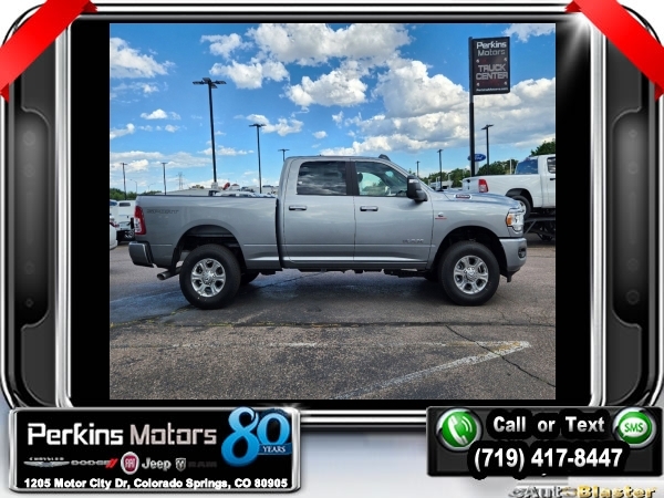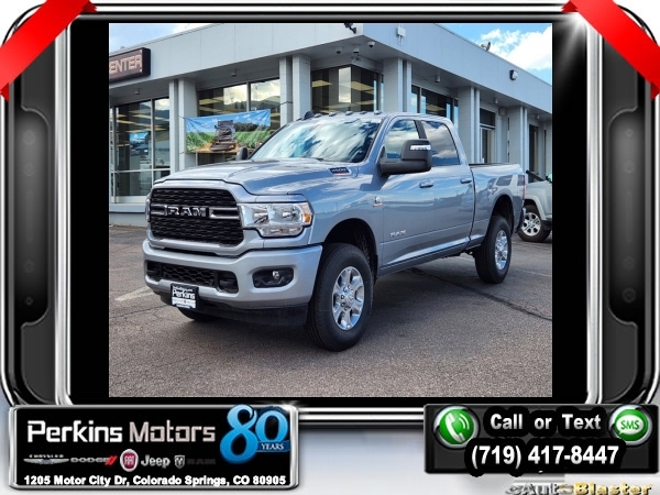 Factory MSRP: $73,795 $9,000 off MSRP! Billet Silver Metallic Clearcoat 2024 Ram 2500 Big Horn 4WD 6-Speed Automatic Cummins 6.7L I6 Turbodiesel<br><br>Check us out at www.perkinsmotors.com to see our specials! Since opening our doors in 1944, we’ve been proud to serve Colorado Springs, CO, and the surrounding areas of Pueblo, Castle Rock and Denver, CO. Throughout this time of being family owned for 80 years, we’ve maintained a firm commitment to our customers: to offer a wide selection of New Chrysler, Dodge, Fiat, Jeep, and Ram vehicles and quality pre-owned vehicles, and provide a quick, no-hassle car-buying process that ensures everyone drives off the lot satisfied with their purchase.<br><br>Heated Seats & Wheel Group (Heated Front Seats, Heated Steering Wheel, Leather Wrapped Steering Wheel, and Steering Wheel Mounted Audio Controls), Level 1 Equipment Group (2 Way Rear Headrest Seat, 2nd Row In Floor Storage Bins, 4 Way Front Headrests, 40/20/40 Split Bench Seat, 4G LTE Wi-Fi Hot Spot, 8.4 Touchscreen Display, Apple CarPlay, Auto Power-Folding Mirrors, Big Horn IP Badge, Black Exterior Mirrors, Bluetooth Handsfree Phone & Audio, Center Hub, Connectivity - US/Canada, Dual Glove Boxes, Exterior Mirrors Courtesy Lamps, Exterior Mirrors w/Heating Element, Exterior Mirrors w/Supplemental Signals, Foam Bottle Insert (Door Trim Panel), Footwell Courtesy Lamp, For Details, Visit DriveUconnect.com, For More Info, Call 800-643-2112, Forward & Reverse Utility Lights, Front Armrest w/Cupholders, Front Center Seat Cushion Storage, Front Fog Lamps, Front Seat Back Map Pockets, Global Telematics Box Module (TBM), Glove Box Lamp, Google Android Auto, GPS Antenna Input, Integrated Center Stack Radio, Integrated Voice Command w/Bluetooth, Locking Lower Glove Box, Manual Adjust 4-Way Front Passenger Seat, Mirror Running Lights, Power 2-Way Driver Lumbar Adjust, Power Adjust 8-Way Driver Seat, Power Adjust Mirrors, Power Adjustable Convex Aux Mirrors, Power Heated Fold Telescope Mirrors, Power Telescoping Mirrors, Premium Cloth 40/20/40 Bench Seat, Radio: Uconnect 5 W w/8.4 Display, Rear 60/40 Folding Seat, Rear Dome w/On/Off Switch Lamp, Remote USB Port - Charge Only, Selectable Tire Fill Alert, SiriusXM Radio Service, SiriusXM Satellite Radio, Storage Tray, and Wheels: 18 x 8.0 Polished Aluminum), Quick Order Package 2HZ Big Horn, Sport Appearance Package (Black Interior Accents, Body Color Door Handles, Body Color Grille Surround, Painted Front Bumper, Painted Rear Bumper, ParkSense Front/Rear Park Assist System, and Sport Decal), 115V Auxiliary Front Power Outlet, 12 Touchscreen Display, 220 Amp Alternator, 3.73 Axle Ratio, 4-Wheel Disc Brakes, 400W Inverter, 6 Speakers, 9 Alpine Speakers w/Subwoofer, ABS brakes, Active Noise Control System, Air Conditioning, Air Conditioning ATC w/Dual Zone Control, Alexa Built-In, All R1 High Radios, All Radio Equipped Vehicles, Anti-Spin Differential Rear Axle, Brake assist, Bumpers: chrome, Center Stack Storage Drawer, Clearance Lamps, Cloth 40/20/40 Bench Seat, Compass, Connected Travel & Traffic Services, Cruise Control, CTR Stop Lamp w/Cargo View Camera, Dash Pass Thru Wire Circuits, Delay-off headlights, Disassociated Touchscreen Display, Driver door bin, Dual Alternators Rated At 440 Amps, Dual front impact airbags, Dual front side impact airbags, Electronic Stability Control, Electronically Controlled Throttle, Emergency communication system: SiriusXM Guardian, Exterior 115V AC Outlet, Front anti-roll bar, Front Center Armrest w/Storage, Front License Plate Bracket, Front reading lights, Fully automatic headlights, GPS Navigation, HD Radio, Heated door mirrors, I/P Mounted Auxiliary Switches, Illuminated entry, Low tire pressure warning, Manual Adjust 4-Way Driver Seat, MOPAR Fro Sale price includes all manufacture's incentives and dealer discounts. Sale price not available on lease or compatible with special APR. $2000 - 2024 National Summer Select Inventory Bonus Cash . Exp. 0