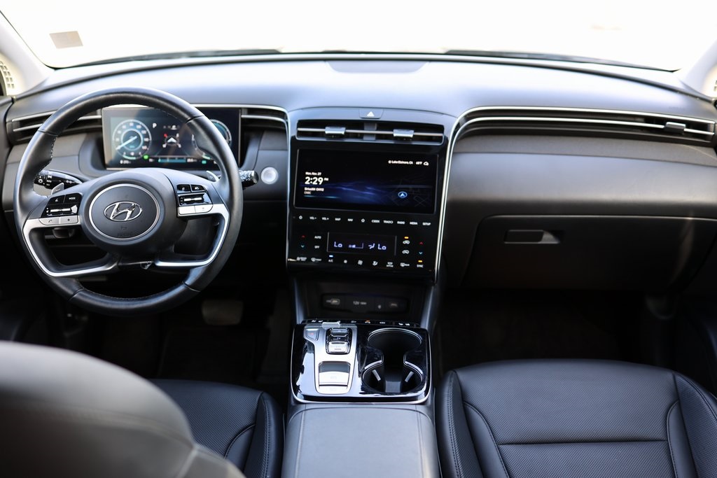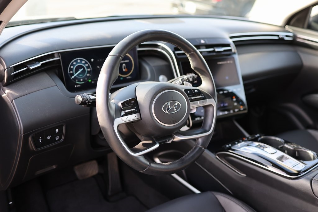 NEW FILTERS, Tucson Hybrid Limited, 4D Sport Utility, I4, 6-Speed Automatic, AWD, Active Cruise Control, Air Conditioning, Apple CarPlay & Android Auto, Auto-dimming Rear-View mirror, Emergency communication system: Blue Link Connected Car Service (3-year complimentary subscription), Front dual zone A/C, Fully automatic headlights, Garage door transmitter: HomeLink, Heated & Ventilated Front Bucket Seats, Heated rear seats, Heated steering wheel, Memory seat, Navigation System, Power driver seat, Power Liftgate, Power moonroof, Power passenger seat, Radio: Bose Premium w/AM/FM/HD/SiriusXM Audio System, Remote keyless entry, Security system, Wheels: 19" x 7.5" J Machine-Face Finish Alloy.Clean CARFAX.CARFAX One-Owner.