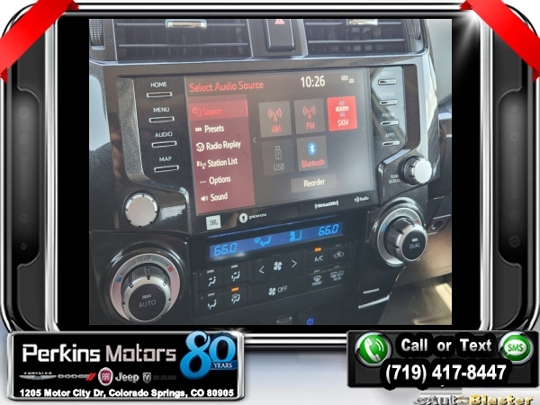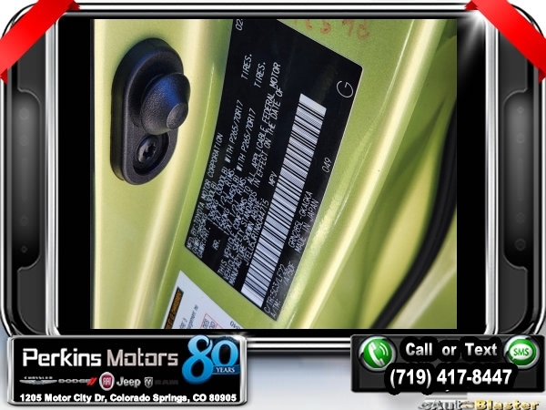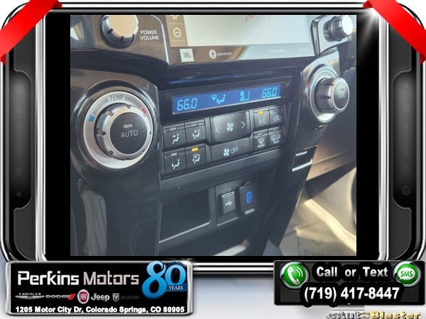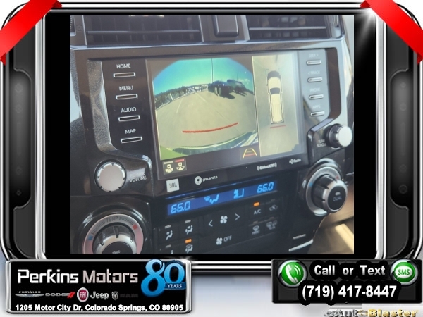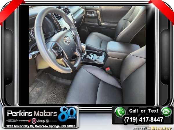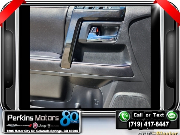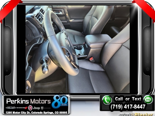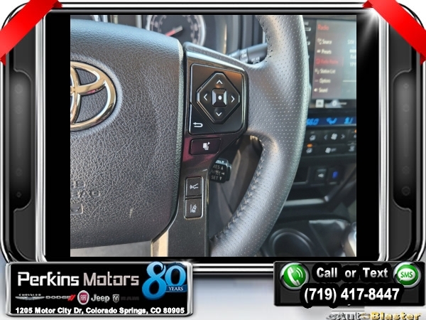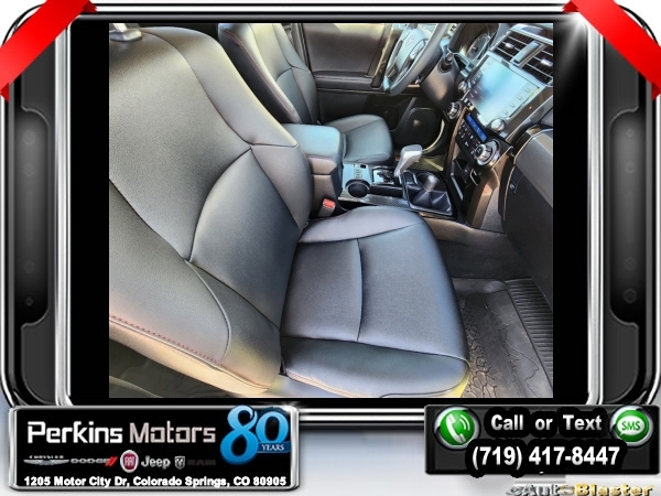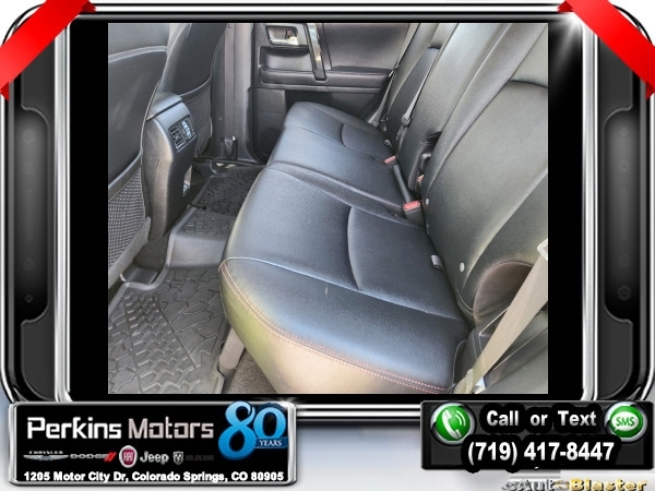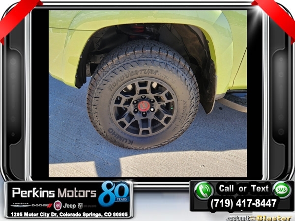 Lime Rush 4WD 4.0L V6 DOHC 24V 5-Speed with ECT<br><br>4WD, 15 Speakers, Black Lug Nuts, Blind Spot Monitor (BSM), Dual Zone Auto Climate Control, Fog Lights, Fox Shocks, Front dual zone A/C, Garage Door Opener, Multi-Terrain Back Monitor, Navigation System, Outside Rear View Mirror, Power driver seat, Power moonroof, Power Tilt & Slide Moonroof w/Sunshade, Radio: Premium Audio w/JBL, Roof Rack, TRD Badging, TRD Pro All Weather Floor Liner, TRD Pro Exhaust, TRD Pro Package, TRD Shift Knob, Wheel Locks.<br><br><br>Clean CARFAX.<br><br>Check us out at www.perkinsmotors.com to see our specials! Since opening our doors in 1944, we’ve been proud to serve Colorado Springs, CO, and the surrounding areas of Pueblo, Castle Rock and Denver, CO. Throughout this time of being family owned for 80 years, we’ve maintained a firm commitment to our customers: to offer a wide selection of New Chrysler, Dodge, Fiat, Jeep, and Ram vehicles and quality pre-owned vehicles, and provide a quick, no-hassle car-buying process that ensures everyone drives off the lot satisfied with their purchase.<br><br><br>TRD Pro Package (Black Lug Nuts, Blind Spot Monitor (BSM), Dual Zone Auto Climate Control, Fog Lights, Fox Shocks, Garage Door Opener, Multi-Terrain Back Monitor, Outside Rear View Mirror, Power Tilt & Slide Moonroof w/Sunshade, Roof Rack, TRD Badging, TRD Pro All Weather Floor Liner, TRD Pro Exhaust, TRD Shift Knob, and Wheel Locks), 4WD, 15 Speakers, Front dual zone A/C, Navigation System, Power driver seat, Power moonroof, Radio: Premium Audio w/JBL, 3.727 Axle Ratio, 4-Wheel Disc Brakes, ABS brakes, Air Conditioning, Alloy wheels, AM/FM radio: SiriusXM, Anti-whiplash front head restraints, Apple CarPlay/Android Auto, Auto High-beam Headlights, Auto-dimming Rear-View mirror, Automatic temperature control, Brake assist, Bumpers: body-color, Compass, Cruise Control, Driver door bin, Driver vanity mirror, Dual front impact airbags, Dual front side impact airbags, Electronic Stability Control, Emergency communication system: Safety Connect with 1-year trial, Front anti-roll bar, Front Bucket Seats, Front Center Armrest, Front fog lights, Front reading lights, Front wheel independent suspension, Garage door transmitter: HomeLink, Heated door mirrors, Heated Front Bucket Seats, Heated front seats, Illuminated entry, Knee airbag, Leather Shift Knob, Low tire pressure warning, Occupant sensing airbag, Outside temperature display, Overhead airbag, Overhead console, Panic alarm, Passenger door bin, Passenger vanity mirror, Power door mirrors, Power passenger seat, Power steering, Power windows, Rear anti-roll bar, Rear seat center armrest, Rear window defroster, Rear window wiper, Remote keyless entry, Roof rack, Security system, SofTex Seat Trim, Speed-sensing steering, Split folding rear seat, Spoiler, Steering wheel mounted audio controls, Tachometer, Telescoping steering wheel, Tilt steering wheel, Traction control, Trip computer, Turn signal indicator mirrors, Variably intermittent wipers, and Wheels: 17 Matte Black Flow-Formed TRD Alloy.