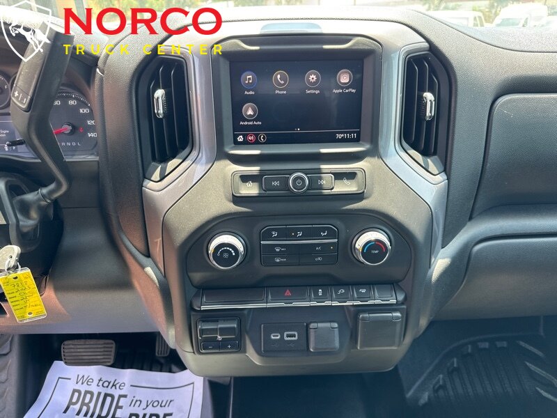 -- INSTALLED FEATURES: Air filtration, Front air conditioning, Front air conditioning zones: single, Rear vents: second row, Airbag deactivation: occupant sensing passenger, Front airbags: dual, Side airbags: front, Side curtain airbags: front / rear, Antenna type: mast, Auxiliary audio input: Bluetooth / USB / iPod/iPhone, Radio: AM/FM / touch screen display, Radio data system, Speed sensitive volume control, Total speakers: 6, ABS: 4-wheel, Braking assist, Electronic brakeforce distribution, Electronic parking brake: auto off, Front brake diameter: 14.0, Front brake type: ventilated disc, Front brake width: 1.57, Power brakes, Rear brake diameter: 14.2, Rear brake type: ventilated disc, Rear brake width: 1.34, Armrests: front center, Floor material: rubber/vinyl, Steering wheel trim: urethane, Assist handle: front / rear, Capless fuel filler system, Cupholders: front, One-touch windows: 4, Overhead console: front, Power outlet(s): 12V front / USB front, Power steering, Power windows: lockout button, Reading lights: front / rear, Rearview mirror: manual day/night, Steering wheel: tilt, Storage: door pockets, Sun visors, Axle ratio: 3.73, Locking differential: rear, Alternator: 170 amps, Auxiliary oil cooler, Battery: heavy duty / maintenance-free, Battery rating: 720 CCA, Battery saver, Bumper detail: rear step, Door handle color: black, Exhaust tip color: stainless steel, Fender lip moldings: black, Front bumper color: black, Grille color: black, Hood scoop, Mirror color: black, Pickup bed light, Rear bumper color: black, Tailgate: removable, Window trim: black, Infotainment: Chevrolet Infotainment System, Infotainment screen size: 7 in., Smartphone integration: Android Auto / Apple CarPlay, Clock, Digital odometer, External temperature display, Fuel economy display: MPG / range, Gauge: oil pressure / tachometer, Instrument cluster screen size: 3.5 in., Multi-function display, Powertrain hour meter, Trip odometer, Warnings and reminders: coolant temperature warning / lamp failure / low battery / low fuel level / low oil pressure / maintenance due, Daytime running lights, Headlights: auto delay off / auto on/off / halogen / wiper activated, Side mirror adjustments: manual / manual folding / manual telescoping, Towing mirrors, Camera system: rearview, Check rear seat reminder, Child safety door locks, Child seat anchors: LATCH system, Programmable safety key, Rearview monitor: in dash, Emergency locking retractors: front, Front seatbelts: 3-point, Rear seatbelts: 3-point, Seatbelt pretensioners: front, Seatbelt warning sensor: front, Driver seat manual adjustments: reclining / 4, Front headrests: adjustable / 2, Front seat type: 40-20-40 split bench, Passenger seat manual adjustments: reclining / 4, Rear headrests: adjustable / 3, Rear seat folding: folds up, Rear seat type: 60-40 split bench, Upholstery: vinyl, Anti-theft system: vehicle immobilizer, Power door locks: anti-lockout / auto-locking, Hill holder control, Roll stability control, Stability control, Traction control, Trailer stability control, Front shock type: twin-tube gas, Front spring type: torsion bars, Front stabilizer bar: diameter 35 mm, Front suspension classification: independent, Front suspension type: short and long arm, Rear shock type: twin-tube gas, Rear spring type: leaf, Rear suspension classification: solid live axle, Rear suspension type: multi-leaf, Electronic messaging assistance: voice operated / with read function, Hands-free phone call integration: voice operated, Wireless data link: Bluetooth, Spare tire mount location: underbody, Spare tire size: full-size, Spare wheel type: steel, Tire Pressure Monitoring System, Tire type: all season, Wheels: painted steel, Auxiliary transmission fluid cooler, Pickup bed cargo management: tie-down anchors, Tow hooks: front, Tow/Haul mode, Trailer hitch, Trailer wiring: 4-pin / 7-pin, Front wipers: variable intermittent, Power windows: safety reverse, Solar-tinted glass