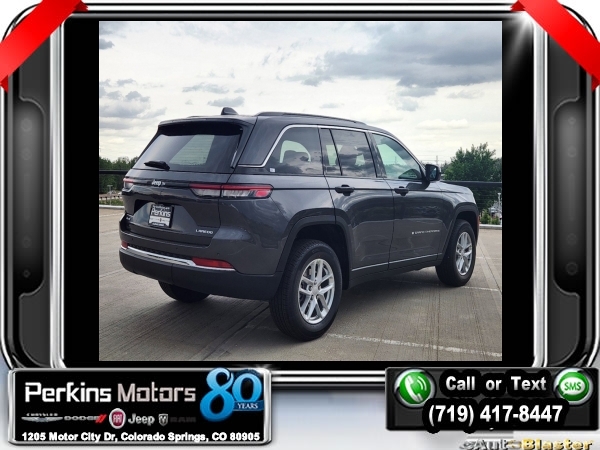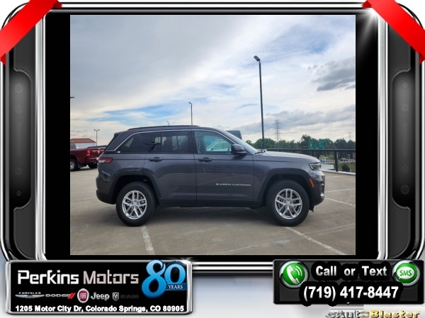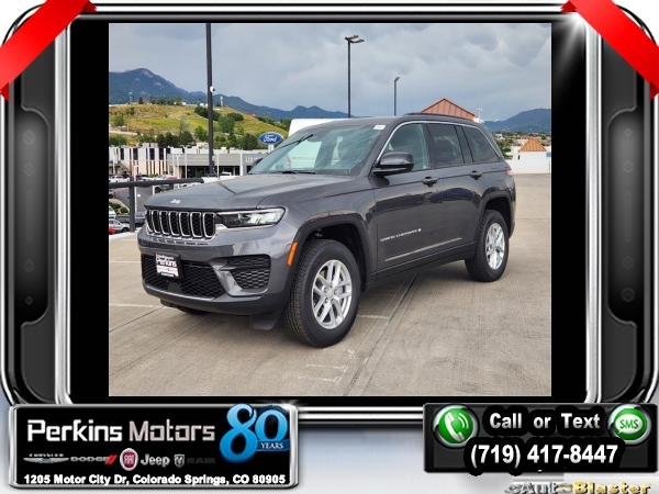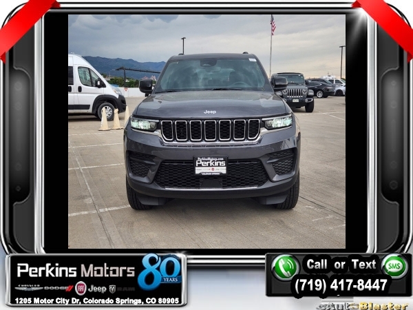 Factory MSRP: $45,965 $8,000 off MSRP! Priced below KBB Fair Purchase Price! Baltic Gray Metallic Clearcoat 2024 Jeep Grand Cherokee Laredo 4WD 8-Speed Automatic 3.6L V6 24V VVT<br>4WD.<br>Check us out at www.perkinsmotors.com to see our specials! Since opening our doors in 1944, we’ve been proud to serve Colorado Springs, CO, and the surrounding areas of Pueblo, Castle Rock and Denver, CO. Throughout this time of being family owned for 80 years, we’ve maintained a firm commitment to our customers: to offer a wide selection of New Chrysler, Dodge, Fiat, Jeep, and Ram vehicles and quality pre-owned vehicles, and provide a quick, no-hassle car-buying process that ensures everyone drives off the lot satisfied with their purchase.<br><br>Luxury Tech Group I (Secondary Active Grille Shutters), Quick Order Package 23D Laredo X, Trailer Tow Package (Automatic Headlamp Levelling System), 4WD, 3.45 Rear Axle Ratio, 4-Wheel Disc Brakes, 6 Speakers, ABS brakes, Air Conditioning, Alloy wheels, Anti-whiplash front head restraints, Automatic temperature control, Brake assist, Bumpers: body-color, Cloth Seats, Compass, Cruise Control, Delay-off headlights, Driver door bin, Driver vanity mirror, Dual front impact airbags, Dual front side impact airbags, Electronic Stability Control, Emergency communication system, Four wheel independent suspension, Front anti-roll bar, Front Bucket Seats, Front Center Armrest w/Storage, Front dual zone A/C, Front License Plate Bracket, Front reading lights, Fully automatic headlights, Heated door mirrors, Illuminated entry, Knee airbag, Low tire pressure warning, Normal Duty Suspension, Occupant sensing airbag, Outside temperature display, Overhead airbag, Overhead console, Panic alarm, ParkView Rear Back-Up Camera, Passenger door bin, Passenger vanity mirror, Power door mirrors, Power driver seat, Power steering, Power windows, Radio data system, Radio: Uconnect 5 w/8.4 Display, Rear anti-roll bar, Rear reading lights, Rear window defroster, Rear window wiper, Remote keyless entry, Roof rack: rails only, Security system, Speed-Sensitive Wipers, Split folding rear seat, Spoiler, Steering wheel mounted audio controls, Tachometer, Telescoping steering wheel, Tilt steering wheel, Traction control, Trip computer, Variably intermittent wipers, Voltmeter, and Wheels: 17 x 6.5 Fully Painted Aluminum.<br><br>19/26 City/Highway MPG Sale price includes all manufacture's incentives and dealer discounts. Sale price not available on lease or compatible with special APR. $1000 - 2024 Denver BC Retail Consumer Cash. Exp. 09/30/2024 $1500 - 2024 Retail Bonus Cash. Exp. 09/30/2024 $2,000 - Exp. 09/30/2024