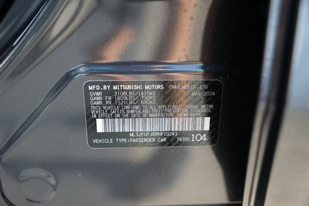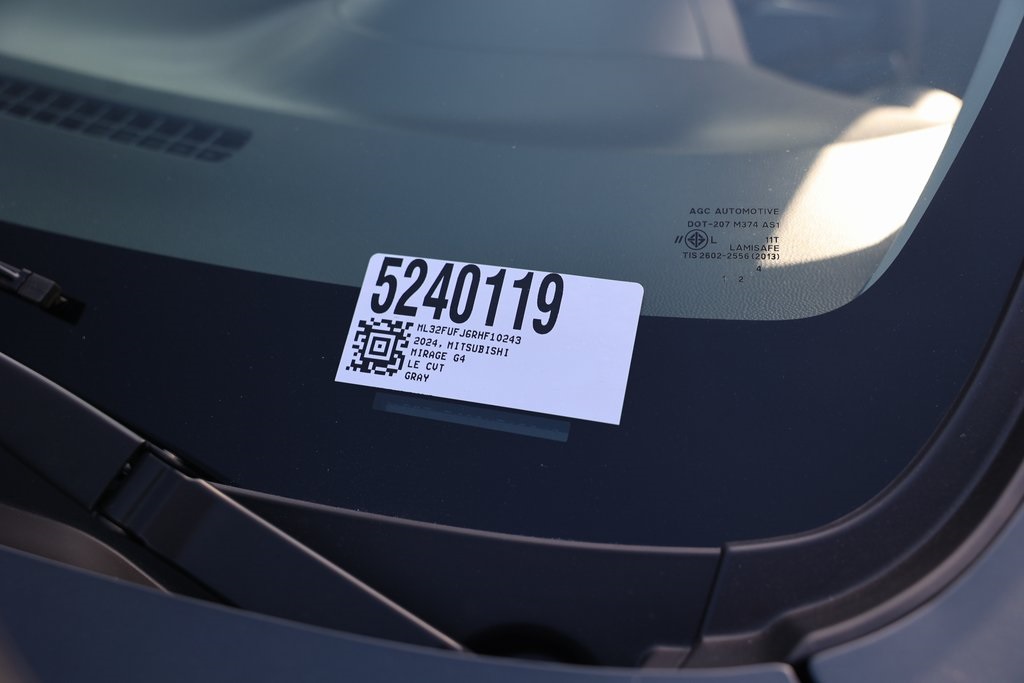 Graphite Gray Metallic 2024 Mitsubishi Mirage G4 LE FWD CVT 1.2L 3-Cylinder DOHC MIVECFind your next ride at Aaron Mitsubishi of Corona, where we offer a wide range of new Mitsubishi vehicles. From the fuel-efficient Mirage to the versatile Outlander, our selection is designed to meet all your driving needs. Visit us and drive away in a stylish, reliable Mitsubishi today. 35/41 City/Highway MPG