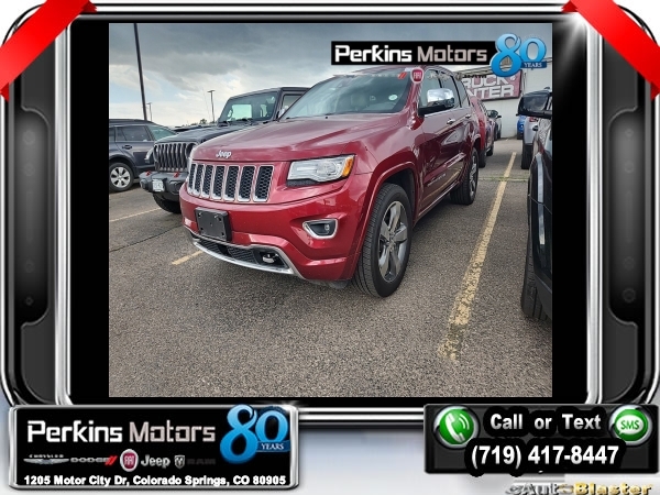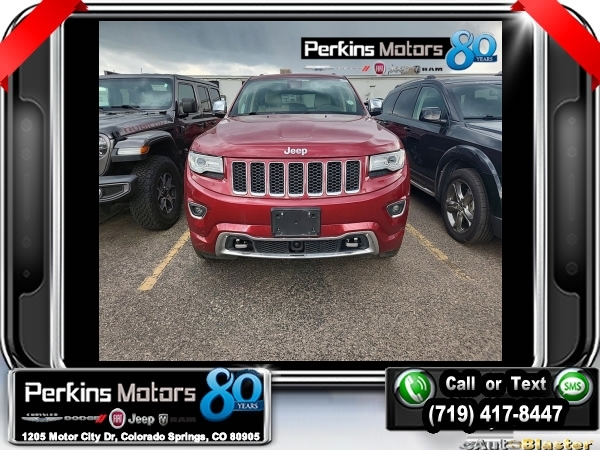 Deep Cherry Red Crystal Pearlcoat 4WD 3.6L V6 Flex Fuel 24V VVT 8-Speed Automatic<br><br>4WD.<br><br><br>CARFAX One-Owner. Clean CARFAX.<br><br>Check us out at www.perkinsmotors.com to see our specials! Since opening our doors in 1944, we’ve been proud to serve Colorado Springs, CO, and the surrounding areas of Pueblo, Castle Rock and Denver, CO. Throughout this time of being family owned for 80 years, we’ve maintained a firm commitment to our customers: to offer a wide selection of New Chrysler, Dodge, Fiat, Jeep, and Ram vehicles and quality pre-owned vehicles, and provide a quick, no-hassle car-buying process that ensures everyone drives off the lot satisfied with their purchase.<br><br>Reviews:<br> * If you are on the prowl for an American-made 5-passenger SUV with high-style and genuine off-road chops, the 2014 Jeep Grand Cherokee is a solid choice. Thanks to an alluring new array of in-vehicle electronics, the Grand Cherokee is also one of the most technologically advanced entrants in the category. Source: KBB.com<br> * Strong and fuel-efficient engine lineup, including a new diesel V6; upscale interior; plenty of luxury and technology-oriented features; irrefutable off-road ability; outlandish SRT model. Source: Edmunds<br> * Redesigned for 2014 the Jeep Grand Cherokee is already making praises and setting standards for performance, luxury, Best-in-Class Highway Fuel Economy, and attention to detail. A confident and elegant exterior design exudes strength from every angle. For 2014, every Grand Cherokee from Laredo to Summit features premium styling treatments including new, modern front grille and fascia treatments, daytime running headlamps, projector fog lamps and capless fuel fillers. The rear of the Grand Cherokee offers new, larger taillamps with signature LED lighting, a larger rear aerodynamic spoiler and a re-sculpted tailgate for greater rear visibility, and a new capless fuel fill and power liftgate for more simplicity and convenience. Grand Cherokee comes standard with seating for up to five passengers. The new, available premium-quality Natura Plus leather is soft and supple and has outstanding breathability that makes the leather more comfortable in both hot and cold weather. Adding to the luxury and comfort are heated/ventilated front seats and heated rear seats. The rear cargo area in the 2014 Grand Cherokee lets you configure up to 68.3 cubic feet of storage when the rear seat is folded down. Choose from 3 different engines including the new 3.0L EcoDiesel V6 which can attain up to 30hwy mpg, drive up to 730 miles on one tank and tow up to 7,400 pounds. The 3.6L V6 engine features new eight-speed automatic transmission, with paddle-shift steering wheel controls and the new Eco Mode improves fuel efficiency by 9% and allows you to tow up to 6,200 pounds. Finally, the 5.7L V8 engine with Fuel Saving Technology boasts 360hp and 390lb-ft of torque and provides a Best-in-Class 7,400-pound towing capacity. Inside the newly updated Uconnect System features a massive 8.4-inch touchscreen, Full-Feature Navigation, SiriusXM Travel Link/SiriusXM Traffic and HD Radio. Enjoy music on 1 of the 3 available speaker systems including the top of the line Harman Kardon 19 speaker system. Source: The Manufacturer Summary<br><br><br>Awards:<br> * 2014 IIHS Top Safety Pick<br><br>Advanced Technology Group (Adaptive Cruise Control w/Stop, Advanced Brake Assist, Blind Spot & Cross Path Detection, and Forward Collision Warning Plus), Quick Order Package 23P, 4WD, 10 Speakers, 20 x 8.0 Aluminum Wheels, 3.45 Rear Axle Ratio, 4-Wheel Disc Brakes, ABS brakes, Air Conditioning, Alloy wheels, AM/FM radio: SiriusXM, Anti-whiplash front head restraints, Audio memory, Auto High-beam Headlights, Auto-dimming door mirrors, Auto-dimming Rear-View mirror, Auto-leveling suspension, Automatic temperature control, Brake assist, Bumpers: body-color, Compass, Cruise Control, Delay-off headlights, Driver door bin, Driver vanity mirror,