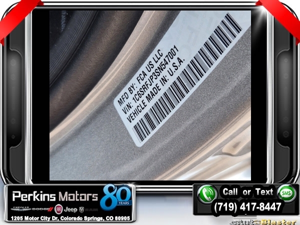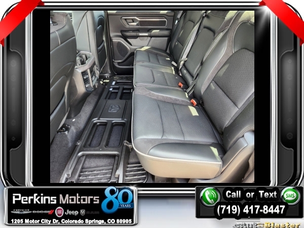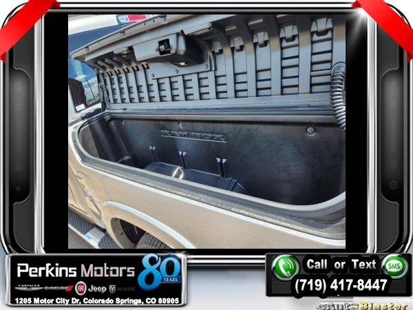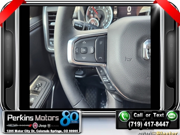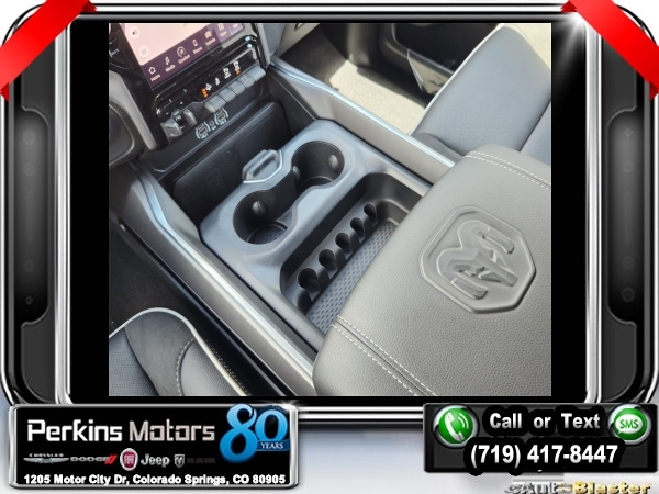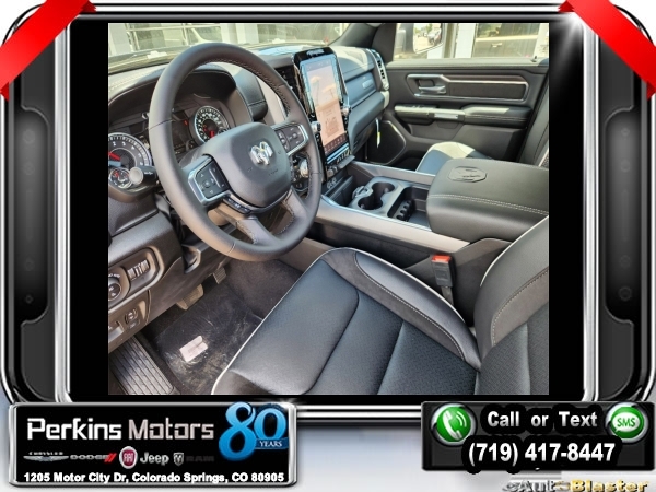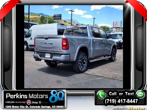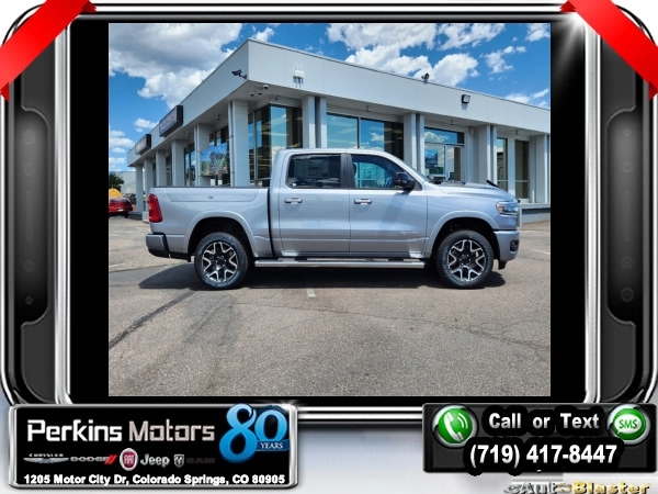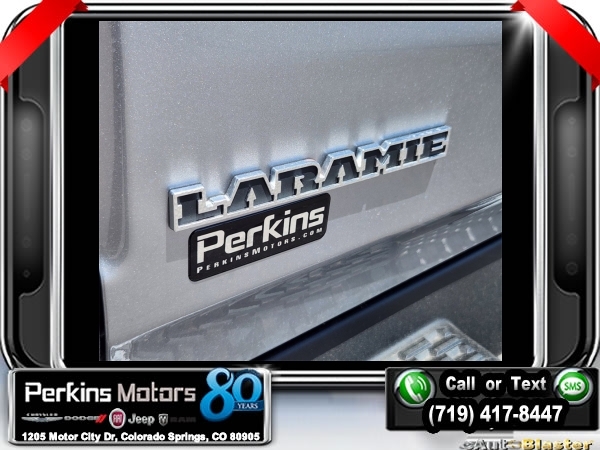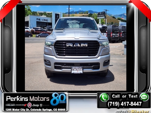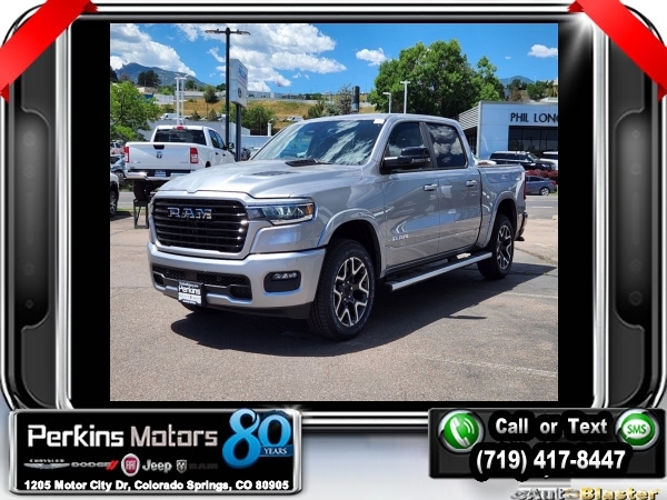 Factory MSRP: $76,730 $9,500 off MSRP! Billet Silver Metallic Clearcoat 2025 Ram 1500 Laramie 4WD 8-Speed Automatic 3.0L I6<br><br>Check us out at www.perkinsmotors.com to see our specials! Since opening our doors in 1944, we’ve been proud to serve Colorado Springs, CO, and the surrounding areas of Pueblo, Castle Rock and Denver, CO. Throughout this time of being family owned for 80 years, we’ve maintained a firm commitment to our customers: to offer a wide selection of New Chrysler, Dodge, Fiat, Jeep, and Ram vehicles and quality pre-owned vehicles, and provide a quick, no-hassle car-buying process that ensures everyone drives off the lot satisfied with their purchase.<br><br>Bed Utility Group (MOPAR 4 Adjustable Cargo Tie-Down Hooks and MOPAR Spray In Bedliner), Laramie Level 1 Equipment Group (Rain Sensitive Windshield Wipers and Remote Tailgate Release), Quick Order Package 21H Laramie, Sport Appearance Package (3 Rear Seat Head Restraints, 4 Way Front Headrests, Accent Color Premium Power Mirrors, Auto Power-Folding Mirrors, Auto-Dimming Exterior Driver Mirror, Black Interior Accents, Black Painted Exterior Mirrors Caps, Body Color Front Bumper, Body Color Rear Bumper w/Step Pads, Bridgestone Brand Tires, Bucket Seats, Convex Wide-Angle Exterior Mirror Insert, Driver Seat Memory, Exterior Mirrors Courtesy Lamps, Exterior Mirrors w/Heating Element, Exterior Mirrors w/Memory, Exterior Mirrors w/Supplemental Signals, Front Seat Back Map Pockets, Full Length Upgraded Floor Console, Grille Surround 3 Body Color Tex 2 Black, Heated Front Seats, Heated Second Row Seats, Heated Steering Wheel, Leather Trimmed Bucket Seats, Power 2-Way Driver Lumbar Adjust, Power 2-Way Passenger Lumbar Adjust, Power Adjust 8-Way Driver Seat, Power Adjust 8-Way Front Passenger Seat, RAM Grille Badge - Chrome, Rear 60/40 Folding Split Recline Seat, Sport Decal, Sport Performance Hood, and Ventilated Front Seats), 10 Speakers, 3.55 Rear Axle Ratio, 3.92 Rear Axle Ratio, 33 Gallon Fuel Tank, 4-Corner Air Suspension, 4-Wheel Disc Brakes, 4G LTE Wi-Fi Hot Spot, ABS brakes, Air Conditioning, Alloy wheels, AM/FM radio: SiriusXM with 360L, Anti-Spin Differential Rear Axle, Apple CarPlay, Apple CarPlay/Android Auto, Audio memory, Auto High-beam Headlights, Auto-dimming door mirrors, Auto-dimming Rear-View mirror, Automatic temperature control, Brake assist, Bumpers: chrome, Chrome Exterior Mirrors, Compass, Connected Travel & Traffic Services, Connectivity - US/Canada, Cruise Control, Delay-off headlights, Dome Dual LED Reading Lamp, Driver door bin, Driver vanity mirror, Dual front impact airbags, Dual front side impact airbags, Dual-Pane Panoramic Sunroof, Electronic Stability Control, Exterior 115V AC Outlet, Front anti-roll bar, Front Center Armrest w/Storage, Front dual zone A/C, Front fog lights, Front License Plate Bracket, Front reading lights, Front wheel independent suspension, Fully automatic headlights, Garage door transmitter, Google Android Auto, GPS Antenna Input, GPS Navigation, HD Radio, Heated door mirrors, Heated front seats, Heated rear seats, Heated steering wheel, Illuminated entry, Integrated Voice Command w/Bluetooth, Leather steering wheel, Leather Trim 40/20/40 Bench Seat, LED Dome/Reading Lamp, Low tire pressure warning, Manufacturer's Statement of Origin, Memory seat, MOPAR Front & Rear Rubber Floor Mats, Navigation System, Occupant sensing airbag, Outside temperature display, Overhead airbag, Overhead console, Panic alarm, ParkView Rear Back-Up Camera, Passenger door bin, Passenger vanity mirror, Power door mirrors, Power driver seat, Power passenger seat, Power steering, Power windows, Radio data system, Radio: Uconnect 5 Nav w/12.0 Display, RamBox Cargo Management System, Rear anti-roll bar, Rear reading lights, Rear seat center armr Sale price includes all manufacture's incentives and dealer discounts. Sale price not available on lease or compatible with special APR. $3000 - 2025 National Retail Consumer Cash. Exp. 0