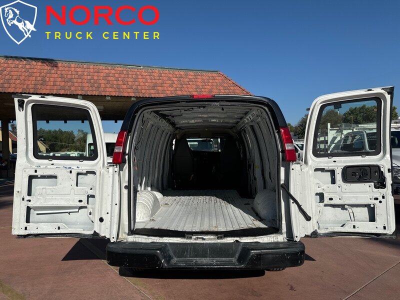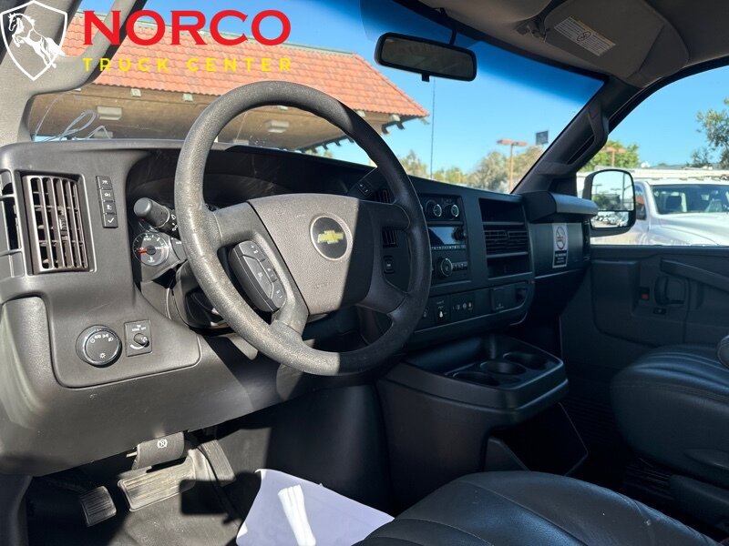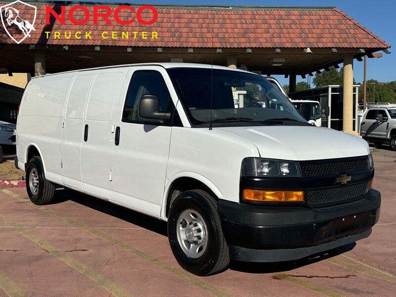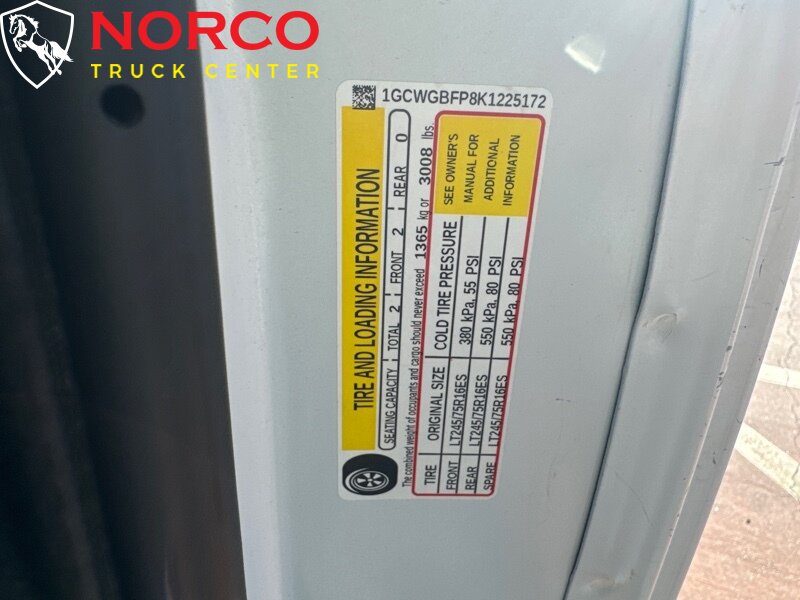 -- INSTALLED FEATURES: Front air conditioning, Front air conditioning zones: single, Airbag deactivation: passenger switch, Front airbags: dual, Side airbags: front, Side curtain airbags: front, Antenna type: mast, Auxiliary audio input: jack, Radio: AM/FM, Total speakers: 2, ABS: 4-wheel, Electronic brakeforce distribution, Front brake diameter: 12.8, Front brake type: ventilated disc, Front brake width: 1.5, Power brakes, Rear brake diameter: 13.0, Rear brake type: ventilated disc, Rear brake width: 1.14, Armrests: front center, Floor material: rubber/vinyl, Steering wheel trim: urethane, Assist handle: front, Cargo area light, Cupholders: front / 3, Power outlet(s): 115V front / 12V front, Power steering, Reading lights: front, Storage: cargo tie-down anchors and hooks / door pockets / in dash, Sun visors, Axle ratio: 3.42, Alternator: 105 amps, Auxiliary oil cooler, Battery: maintenance-free, Battery rating: 600 CCA, Battery saver, Bumper detail: rear step, Door handle color: black, Front bumper color: black, Grille color: black, Mirror color: black, Rear bumper color: black, Rear trunk/liftgate: barn, Side door type: passenger-side hinged swing-out, Window trim: black, Clock, Digital odometer, Fuel economy display: MPG / range, Gauge: oil pressure / tachometer, Multi-function display, Powertrain hour meter, Trip odometer, Warnings and reminders: low fuel level / maintenance due, Daytime running lights, Headlights: auto on/off / halogen, Side mirror adjustments: manual / manual folding, OEM roof height: undefined, Camera system: rearview, Child seat anchors, Rearview monitor: in mirror, Front seatbelts: 3-point, Seatbelt pretensioners: front, Driver seat manual adjustments: reclining / 4, Front headrests: integrated / 2, Front seat type: bucket, Passenger seat manual adjustments: reclining / 4, Upholstery: vinyl, Anti-theft system: alarm / vehicle immobilizer, Power door locks: anti-lockout, Hill holder control, Stability control, Traction control, Steering ratio: 17.2, Turns lock-to-lock: 3.0, Front shock type: gas, Front spring type: coil, Front stabilizer bar: diameter 35 mm, Front suspension classification: independent, Front suspension type: short and long arm, Rear shock type: gas, Rear spring type: leaf, Rear suspension classification: solid live axle, Rear suspension type: multi-leaf, Driver assistance app: roadside assistance, Satellite communications: OnStar / voice guided directions, Smart device app compatibility: myChevrolet with Connected Access, Smart device app function: maintenance status, Wi-Fi: hotspot, Spare tire mount location: underbody, Spare tire size: full-size matching, Spare wheel type: steel, Tire Pressure Monitoring System, Tire type: all season, Wheel covers: partial, Wheels: steel, Auxiliary transmission fluid cooler, Tow/Haul mode, Front wipers: intermittent, Power windows, Solar-tinted glass: front / rear, Window defogger: side