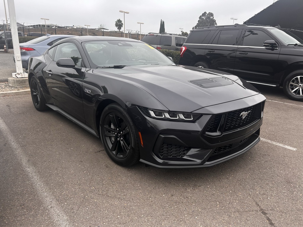 Dark Matter Gray Metallic 2024 Ford Mustang GT RWD 6-Speed Manual 5.0L V8 Ti-VCT 9-Speaker Stereo System, ABS brakes, Alloy wheels, Ambient Lighting w/MyColor, Brake assist, Cloth/Vinyl Heated Bucket Seats, Compass, Dual-Zone Electronic Automatic Temperature Control, Electronic Stability Control, Equipment Group 301A High Package, Exterior Parking Camera Rear, Front Bucket Seats, Fully automatic headlights, Illuminated entry, Low tire pressure warning, Rear Parking Sensors, Remote keyless entry, SiriusXM w/360L & HD Radio, Traction control, Wheels: 18" x 8.5" Ebony Black Painted Aluminum.Recent Arrival!