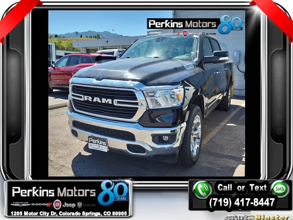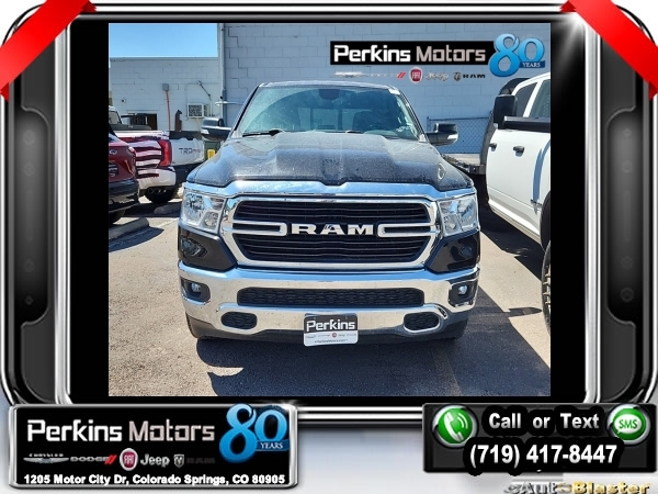 Diamond Black Crystal Pearlcoat 4WD 3.6L V6 24V VVT 8-Speed Automatic<br><br><br>Clean CARFAX.<br><br>Check us out at www.perkinsmotors.com to see our specials! Since opening our doors in 1944, we’ve been proud to serve Colorado Springs, CO, and the surrounding areas of Pueblo, Castle Rock and Denver, CO. Throughout this time of being family owned for 80 years, we’ve maintained a firm commitment to our customers: to offer a wide selection of New Chrysler, Dodge, Fiat, Jeep, and Ram vehicles and quality pre-owned vehicles, and provide a quick, no-hassle car-buying process that ensures everyone drives off the lot satisfied with their purchase.<br><br><br>Awards:<br> * Motor Trend Automobiles of the year * 2019 KBB.com 10 Favorite New-for-2019 Cars * NACTOY 2019 North American Truck of the Year * 2019 KBB.com 10 Best Road Trip Cars * 2019 KBB.com Best Auto Tech Awards<br><br>Big Horn Level 1 Equipment Group (Auto-Dimming Rear-View Mirror, Big Horn IP Badge, Class IV Receiver Hitch, Cluster 3.5 TFT Color Display, Foam Bottle Insert (Door Trim Panel), Glove Box Lamp, Power 4-Way Driver Lumbar Adjust, Power 8-Way Driver Seat, Power Adjustable Pedals, Power Heated Fold Away Mirrors, Radio: Uconnect 4 w/8.4 Display, Rear Dome w/On/Off Switch Lamp, Rear Power Sliding Window, Rear Window Defroster, Single Disc Remote CD Player, SiriusXM Satellite Radio, Sun Visors w/Illuminated Vanity Mirrors, and Universal Garage Door Opener), Quick Order Package 23Z Big Horn/Lone Star (Steering Wheel Mounted Audio Controls), 3 Rear Seat Head Restraints, 3.21 Rear Axle Ratio, 4 Way Front Headrests, 4-Wheel Disc Brakes, 48V Belt Starter Generator, 6 Speakers, ABS brakes, Air Conditioning, Alloy wheels, AM/FM radio, Brake assist, Bumpers: chrome, Cloth Bench Seat, Compass, Cruise Control, Delay-off headlights, Driver door bin, Dual front impact airbags, Dual front side impact airbags, Electronic Stability Control, Front anti-roll bar, Front Center Armrest w/Storage, Front fog lights, Front reading lights, Front Seat Back Map Pockets, Front wheel independent suspension, Fully automatic headlights, GPS Antenna Input, Heated door mirrors, Illuminated entry, Leather steering wheel, Low tire pressure warning, Manufacturer's Statement of Origin, Occupant sensing airbag, Outside temperature display, Overhead airbag, Overhead console, Panic alarm, ParkView Rear Back-Up Camera, Passenger door bin, Passenger vanity mirror, Power door mirrors, Power steering, Power windows, Radio data system, Radio: Uconnect 3 w/5 Display, Rear 60/40 Folding Seat, Rear anti-roll bar, Rear seat center armrest, Rear step bumper, Rear Wheelhouse Liners, Remote keyless entry, Remote Start System, Split folding rear seat, Tachometer, Telescoping steering wheel, Tilt steering wheel, Traction control, Trip computer, Variably intermittent wipers, Voltmeter, Wheels: 18 x 8, and Wheels: 20 x 9 Aluminum Chrome Clad.