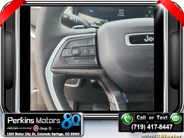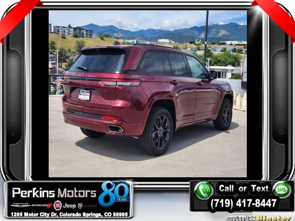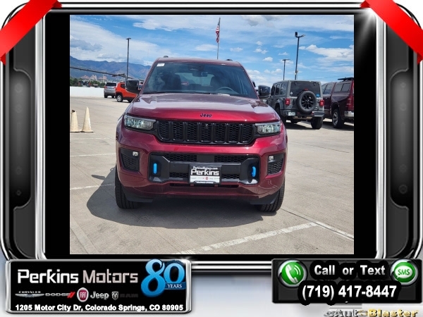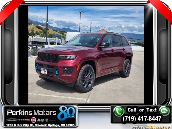 Factory MSRP: $66,575 $10,750 off MSRP! Priced below KBB Fair Purchase Price! Velvet Red Pearlcoat 2024 Jeep Grand Cherokee Base 4xe 4WD 8-Speed Automatic 2.0L I4 DOHC<br>2.0L I4 DOHC, 4WD.<br>Check us out at www.perkinsmotors.com to see our specials! Since opening our doors in 1944, we’ve been proud to serve Colorado Springs, CO, and the surrounding areas of Pueblo, Castle Rock and Denver, CO. Throughout this time of being family owned for 80 years, we’ve maintained a firm commitment to our customers: to offer a wide selection of New Chrysler, Dodge, Fiat, Jeep, and Ram vehicles and quality pre-owned vehicles, and provide a quick, no-hassle car-buying process that ensures everyone drives off the lot satisfied with their purchase.<br><br>Anniversary Edition, Quick Order Package 27W Anniversary Edition (2 Front Tow Hooks, 2nd-Row Manual Window Shades, Auto-Dimming Exterior Driver Mirror, Capri Leatherette w/Axis II Seats, Integrated Off-Road Camera, Painted Door Cladding, Painted Lower Rocker Panel Cladding, Painted Wheel Flares, Passive Entry - Front/Rear Doors, Liftgate, Rain Sensitive Windshield Wipers, and Surround View Camera System), 2.0L I4 DOHC, 4WD, 10 Speakers, 3.70 Rear Axle Ratio, 4-Wheel Disc Brakes, ABS brakes, Air Conditioning, Alloy wheels, AM/FM radio: SiriusXM with 360L, Anti-whiplash front head restraints, Audio memory, Auto High-beam Headlights, Automatic temperature control, Brake assist, Bumpers: body-color, Capri Leatherette Seats, Compass, Cruise Control, Delay-off headlights, Driver door bin, Driver vanity mirror, Dual front impact airbags, Dual front side impact airbags, Electronic Stability Control, Four wheel independent suspension, Front anti-roll bar, Front Bucket Seats, Front Center Armrest w/Storage, Front dual zone A/C, Front fog lights, Front License Plate Bracket, Front reading lights, Fully automatic headlights, Garage door transmitter, Heated door mirrors, Heated front seats, Heated rear seats, Heated steering wheel, Heavy Duty Suspension, Illuminated entry, Knee airbag, Low tire pressure warning, Memory seat, Navigation System, Occupant sensing airbag, Outside temperature display, Overhead airbag, Overhead console, Panic alarm, ParkView Rear Back-Up Camera, Passenger door bin, Passenger vanity mirror, Power door mirrors, Power driver seat, Power Liftgate, Power moonroof, Power passenger seat, Power steering, Power windows, Radio data system, Radio: Uconnect 5 Nav w/10.1 Display, Rear anti-roll bar, Rear reading lights, Rear window defroster, Rear window wiper, Remote keyless entry, Roof rack: rails only, Security system, Speed-Sensitive Wipers, Split folding rear seat, Spoiler, Steering wheel mounted audio controls, Tachometer, Telescoping steering wheel, Tilt steering wheel, Traction control, Trip computer, Turn signal indicator mirrors, Variably intermittent wipers, Voltmeter, Wheels: 18 x 8 Fully Painted Aluminum, and Wheels: 20 x 8.5 Black Painted Aluminum. Sale price includes all manufacture's incentives and dealer discounts. Sale price not available on lease or compatible with special APR. $3000 - 2024 National Retail Consumer Cash . Exp. 08/05/2024 $3750 - Federal EV Tax Credit. Exp. 12/31/2024
