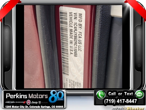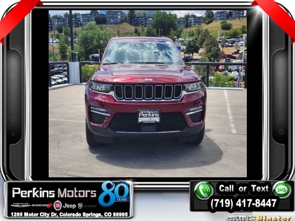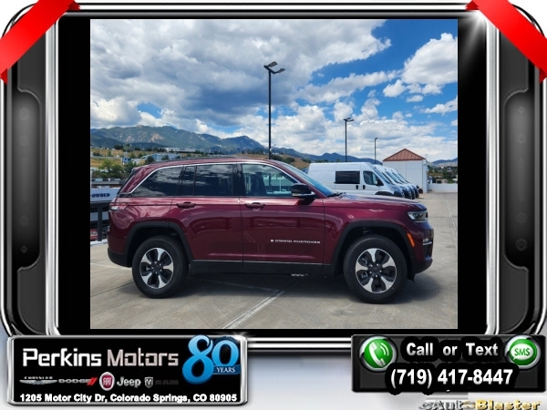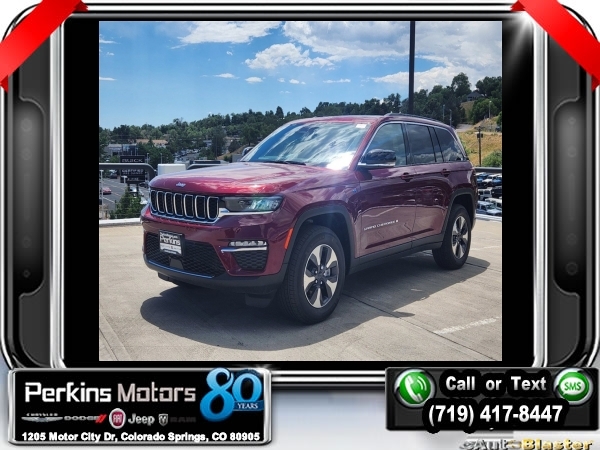 Factory MSRP: $62,880 $10,750 off MSRP! Priced below KBB Fair Purchase Price! Velvet Red Pearlcoat 2024 Jeep Grand Cherokee Base 4xe 4WD 8-Speed Automatic 2.0L I4 DOHC<br>2.0L I4 DOHC, 4WD.<br>Check us out at www.perkinsmotors.com to see our specials! Since opening our doors in 1944, we’ve been proud to serve Colorado Springs, CO, and the surrounding areas of Pueblo, Castle Rock and Denver, CO. Throughout this time of being family owned for 80 years, we’ve maintained a firm commitment to our customers: to offer a wide selection of New Chrysler, Dodge, Fiat, Jeep, and Ram vehicles and quality pre-owned vehicles, and provide a quick, no-hassle car-buying process that ensures everyone drives off the lot satisfied with their purchase.<br><br>Quick Order Package 27F, 2.0L I4 DOHC, 4WD, 10 Speakers, 3.70 Rear Axle Ratio, 4-Wheel Disc Brakes, ABS brakes, Air Conditioning, Alloy wheels, AM/FM radio: SiriusXM with 360L, Anti-whiplash front head restraints, Audio memory, Auto High-beam Headlights, Automatic temperature control, Brake assist, Bumpers: body-color, Capri Leatherette Seats, Compass, Cruise Control, Delay-off headlights, Driver door bin, Driver vanity mirror, Dual front impact airbags, Dual front side impact airbags, Electronic Stability Control, Four wheel independent suspension, Front anti-roll bar, Front Bucket Seats, Front Center Armrest w/Storage, Front dual zone A/C, Front fog lights, Front License Plate Bracket, Front reading lights, Fully automatic headlights, Garage door transmitter, Heated door mirrors, Heated front seats, Heated rear seats, Heated steering wheel, Heavy Duty Suspension, Illuminated entry, Knee airbag, Low tire pressure warning, Memory seat, Navigation System, Occupant sensing airbag, Outside temperature display, Overhead airbag, Overhead console, Panic alarm, ParkView Rear Back-Up Camera, Passenger door bin, Passenger vanity mirror, Power door mirrors, Power driver seat, Power Liftgate, Power moonroof, Power passenger seat, Power steering, Power windows, Radio data system, Radio: Uconnect 5 Nav w/10.1 Display, Rear anti-roll bar, Rear reading lights, Rear window defroster, Rear window wiper, Remote keyless entry, Roof rack: rails only, Security system, Speed-Sensitive Wipers, Split folding rear seat, Spoiler, Steering wheel mounted audio controls, Tachometer, Telescoping steering wheel, Tilt steering wheel, Traction control, Trip computer, Turn signal indicator mirrors, Variably intermittent wipers, Voltmeter, and Wheels: 18 x 8 Fully Painted Aluminum. Sale price includes all manufacture's incentives and dealer discounts. Sale price not available on lease or compatible with special APR. $3000 - 2024 National Retail Consumer Cash . Exp. 07/31/2024 $3750 - Federal EV Tax Credit. Exp. 12/31/2024