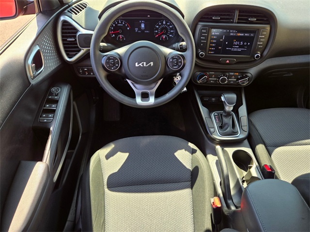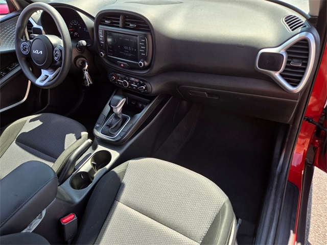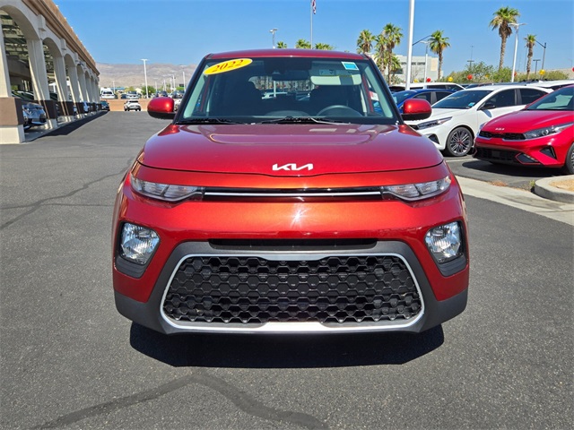 Priced below KBB Fair Purchase Price!Odometer is 17407 miles below market average!29/35 City/Highway MPGMars Orange 2022 Kia Soul LX FWD IVT 2.0L I4 DOHCIf you don't drive here, you can't save here!Price may not include recon fee. Technology Package (16" x 6.5" Alloy Wheels, Blind Spot Collision Warning, Driver Attention Warning, Forward Collision Avoidance Assist, Lane Change Assist, Lane Keeping Assist, and Rear Cross-Traffic Collision Avoidance Assist), 4-Wheel Disc Brakes, 6 Speakers, ABS brakes, Air Conditioning, Apple CarPlay & Android Auto, Brake assist, Bumpers: body-color, Carpeted Floor Mats, Delay-off headlights, Driver door bin, Driver vanity mirror, Dual front impact airbags, Dual front side impact airbags, Electronic Stability Control, Exterior Parking Camera Rear, Front anti-roll bar, Front Bucket Seats, Front Center Armrest, Front reading lights, Front wheel independent suspension, Fully automatic headlights, Illuminated entry, Low tire pressure warning, Occupant sensing airbag, Outside temperature display, Overhead airbag, Overhead console, Panic alarm, Passenger door bin, Passenger vanity mirror, Power door mirrors, Power steering, Power windows, Radio: AM/FM/MP3 Audio System, Rear window defroster, Rear window wiper, Remote keyless entry, Speed control, Speed-sensing steering, Split folding rear seat, Steering wheel mounted audio controls, Tachometer, Telescoping steering wheel, Tilt steering wheel, Traction control, Trip computer, and Variably intermittent wipers.