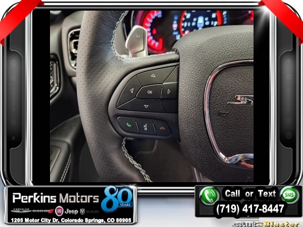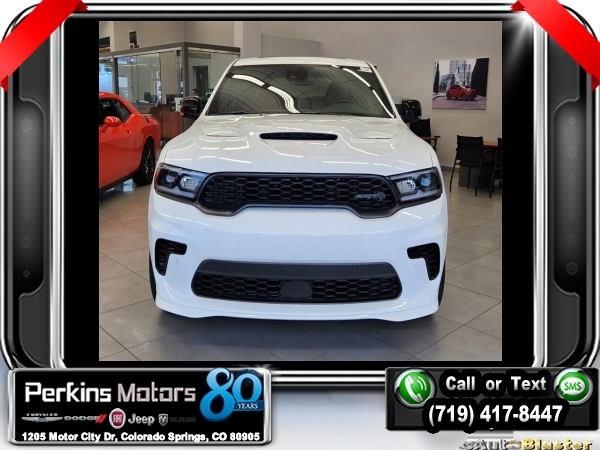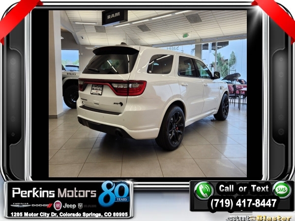 Factory MSRP: $105,585 $11,100 off MSRP! Priced below KBB Fair Purchase Price! White Knuckle Clearcoat 2024 Dodge Durango SRT Hellcat AWD 8-Speed Automatic 6.2L Supercharged HEMI V8 SRT<br>MARKET ADJUSTMENT, AWD.<br>Check us out at www.perkinsmotors.com to see our specials! Since opening our doors in 1944, we’ve been proud to serve Colorado Springs, CO, and the surrounding areas of Pueblo, Castle Rock and Denver, CO. Throughout this time of being family owned for 80 years, we’ve maintained a firm commitment to our customers: to offer a wide selection of New Chrysler, Dodge, Fiat, Jeep, and Ram vehicles and quality pre-owned vehicles, and provide a quick, no-hassle car-buying process that ensures everyone drives off the lot satisfied with their purchase.<br><br>Black Package (Eclipse Black Exhaust Tips, Gray Metallic Badges, Satin Black Dodge Tail Lamp Badge, and Wheels: 20 x 10 Lights Out Aluminum), Quick Order Package 2XW Hellcat Plus (7 & 4 Pin Wiring Harness, Adaptive Cruise Control w/Stop, Advanced Brake Assist, Class IV Receiver Hitch, Full Speed Forward Collision Warning Plus, Lane Departure Warning Plus, Power Sunroof, and Trailer Brake Control), AWD, 3.70 Rear Axle Ratio, 3rd row seats: split-bench, 4-Wheel Disc Brakes, 9 Speakers, ABS brakes, Adaptive suspension, Air Conditioning, Alloy wheels, AM/FM radio: SiriusXM w/360L, Anti-whiplash front head restraints, Apple CarPlay/Android Auto, Audio memory, Auto High-beam Headlights, Auto-dimming door mirrors, Auto-dimming Rear-View mirror, Automatic temperature control, Brake assist, Bumpers: body-color, Compass, Cruise Control, Delay-off headlights, Driver door bin, Driver vanity mirror, Dual front impact airbags, Dual front side impact airbags, Electronic Stability Control, Emergency communication system, Four wheel independent suspension, Front anti-roll bar, Front Bucket Seats, Front Center Armrest w/Storage, Front dual zone A/C, Front reading lights, Fully automatic headlights, Garage door transmitter, Gloss Black Exterior Mirrors, Heated door mirrors, Heated front seats, Heated rear seats, Heated steering wheel, Illuminated entry, Knee airbag, Leather Shift Knob, Leather steering wheel, Leather Trimmed Bucket Seats, Low tire pressure warning, Manufacturer's Statement of Origin, Memory seat, Navigation system: TomTom, Occupant sensing airbag, Outside temperature display, Overhead airbag, Overhead console, Panic alarm, ParkView Rear Back-Up Camera, Passenger door bin, Passenger vanity mirror, Power door mirrors, Power driver seat, Power Liftgate, Power passenger seat, Power steering, Power windows, Radio data system, Radio: Uconnect 5 Nav w/10.1 Display, Rain sensing wipers, Rear air conditioning, Rear anti-roll bar, Rear reading lights, Rear window defroster, Rear window wiper, Remote keyless entry, Security system, Speed-sensing steering, Speed-Sensitive Wipers, Split folding rear seat, Spoiler, Sport steering wheel, Steering wheel mounted audio controls, Tachometer, Telescoping steering wheel, Tilt steering wheel, Traction control, Trip computer, Turn signal indicator mirrors, Variably intermittent wipers, Ventilated front seats, Voltmeter, and Wheels: 20 x 10 Machine Face w/Dark Pockets. Sale price includes all manufacture's incentives and dealer discounts. Sale price not available on lease or compatible with special APR. $4000 - 2024 National Engine Bonus Cash. Exp. 12/02/2024 $7100 - 2024 National Power Dollars Retail Bonus Cash . Exp. 12/02/2024