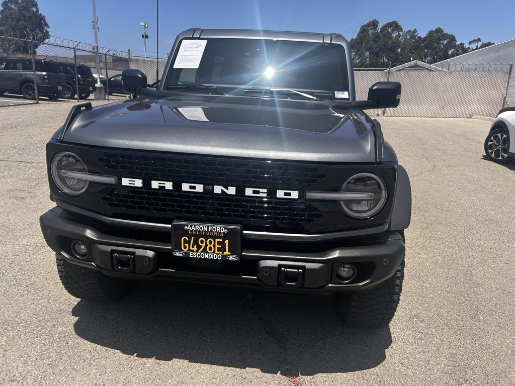 Carbonized Gray Metallic 2023 Ford Bronco Wildtrak 4WD 10-Speed Automatic V6 10 Speakers w/Subwoofer, 12" LCD Capacitive Touchscreen w/Swipe Capability, 2 Smart Charging USB Ports In Dashboard, 360-Degree Camera, ABS brakes, Adaptive Cruise Control, Additional Sound Deadening, Air Conditioning, Brake assist, Compass, Convertible HardTop, Electronic Stability Control, Equipment Group 354A Lux Package, Evasive Steering Assist, Exterior Parking Camera Rear, Front Parking Sensors, Fully automatic headlights, Heated door mirrors, Heated Steering Wheel, Illuminated entry, Information on Demand Panel, Low tire pressure warning, Radio: B&O Sound System by Bang & Olufsen, Remote keyless entry, Sideview Mirrors, Traction control, Universal Garage Door Opener, Wheels: 17" Black High Gloss-Painted Aluminum (DISC), Wireless Charging Pad.Recent Arrival!