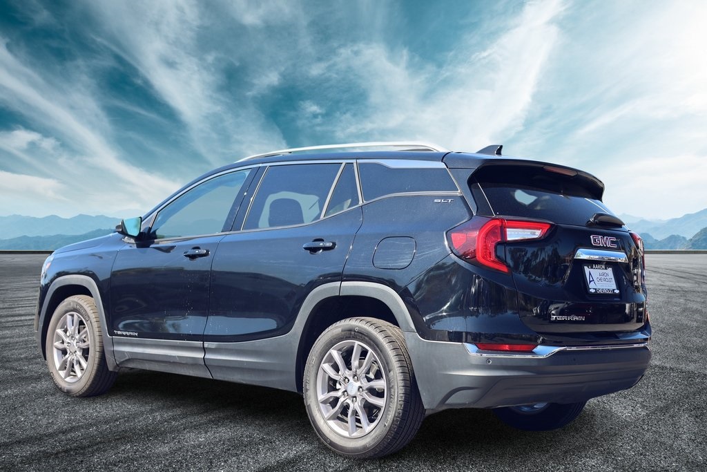 Priced below KBB Fair Purchase Price!NEW FILTERS, LOW MILES, Terrain SLT, 4D Sport Utility, 1.5L DOHC, 9-Speed Automatic, AWD, Ebony Twilight Metallic, Jet Black w/Perforated Leather-Appointed Seat Trim, 2 USB Data Ports, 2 USB Data Ports w/SD Card Reader, 6-Speaker Audio System Feature, Active Cruise Control, AM/FM radio: SiriusXM, Auto-dimming Rear-View mirror, Bluetooth® For Phone, Compass, Delay-off headlights, Driver & Front Passenger Heated Seats, Emergency communication system: OnStar and GMC connected services capable, Front dual zone A/C, Fully automatic headlights, Garage door transmitter, Heated front seats, Heated steering wheel, Lane Departure Warning System, Memory seat, Power driver seat, Power Liftgate, Preferred Equipment Group 4SA, Radio: GMC Infotainment Audio System w/8" Display, Security system, SiriusXM Radio, Steering wheel mounted audio controls, Wheels: 18" x 7" Silver Painted Aluminum, Wireless Apple CarPlay/Wireless Android Auto.CARFAX One-Owner.