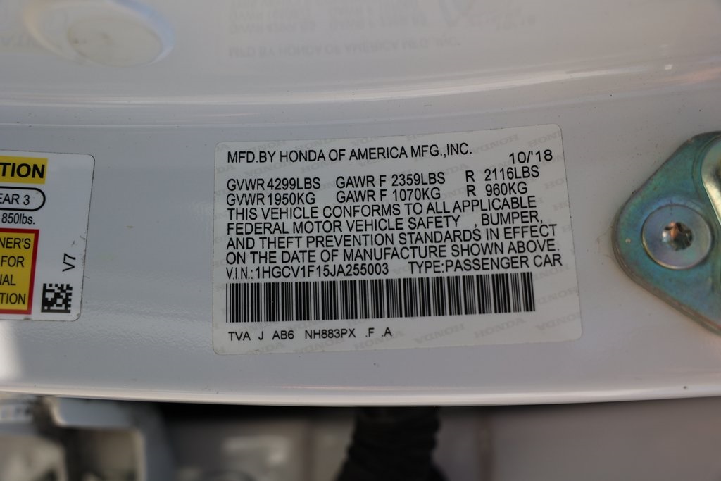 Platinum White Pearl 2018 Honda Accord LX FWD CVT 1.5T I4 DOHC 16V Turbocharged VTEC Ivory w/Cloth Seat Trim, Air Conditioning, Brake assist, Electronic Stability Control, Exterior Parking Camera Rear, Front Bucket Seats, Fully automatic headlights, Radio: 160-Watt AM/FM Audio System, Wheels: 17" Silver-Painted Alloy.Recent Arrival! 30/38 City/Highway MPGAwards: * JD Power Automotive Performance, Execution and Layout (APEAL) Study * ALG Residual Value Awards, Residual Value Awards * NACTOY 2018 North American Car of the Year * 2018 KBB.com 10 Most Awarded Brands * 2018 KBB.com Brand Image AwardsKelley Blue Book Brand Image Awards are based on the Brand Watch(tm) study from Kelley Blue Book Market Intelligence. Award calculated among non-luxury shoppers. For more information, visit www.kbb.com. Kelley Blue Book is a registered trademark of Kelley Blue Book Co., Inc.