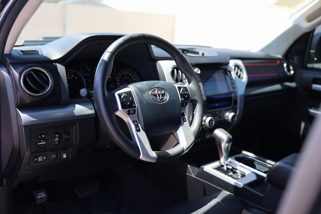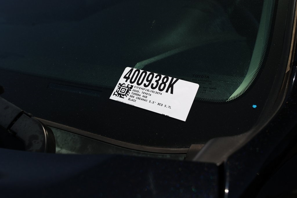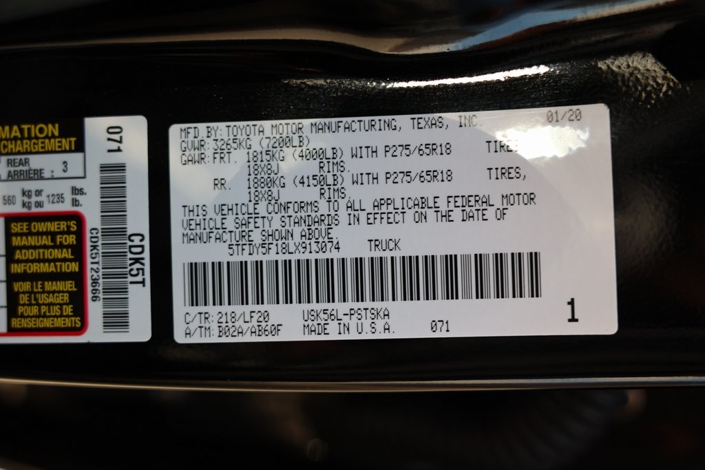 Midnight Black Metallic 2020 Toyota Tundra TRD Pro 4WD 6-Speed Automatic Electronic i-Force 5.7L V8 DOHC 32V LEV 4WD, Black w/Leather Seat Trim, 12 Speakers, 38 Gallon Fuel Tank Capacity, Apple CarPlay/Android Auto, Brake assist, Electronic Stability Control, Exterior Parking Camera Rear, Front Bucket Seats, Front Bucket Seats w/TRD Pro Logos, Fully automatic headlights, HomeLink Universal Transceiver, Leather Seat Trim (LF), Navigation System, Power moonroof, Power Tilt & Slide Moonroof w/Sliding Sunshade, Radio: Premium JBL Audio w/Dynamic Navigation, Remote Connect, Safety Connect, Service Connect, SiriusXM Radio, TRD Pro Dual Exhaust, TRD Pro Suspension, Wheels: 18" BBS 5-Spoke Satin Black Forged-Alum..Recent Arrival!