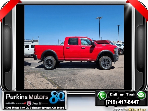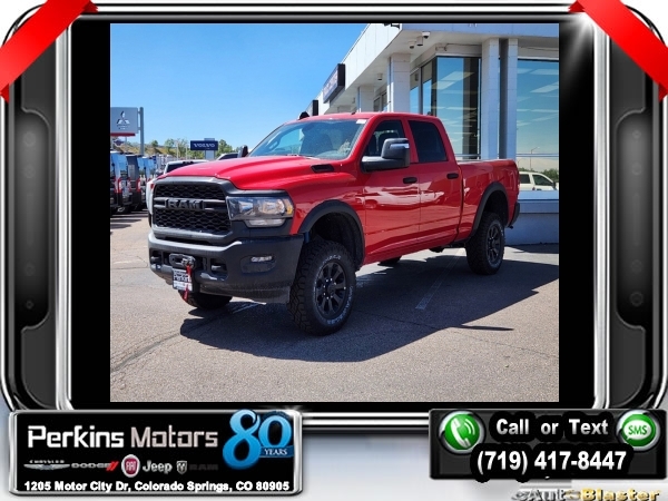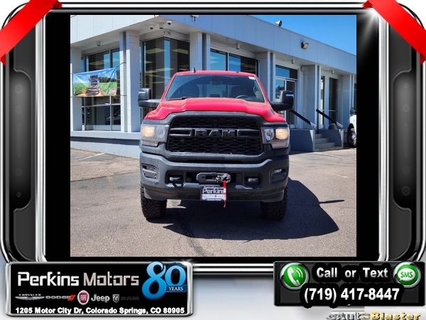 Factory MSRP: $66,960 $7,000 off MSRP! Flame Red Clearcoat 2024 Ram 2500 Tradesman 4WD 8-Speed Automatic 6.4L V8<br><br>Check us out at www.perkinsmotors.com to see our specials! Since opening our doors in 1944, we’ve been proud to serve Colorado Springs, CO, and the surrounding areas of Pueblo, Castle Rock and Denver, CO. Throughout this time of being family owned for 80 years, we’ve maintained a firm commitment to our customers: to offer a wide selection of New Chrysler, Dodge, Fiat, Jeep, and Ram vehicles and quality pre-owned vehicles, and provide a quick, no-hassle car-buying process that ensures everyone drives off the lot satisfied with their purchase.<br><br>Bed Utility Group (LED Bed Lighting, MOPAR Deployable Bed Step, and MOPAR Spray In Bedliner), Convenience Group (Air Conditioning ATC w/Dual Zone Control, Auto-Dimming Rear-View Mirror, and Tinted Acoustic Windshield Glass), Power Wagon Package (4.10 Axle Ratio, Base Engine Controller, Black Wheel Center Hub, Black Wheel Flares, Front Disconnecting Stabilizer Bar, Front Electric Winch, Front LED Fog Lamps, Front Performance Tuned Shock Absorbers, Fuel Tank Skid Plate Shield, Hill Descent Control, ParkSense Front/Rear Park Assist System, Powder Coated Front Bumper, Powder Coated Rear Bumper, Raised Ride Height, RAM Articulink Suspension, Rear Performance Tuned Shock Absorbers, Rear Wheelhouse Liners, Tow Hooks, Tru-Lok Front & Rear Axles, and Wheels: 17 x 8.0 Black Painted Aluminum), Quick Order Package 2GA Tradesman, Tradesman Level 1 Equipment Group (Manual Folding Exterior Mirrors and Manual Telescoping Mirrors), 12 Touchscreen Display, 17 x 7.5 Steel Styled Wheels, 2 Way Rear Headrest Seat, 220 Amp Alternator, 3.73 Axle Ratio, 4 Way Front Headrests, 4-Wheel Disc Brakes, 40/20/40 Split Bench Seat, 4G LTE Wi-Fi Hot Spot, 6 Speakers, ABS brakes, Active Noise Control System, Air Conditioning, Alexa Built-In, All R1 High Radios, All Radio Equipped Vehicles, AM/FM radio, Apple CarPlay, Black Exterior Mirrors, Blind Spot & Cross Path Detection, Brake assist, Center Hub, Compass, Connected Travel & Traffic Services, Connectivity - US/Canada, Cruise Control, Delay-off headlights, Disassociated Touchscreen Display, Driver door bin, Dual front impact airbags, Dual front side impact airbags, Electronic Stability Control, Electronically Controlled Throttle, Emergency communication system: SiriusXM Guardian, For Details, Visit DriveUconnect.com, For More Info, Call 800-643-2112, Front anti-roll bar, Front Center Armrest w/Storage, Front License Plate Bracket, Front reading lights, Fully automatic headlights, Global Telematics Box Module (TBM), Google Android Auto, GPS Antenna Input, GPS Navigation, HD Radio, Heavy Duty Vinyl 40/20/40 Split Bench Seat, Illuminated entry, Integrated Voice Command w/Bluetooth, LED Tail Lamps, Low tire pressure warning, Manual Adjust 4-Way Driver Seat, Occupant sensing airbag, Off-Road Information Pages, Outside temperature display, Overhead airbag, Overhead console, ParkView Rear Back-Up Camera, Passenger door bin, Passenger vanity mirror, Power steering, Power windows, Radio data system, Radio: Uconnect 3 w/5 Display, Radio: Uconnect 5 Nav w/12.0 Display, Rear anti-roll bar, Rear Folding Seat, Rear step bumper, Rear Window Defroster, Selectable Tire Fill Alert, SiriusXM Radio Service, SiriusXM w/360L, Storage Tray, Tachometer, Tilt steering wheel, Tip Start, Traction control, Trailer Tow Pages, Variably intermittent wipers, and VoltmeteR. Sale price includes all manufacture's incentives and dealer discounts. Sale price not available on lease or compatible with special APR. $2000 - 2024 Denver BC Bonus Cash . Exp. 07/31/2024