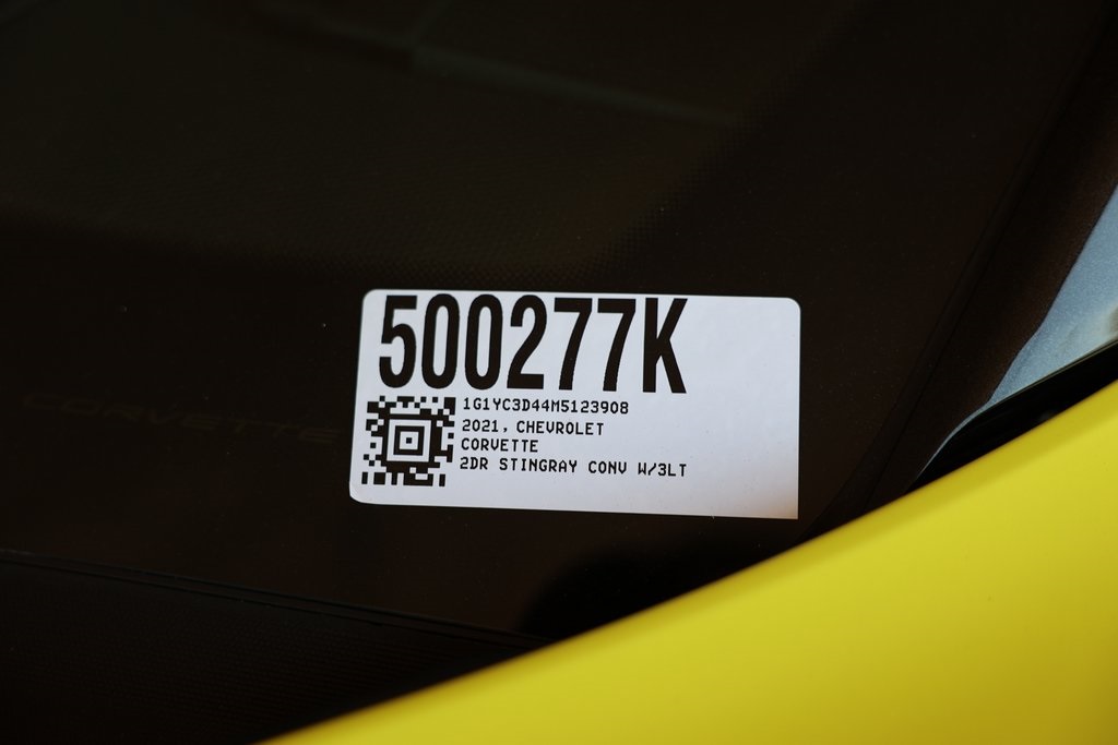 ***ONE OWNER CARFAX***, ***CLEAN CARFAX***, ***LOW MILES***, Corvette Stingray 3LT, 2D Convertible, 6.2L V8, 8-Speed Manual, RWD, Accelerate Yellow Metallic, Jet Black Leather, 14 Speakers, 8-Way Power Driver Seat Adjuster, 8-Way Power Passenger Seat Adjuster, Alloy wheels, Bose Performance Series Sound System w/14 Speakers, Compass, Convertible HardTop, Custom Leather Wrapped Interior Package, Front dual zone A/C, Fully automatic headlights, GT2 Bucket Seats, HD Radio, Heated & Vented Driver & Passenger Seats, Low tire pressure warning, Memory Driver & Passenger Convenience Package, Memory seat, Napa Lthr Seating Surfaces w/Perforated Inserts, Navigation System, Radio: Chevrolet Infotainment 3 Premium System, Rear Parking Sensors, Remote keyless entry, SiriusXM Radio, Universal Home Remote, Wheels: 19" x 8.5" Fr/20" x 11" Rr Bright Silver.Odometer is 5882 miles below market average!15/27 City/Highway MPGAwards: * Car and Driver 10 Best * JD Power Automotive Performance, Execution and Layout (APEAL) Study, Initial Quality Study * ALG Residual ValueCar and Driver, January 2017.