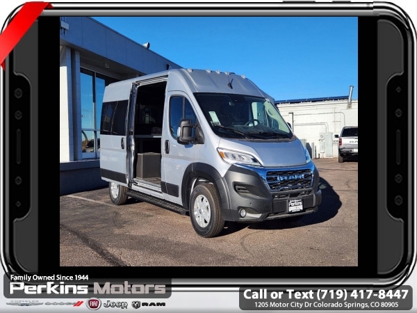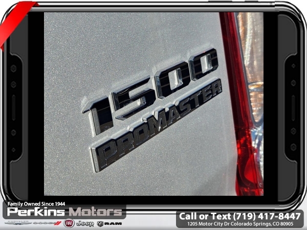 Factory MSRP: $61,120 Bright Silver Metallic Clearcoat 2024 Ram ProMaster 1500 Camper Van FWD 9-Speed 948TE Automatic 3.6L V6 24V VVT<br>ABS brakes, Electronic Stability Control, Illuminated entry, Low tire pressure warning, ParkView Rear Back-Up Camera, Remote keyless entry, Traction control.<br>Check us out at www.perkinsmotors.com to see our specials! Since opening our doors in 1944, we’ve been proud to serve Colorado Springs, CO, and the surrounding areas of Pueblo, Castle Rock and Denver, CO. Throughout this time of being family owned for 80 years, we’ve maintained a firm commitment to our customers: to offer a wide selection of New Chrysler, Dodge, Fiat, Jeep, and Ram vehicles and quality pre-owned vehicles, and provide a quick, no-hassle car-buying process that ensures everyone drives off the lot satisfied with their purchase.<br><br>ABS brakes, Electronic Stability Control, Illuminated entry, Low tire pressure warning, ParkView Rear Back-Up Camera, Remote keyless entry, Traction control, 4 Speakers, 4-Wheel Disc Brakes, 4.08 Axle Ratio, Air Conditioning, AM/FM radio: SiriusXM, Apple CarPlay/Android Auto, Black/Gray Seats, Bodyside moldings, Brake assist, Cloth Bucket Seats, Driver door bin, Driver Seat Armrest, Driver's Seat Mounted Armrest, Exterior Mirrors w/Supplemental Signals, Front anti-roll bar, Front Bucket Seats, Front reading lights, Front wheel independent suspension, Medium Duty Suspension, Outside temperature display, Overhead airbag, Overhead console, Passenger door bin, Power steering, Power windows, Radio: Uconnect 5 w/7 Display, Steering wheel mounted audio controls, Tachometer, Telescoping steering wheel, Trip computer, Turn signal indicator mirrors, Variably intermittent wipers, Wheel Center Cap, and Wheels: 16 x 6.0 Steel. Sale price includes all manufacture's incentives and dealer discounts. Sale price not available on lease or compatible with special APR. $2000 - 2024 Bonus Cash . Exp. 06/30/2025 $5029 - 2024 National Minimum Employee Pricing Discount . Exp. 06/30/2025 Price includes $25,995 in dealer added accessories.