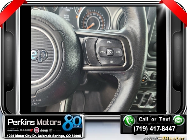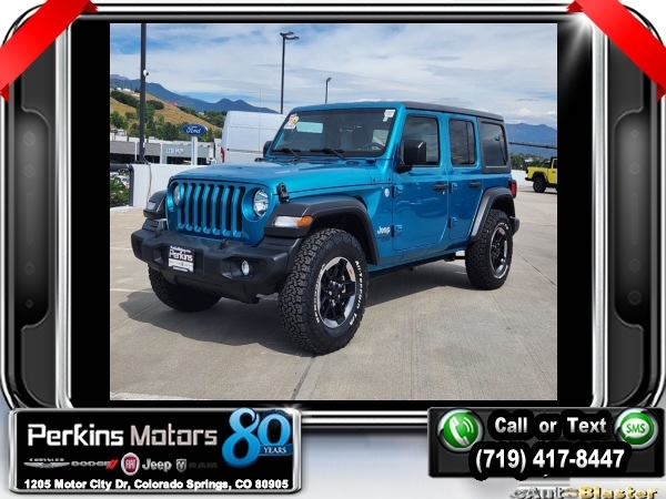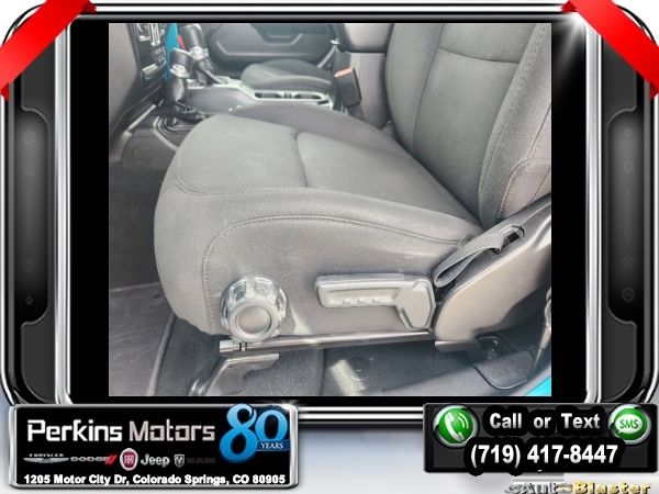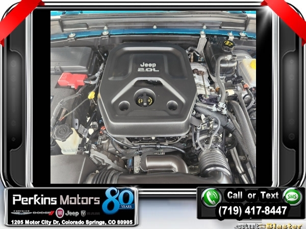 Bikini Pearlcoat 4WD 2.0L I4 DOHC 8-Speed Automatic<br><br>240 Amp Alternator, 7 & 4 Pin Wiring Harness, 700 Amp Maintenance Free Battery, Air Conditioning, Automatic Headlamps, Auxiliary Switches, Class II Receiver Hitch, Cold Weather Group, Convenience Group, Deep Tint Sunscreen Windows, Front 1-Touch Down Power Windows, Heated Front Seats, Heated Steering Wheel, Leather Wrapped Steering Wheel, Power Heated Mirrors, Quick Order Package 28S Sport S, Remote Keyless Entry, Security Alarm, Speed Sensitive Power Locks, Sun Visors w/Illuminated Vanity Mirrors, Trailer Tow & HD Electrical Group, Universal Garage Door Opener, Wheels: 17 x 7.5 Tech Silver Aluminum.<br><br><br>Check us out at www.perkinsmotors.com to see our specials! Since opening our doors in 1944, we’ve been proud to serve Colorado Springs, CO, and the surrounding areas of Pueblo, Castle Rock and Denver, CO. Throughout this time of being family owned for 80 years, we’ve maintained a firm commitment to our customers: to offer a wide selection of New Chrysler, Dodge, Fiat, Jeep, and Ram vehicles and quality pre-owned vehicles, and provide a quick, no-hassle car-buying process that ensures everyone drives off the lot satisfied with their purchase.<br><br><br>Cold Weather Group (Heated Front Seats and Heated Steering Wheel), Convenience Group (Universal Garage Door Opener), Quick Order Package 28S Sport S (Automatic Headlamps, Deep Tint Sunscreen Windows, Front 1-Touch Down Power Windows, Leather Wrapped Steering Wheel, Power Heated Mirrors, Remote Keyless Entry, Security Alarm, Speed Sensitive Power Locks, Sun Visors w/Illuminated Vanity Mirrors, and Wheels: 17 x 7.5 Tech Silver Aluminum), Trailer Tow & HD Electrical Group (240 Amp Alternator, 7 & 4 Pin Wiring Harness, 700 Amp Maintenance Free Battery, Auxiliary Switches, and Class II Receiver Hitch), Air Conditioning, 3.45 Rear Axle Ratio, 4-Wheel Disc Brakes, 8 Speakers, ABS brakes, AM/FM radio, Anti-Spin Differential Rear Axle, Black 3-Piece Hard Top, Brake assist, Cloth Low-Back Bucket Seats, Compass, Cruise Control, Delay-off headlights, Driver door bin, Driver vanity mirror, Dual front impact airbags, Dual front side impact airbags, Electronic Stability Control, Freedom Panel Storage Bag, Front anti-roll bar, Front Bucket Seats, Front Center Armrest w/Storage, Front fog lights, Front reading lights, Integrated roll-over protection, Low tire pressure warning, Manufacturer's Statement of Origin (DISC), Non-Lock Fuel Cap w/o Discriminator, Normal Duty Suspension, Occupant sensing airbag, Outside temperature display, ParkView Rear Back-Up Camera, Passenger door bin, Passenger vanity mirror, Power steering, Radio data system, Radio: Uconnect 3 w/5 Display, Rear anti-roll bar, Rear reading lights, Rear Window Wiper/Washer, Split folding rear seat, Steering wheel mounted audio controls, Tachometer, Telescoping steering wheel, Tilt steering wheel, Traction control, Trip computer, Variably intermittent wipers, and Wheels: 17 x 7.5 Black Steel Styled.