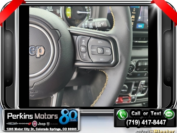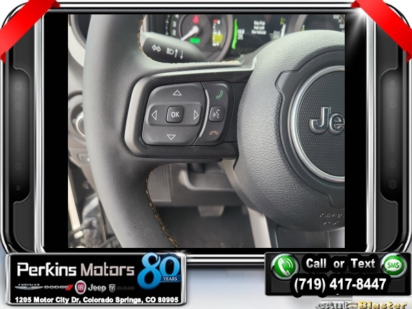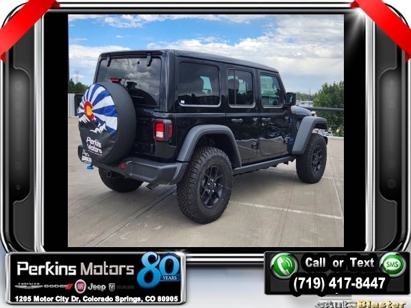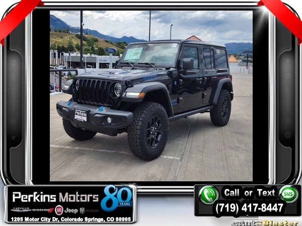 Factory MSRP: $65,210 $14,750 off MSRP! Priced below KBB Fair Purchase Price! Black Clearcoat 2024 Jeep Wrangler Willys 4xe 4WD 8-Speed Automatic 2.0L I4 DOHC<br>2.0L I4 DOHC.<br>Check us out at www.perkinsmotors.com to see our specials! Since opening our doors in 1944, we’ve been proud to serve Colorado Springs, CO, and the surrounding areas of Pueblo, Castle Rock and Denver, CO. Throughout this time of being family owned for 80 years, we’ve maintained a firm commitment to our customers: to offer a wide selection of New Chrysler, Dodge, Fiat, Jeep, and Ram vehicles and quality pre-owned vehicles, and provide a quick, no-hassle car-buying process that ensures everyone drives off the lot satisfied with their purchase.<br><br>Convenience Group (2-Door Passive Entry, Front Door Locks, Heated Steering Wheel, and Universal Garage Door Opener), Quick Order Package 29W Willys (Black Grille, Conventional Differential Front Axle, Wheels: 17 x 7.5 Painted Black, and Willys 4xe Hood Decal), Technology Group (Alpine Premium Audio System and EV/PHEV Vehicle To Load), 2.0L I4 DOHC, 3.73 Rear Axle Ratio, 4-Wheel Disc Brakes, 8 Speakers, ABS brakes, Air Conditioning, Alloy wheels, Apple CarPlay/Android Auto, Automatic temperature control, Brake assist, Cloth Low-Back Bucket Seats, Compass, Cruise Control, Delay-off headlights, Driver door bin, Driver vanity mirror, Dual front impact airbags, Dual front side impact airbags, Electronic Stability Control, Front anti-roll bar, Front Bucket Seats, Front Center Armrest w/Storage, Front dual zone A/C, Front fog lights, Front License Plate Bracket, Front reading lights, Fully automatic headlights, Heated door mirrors, Illuminated entry, Integrated roll-over protection, Low tire pressure warning, Occupant sensing airbag, Outside temperature display, Overhead airbag, Panic alarm, ParkView Rear Back-Up Camera, Passenger door bin, Passenger vanity mirror, Power door mirrors, Power steering, Power windows, Radio data system, Radio: Uconnect 5 w/12.3 Display, Rear anti-roll bar, Rear reading lights, Remote keyless entry, Removable Rear Quarter Windows, Security system, Sky 1-Touch Power Top, Split folding rear seat, Sport Suspension, Steering wheel mounted audio controls, Tachometer, Telescoping steering wheel, Tilt steering wheel, Traction control, Trip computer, Variably intermittent wipers, Voltmeter, and Wheels: 20 x 8 Machined/Painted Gray. Sale price includes all manufacture's incentives and dealer discounts. Sale price not available on lease or compatible with special APR. $3750 - Federal EV Tax Credit. Exp. 12/31/2024 $7500 - 2024 National Retail Consumer Cash . Exp. 10/31/2024