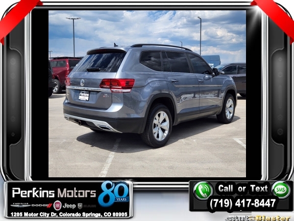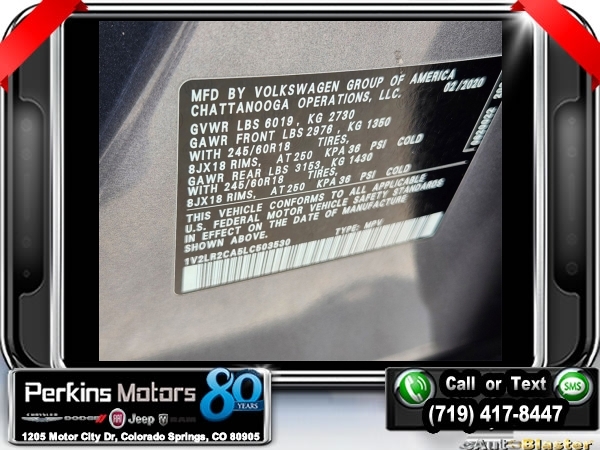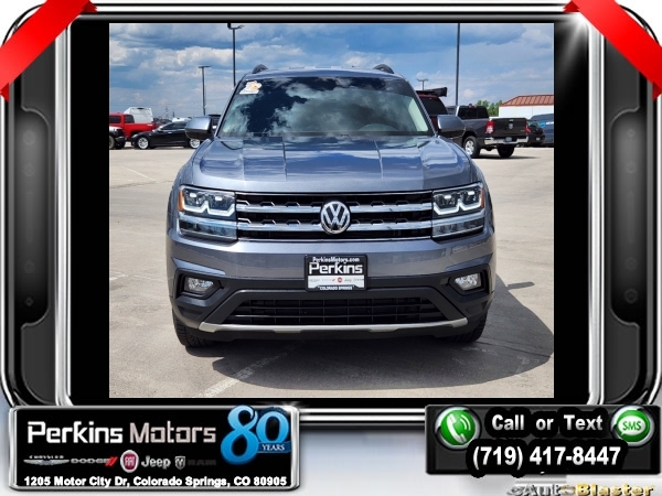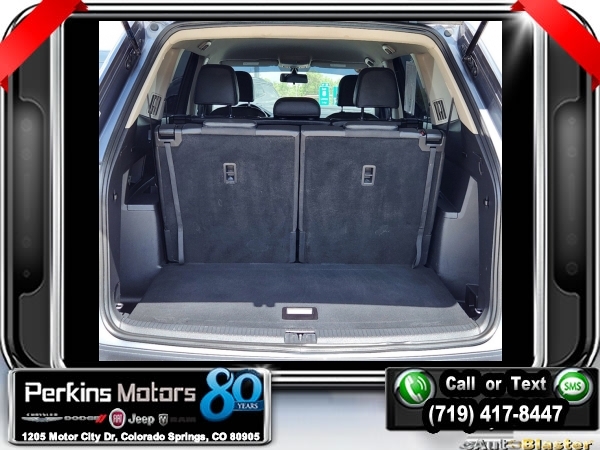 AWD 3.6L VR6 8-Speed Automatic with Tiptronic<br><br>6 Speakers, Alloy wheels, Automatic temperature control, Power driver seat, Radio data system, Radio: Composition Media w/8.0 Touchscreen, Towing Package.<br><br><br>Clean CARFAX.<br><br>Check us out at www.perkinsmotors.com to see our specials! Since opening our doors in 1944, we’ve been proud to serve Colorado Springs, CO, and the surrounding areas of Pueblo, Castle Rock and Denver, CO. Throughout this time of being family owned for 80 years, we’ve maintained a firm commitment to our customers: to offer a wide selection of New Chrysler, Dodge, Fiat, Jeep, and Ram vehicles and quality pre-owned vehicles, and provide a quick, no-hassle car-buying process that ensures everyone drives off the lot satisfied with their purchase.<br><br><br>Towing Package, 6 Speakers, Alloy wheels, Automatic temperature control, Power driver seat, Radio data system, Radio: Composition Media w/8.0 Touchscreen, 3.60 Axle Ratio, 3rd row seats: split-bench, 4-Wheel Disc Brakes, ABS brakes, Air Conditioning, AM/FM radio: SiriusXM, Brake assist, Bumpers: body-color, Compass, Cruise Control, Delay-off headlights, Driver door bin, Driver vanity mirror, Dual front impact airbags, Dual front side impact airbags, Electronic Stability Control, Emergency communication system: VW Car-Net services (capabilities require enrollment or subscription), Exterior Parking Camera Rear, Forward collision: FCW w/Autonomous Emergency Braking mitigation, Four wheel independent suspension, Front anti-roll bar, Front Bucket Seats, Front Center Armrest, Front dual zone A/C, Front fog lights, Front reading lights, Heated Comfort Front Bucket Seats, Heated door mirrors, Heated front seats, Illuminated entry, Low tire pressure warning, Occupant sensing airbag, Outside temperature display, Overhead airbag, Overhead console, Panic alarm, Passenger door bin, Passenger vanity mirror, Power door mirrors, Power steering, Power windows, Rain sensing wipers, Rear air conditioning, Rear anti-roll bar, Rear reading lights, Rear seat center armrest, Rear window defroster, Rear window wiper, Remote CD player, Remote keyless entry, Roof rack: rails only, Security system, Speed-sensing steering, Split folding rear seat, Spoiler, Standard Suspension, Steering wheel mounted audio controls, Tachometer, Telescoping steering wheel, Tilt steering wheel, Traction control, Trip computer, Turn signal indicator mirrors, V-Tex Leatherette Seating Surfaces, Variably intermittent wipers, and VW App-Connect (w/Apple CarPlay, Android Auto & MirrorLink)