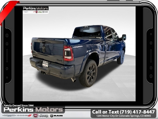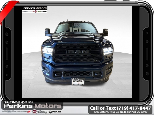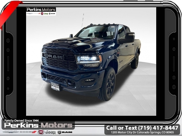 Patriot Blue Pearlcoat 4WD Cummins 6.7L I6 Turbodiesel 6-Speed Automatic<br><br>12 Touchscreen Display, 17 Speaker harman/kardon Premium Sound, 4 Adjustable Cargo Tie-Down Hooks, 4G LTE Wi-Fi Hot Spot, Adaptive Cruise Control w/Stop, Adaptive Steering System, Alexa Built-In, Apple CarPlay, Black Exterior Truck Badging, Black Grille Limited, Black Headlamp Bezels, Black Ram Head Tailgate Badge, Black Tail Lamp Bezels, Black Wheel Center Hub, Body Color Grille Surround, Center Hub, Connected Travel & Traffic Services, Connectivity - US/Canada, CTR Stop Lamp w/Cargo View Camera, Digital 3.0 Rear View Auto Dimming Mirror, Digital Rearview Mirror, Disassociated Touchscreen Display, For Details, Visit DriveUconnect.com, For More Info, Call 800-643-2112, Full Speed Forward Collision Warning Plus, Global Telematics Box Module (TBM), Google Android Auto, GPS Antenna Input, GPS Navigation, HD Radio, Integrated Voice Command w/Bluetooth, Lane Keep Assist, LED Bed Lighting, Limited Level 1 Equipment Group, MOPAR Spray In Bedliner, Navigation System, Night Edition, Off-Road Information Pages, Power Deployable Running Boards, Radio: Uconnect 5 Nav w/12.0 Display, RamBox Cargo Management System, Ramcharger Wireless Charging Pad, Selectable Tire Fill Alert, SiriusXM Radio Service, SiriusXM w/360L, Sport Performance Hood, Surround View Camera System, Tow Technology Plus Group, Trailer Reverse Guidance, Trailer Reverse Steering Control, Trailer Tow Pages, Truck Bed Cargo Divider, Vendor Painted Cargo Box, Vendor Painted Cargo Box Tracking, Wheels: 20 x 8.0 Cast Aluminum Black, Wheels: 20 x 8.0 Satin Carbon w/Chrome Inserts.<br><br>Certified. FCA US LLC Certified Pre-Owned Details:<br><br> * Limited Warranty: 3 Month/3,000 Mile (whichever comes first) after new car warranty expires or from certified purchase date<br> * Roadside Assistance<br> * Powertrain Limited Warranty: 84 Month/100,000 Mile (whichever comes first) from original in-service date<br> * 125 Point Inspection<br> * Transferable Warranty<br> * Vehicles Up to 75,000 Miles and/or 5 Model Years. 24-Hour Towing & Roadside Assistance, Car Rental Allowance, CARFAX® Vehicle History ReportTM and an Introductory 3-month Subscription to SiriusXM® Satellite Radio & Certified Warranty Upgrades<br> * Warranty Deductible: $100<br> * Vehicle History<br><br><br>CARFAX One-Owner. Clean CARFAX.<br><br>Don't just buy used!! You can get top rated factory certified that includes: a 6 year 80,000 mile factory warranty, all the books, 2 keys and remotes if equipped, roadside assistance and towing benefits, loaner car rental, ASE certified 125 point service and safety inspection and a Carfax vehicle history report! Factory certified is the smart way to buy your next vehicle! Choose from over 400 cars and trucks in stock in our 3 story covered parking garage. We are a Colorado new car dealer for 60 years and counting. Call us and save today! The price listed is the cash price. No dealers please!<br><br><br>Limited Level 1 Equipment Group (12 Touchscreen Display, 17 Speaker harman/kardon Premium Sound, 4 Adjustable Cargo Tie-Down Hooks, 4G LTE Wi-Fi Hot Spot, Adaptive Cruise Control w/Stop, Adaptive Steering System, Alexa Built-In, Apple CarPlay, Center Hub, Connected Travel & Traffic Services, Connectivity - US/Canada, CTR Stop Lamp w/Cargo View Camera, Digital Rearview Mirror, Disassociated Touchscreen Display, For Details, Visit DriveUconnect.com, For More Info, Call 800-643-2112, Full Speed Forward Collision Warning Plus, Global Telematics Box Module (TBM), Google Android Auto, GPS Antenna Input, GPS Navigation, HD Radio, Integrated Voice Command w/Bluetooth, Lane Keep Assist, LED Bed Lighting, MOPAR Spray In Bedliner, Off-Road Information Pages, Power Deployable Running Boards, Radio: Uconnect 5 Nav w/12.0 Display, RamBox Cargo Management System, Ramcharger Wireless Charging Pad, Selectable Tire Fill Alert, SiriusXM Radio Service, SiriusXM w/360L, Surround View Camera System, Trailer
