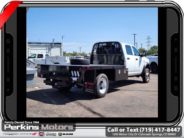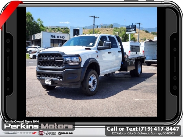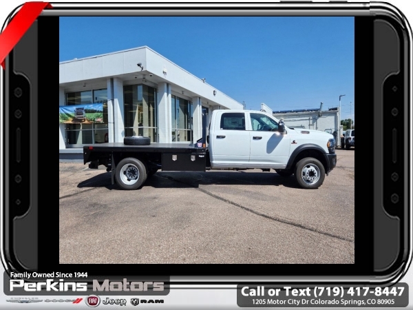 Factory MSRP: $80,655 $4,505 off MSRP! Bright White Clearcoat 2024 Ram 5500HD Tradesman 4WD Aisin 6-Speed Automatic Cummins 6.7L I6 Turbodiesel<br>CM FLATBED GOOSENECK PLATFORM BODY WITH 2 UNDERBODY BOXES.<br>Check us out at www.perkinsmotors.com to see our specials! Since opening our doors in 1944, we’ve been proud to serve Colorado Springs, CO, and the surrounding areas of Pueblo, Castle Rock and Denver, CO. Throughout this time of being family owned for 80 years, we’ve maintained a firm commitment to our customers: to offer a wide selection of New Chrysler, Dodge, Fiat, Jeep, and Ram vehicles and quality pre-owned vehicles, and provide a quick, no-hassle car-buying process that ensures everyone drives off the lot satisfied with their purchase.<br><br>Cold Weather Group (Engine Block Heater and MOPAR Winter Front Grille Cover), Electrical Accessory Group (Voltage Monitoring Auto Idle Up System), Heavy Duty Snow Plow Prep Group, Max Tow Package (4.89 Axle Ratio), Quick Order Package 2YA Tradesman (Black Key Fob, Black Wheel Flares, Glove Box, and Map/Courtesy Lamp), SiriusXM Satellite Radio (For More Info, Call 800-643-2112 and SiriusXM Radio Service), 19.5 x 6.0 Steel Wheels, 4-Wheel Disc Brakes, 4.44 Axle Ratio, 40/20/40 Split Bench Seat, 4G LTE Wi-Fi Hot Spot, 6 Speakers, 87 mph Maximum Speed, ABS brakes, Air Conditioning, Black Exterior Mirrors, Bluetooth Handsfree Phone & Audio, Compass, Courtesy Lamps, Cruise Control, Delay-off headlights, Driver door bin, Dual front impact airbags, Dual rear wheels, Electric Shift-On-The-Fly Transfer Case, Electronic Stability Control, Electronically Controlled Throttle, Emergency communication system: SiriusXM Guardian, For Details, Visit DriveUconnect.com, Front anti-roll bar, Front Bucket Seats, Front License Plate Bracket, Front reading lights, Fully automatic headlights, Global Telematics Box Module (TBM), Google Android Auto, GPS Antenna Input, HD Vinyl 40/20/40 Split Bench Seat, Heavy Duty Front Suspension Group, Integrated Voice Command w/Bluetooth, LED Tail Lamps, Manual Adjust 4-Way Driver Seat, Manual Adjust 4-Way Front Passenger Seat, Manual DPF Regeneration, Manual Folding Exterior Mirrors, Manufacturer's Statement of Origin, MOPAR Front & Rear Rubber Floor Mats, Occupant sensing airbag, Outside temperature display, ParkView Rear Back-Up Camera, Passenger door bin, Passenger vanity mirror, Power steering, Power windows, Radio data system, Radio: Uconnect 3 w/5 Display, Radio: Uconnect 5 w/8.4 Display, Rear anti-roll bar, Rear Folding Seat, Remote Keyless Entry, Tachometer, Temperature & Compass Gauge, Tilt steering wheel, Traction control, Trailer Brake Control, Variably intermittent wipers, and VoltmeteR. Sale price includes all manufacture's incentives and dealer discounts. Sale price not available on lease or compatible with special APR. $2500 - 2024 National Truck Month Bonus Cash. Exp. 04/30/2025 Price includes $9,995 in dealer added accessories.