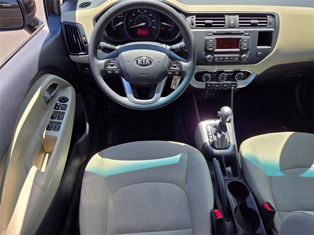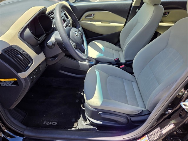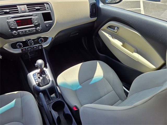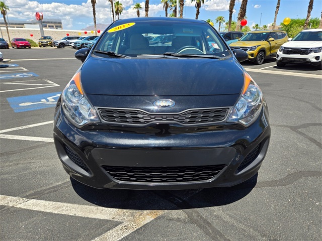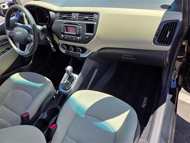 Recent Arrival!Odometer is 38065 miles below market average!Aurora Black 2013 Kia Rio LX FWD 6-Speed Automatic 1.6L I4 DGI 16V Beige Cloth.If you don't drive here, you can't save here!Price may not include recon fee. Beige Cloth, 15" x 5.5J Steel w/Covers Wheels, 4 Speakers, 4-Wheel Disc Brakes, ABS brakes, Air Conditioning, AM/FM radio: SiriusXM, Anti-whiplash front head restraints, Brake assist, Bumpers: body-color, Carpet Floor Mat, CD player, Driver door bin, Driver vanity mirror, Dual front impact airbags, Dual front side impact airbags, Electronic Stability Control, Front anti-roll bar, Front Bucket Seats, Front wheel independent suspension, Heated door mirrors, Low tire pressure warning, Occupant sensing airbag, Outside temperature display, Overhead airbag, Passenger door bin, Passenger vanity mirror, Power Door Locks w/Remote Keyless Entry, Power door mirrors, Power steering, Power Windows, Radio: AM/FM/CD MP3 Audio System, Rear Bumper Applique, Rear window defroster, Rear window wiper, Speed-sensing steering, Split folding rear seat, Spoiler, Steering wheel mounted audio controls, Tachometer, Tilt steering wheel, Traction control, Trip computer, Variably intermittent wipers, and Woven Cloth Seat Trim.