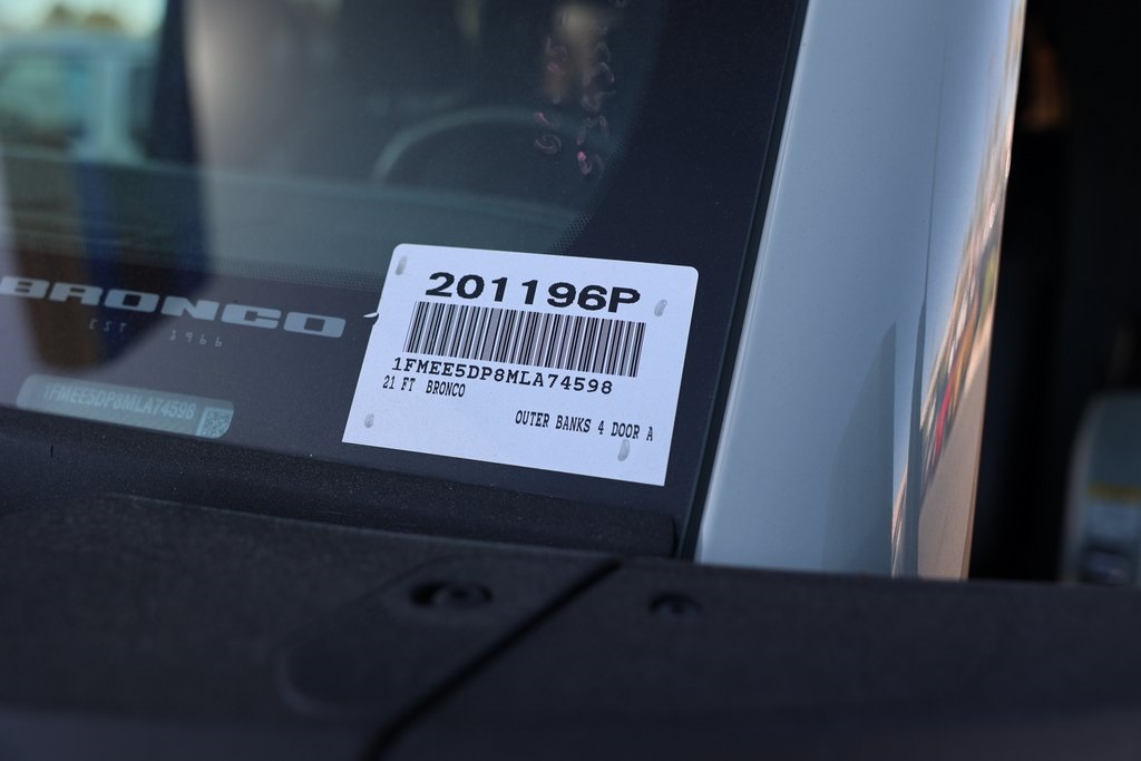 Priced below KBB Fair Purchase Price!FACTORY WARRANTY, NEW FILTERS, Bronco Outer Banks Advanced, 4D Sport Utility, 2.7L 6-Cylinder PDI Turbocharged DOHC, 10-Speed Automatic, 4WD, 12" LCD Capacitive Touchscreen w/Swipe Capability, 360-Degree Camera, 4.7 Final Drive Ratio, 6 Speakers, Active Cruise Control, Additional Sound Deadening, Auto-dimming Rear-View mirror, Compass, Equipment Group 313A High Package, Forward Sensing System, Heated Cloth Bucket Seats, High Clearance Fender Flares, High Clearance Suspension, Information on Demand Panel, Navigation system: Connected Navigation, Position-Sensitive Bilstein Shock Absorbers, Sasquatch Package, Security system, Sideview Mirrors, Wheels: 17" Black High Gloss-Painted Aluminum.CARFAX One-Owner.
