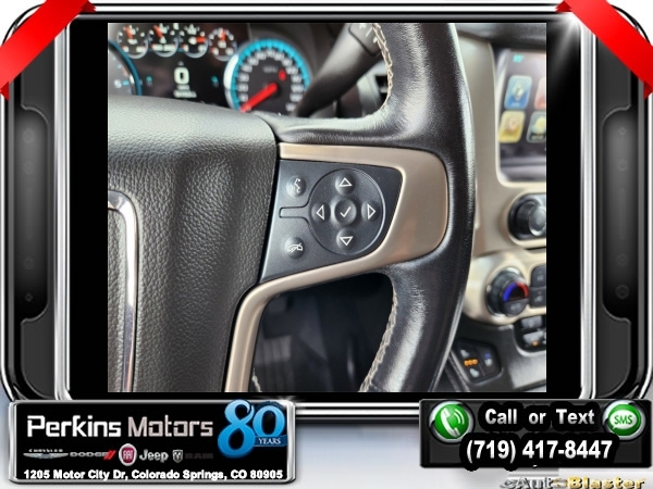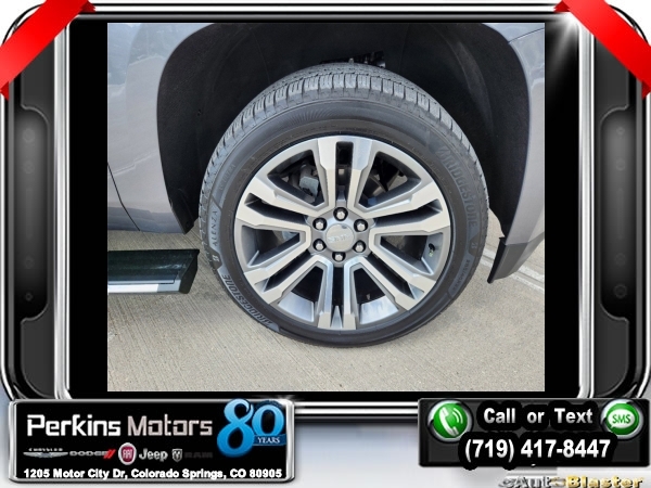 Satin Steel Metallic 4WD EcoTec3 6.2L V8 10-Speed Automatic with Overdrive<br><br>4WD, 10 Speakers, 4-Wheel Antilock Disc Brakes, 4-Wheel Disc & 4-Wheel VAC Power Antilock Brakes, 5 Auxiliary 12-volt Power Outlets, Adaptive suspension, Advanced Adaptive Cruise Control, Automatic temperature control, Black Assist Steps w/Chrome Strip, Bose Active Noise Cancellation, Bose Centerpoint Surround Sound Audio System, CD Player, Denali Ultimate Package, Enhanced Driver Alert Package, Enhanced Security Package, Forward Automatic Braking, Forward Collision Alert, Hands Free Power Programmable Rear Liftgate, Heads-Up Display, Heated Leather-Wrapped Steering Wheel, Inside Rear-View Auto-Dimming Mirror, Integrated Trailer Brake Controller, IntelliBeam Automatic High Beam On/Off, Lane Change Alert w/Side Blind Zone Alert, Lane Keep Assist w/Lane Departure Warning, License Plate Front Mounting Package, Low Speed Forward Automatic Braking, Magnetic Ride Control Suspension Package, Memory Package, Navigation System, Open Road Package, Passive Entry System, Power Release 2nd Row Bucket Seats, Power Tilt & Telescopic Steering Column, Power Tilt-Sliding Sunroof w/Express-Open/Close, Power-Adjustable Pedals For Accelerator & Brake, Preferred Equipment Group 5SA, Push Button Keyless Start, Pwr Retractable Assist Steps w/Perimeter Lighting, Radio: AM/FM/SiriusXM w/Navigation, Rear air conditioning, Rear Cross Traffic Alert, Rear Seat DVD Entertainment System, SiriusXM NavTraffic, SiriusXM Radio, Speed-sensing steering, Universal Home Remote, Wheels: 22 x 8.5 Bright Aluminum, Wireless Charging.<br><br><br>Clean CARFAX.<br><br>Check us out at www.perkinsmotors.com to see our specials! Since opening our doors in 1944, we’ve been proud to serve Colorado Springs, CO, and the surrounding areas of Pueblo, Castle Rock and Denver, CO. Throughout this time of being family owned for 80 years, we’ve maintained a firm commitment to our customers: to offer a wide selection of New Chrysler, Dodge, Fiat, Jeep, and Ram vehicles and quality pre-owned vehicles, and provide a quick, no-hassle car-buying process that ensures everyone drives off the lot satisfied with their purchase.<br><br><br>Advanced Adaptive Cruise Control (4-Wheel Disc & 4-Wheel VAC Power Antilock Brakes and Forward Automatic Braking), Denali Ultimate Package (Pwr Retractable Assist Steps w/Perimeter Lighting), Enhanced Driver Alert Package (Forward Collision Alert, IntelliBeam Automatic High Beam On/Off, Lane Keep Assist w/Lane Departure Warning, and Low Speed Forward Automatic Braking), Enhanced Security Package (Theft-Deterrent Alarm System, Vehicle Inclination Sensor, and Vehicle Interior Movement Sensor), License Plate Front Mounting Package, Magnetic Ride Control Suspension Package, Memory Package, Open Road Package (Power Tilt-Sliding Sunroof w/Express-Open/Close and Rear Seat Blu-Ray/DVD Entertainment System), Preferred Equipment Group 5SA (4-Wheel Antilock Disc Brakes, 5 Auxiliary 12-volt Power Outlets, Black Assist Steps w/Chrome Strip, Bose Active Noise Cancellation, Hands Free Power Programmable Rear Liftgate, Heated Leather-Wrapped Steering Wheel, Inside Rear-View Auto-Dimming Mirror, Integrated Trailer Brake Controller, Lane Change Alert w/Side Blind Zone Alert, Passive Entry System, Power Release 2nd Row Bucket Seats, Power Tilt & Telescopic Steering Column, Power-Adjustable Pedals For Accelerator & Brake, Push Button Keyless Start, Rear Cross Traffic Alert, Universal Home Remote, Wireless Charging, and Remote Keyless Entry), 4WD, 10 Speakers, Adaptive suspension, Automatic temperature control, Bose Centerpoint Surround Sound Audio System, CD Player, Heads-Up Display, Navigation System, Radio: AM/FM/SiriusXM w/Navigation, Rear air conditioning, Rear Seat DVD Entertainment System, SiriusXM NavTraffic, SiriusXM Radio, Speed-sensing steering, Wheels: 22 x 8.5 Bright Aluminum, 1st & 2nd Rows All-Weather Floor Liner (LPO), 3.23 Rear Axle Ratio, 3rd row seats: split-bench, 4-Wheel D