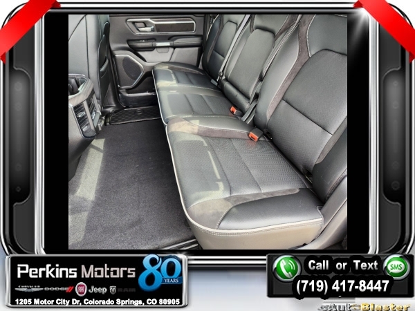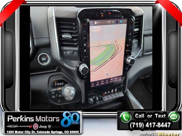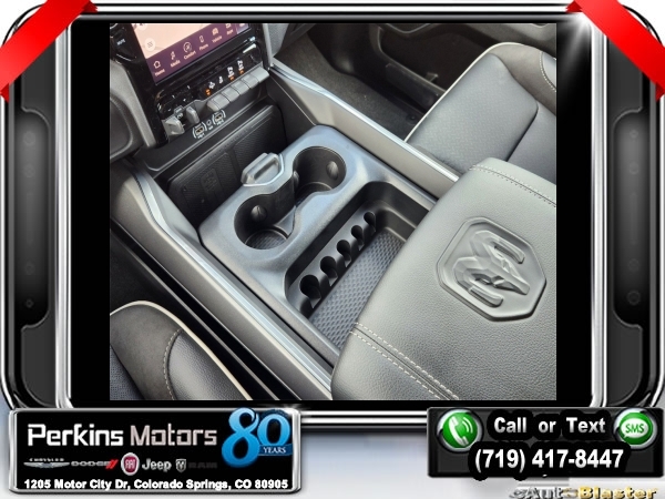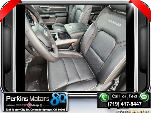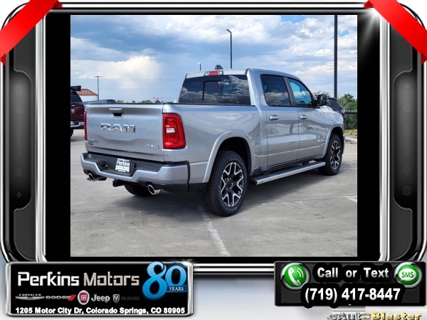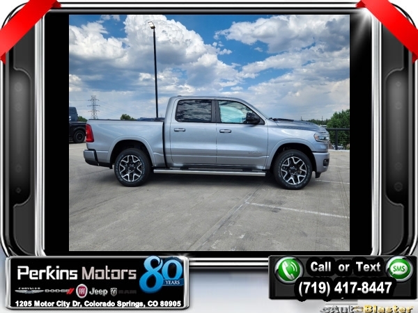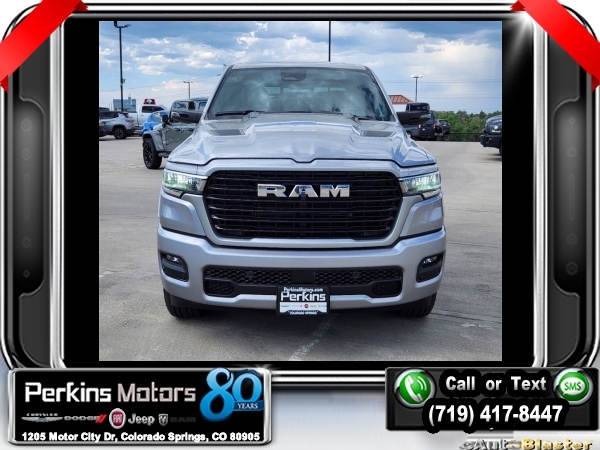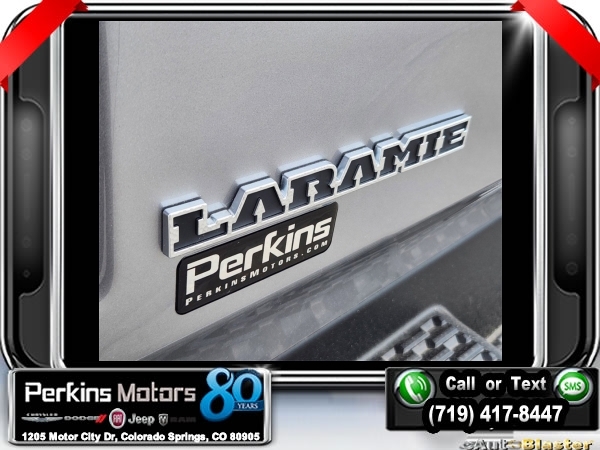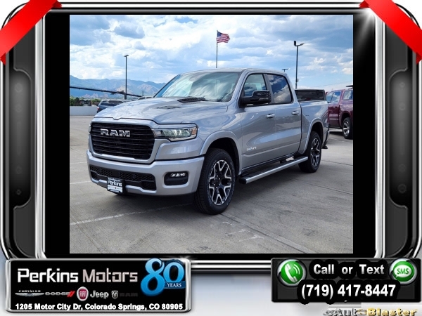 Factory MSRP: $75,735 $12,000 off MSRP! Billet Silver Metallic Clearcoat 2025 Ram 1500 Laramie 4WD 8-Speed Automatic 3.0L I6<br><br>Check us out at www.perkinsmotors.com to see our specials! Since opening our doors in 1944, we’ve been proud to serve Colorado Springs, CO, and the surrounding areas of Pueblo, Castle Rock and Denver, CO. Throughout this time of being family owned for 80 years, we’ve maintained a firm commitment to our customers: to offer a wide selection of New Chrysler, Dodge, Fiat, Jeep, and Ram vehicles and quality pre-owned vehicles, and provide a quick, no-hassle car-buying process that ensures everyone drives off the lot satisfied with their purchase.<br><br>Bed Utility Group (MOPAR 4 Adjustable Cargo Tie-Down Hooks and MOPAR Spray In Bedliner), Laramie Level 1 Equipment Group (Rain Sensitive Windshield Wipers and Remote Tailgate Release), Quick Order Package 21H Laramie, Sport Appearance Package (3 Rear Seat Head Restraints, 4 Way Front Headrests, Accent Color Premium Power Mirrors, Auto Power-Folding Mirrors, Auto-Dimming Exterior Driver Mirror, Black Interior Accents, Black Painted Exterior Mirrors Caps, Body Color Front Bumper, Body Color Rear Bumper w/Step Pads, Bridgestone Brand Tires, Bucket Seats, Convex Wide-Angle Exterior Mirror Insert, Driver Seat Memory, Exterior Mirrors Courtesy Lamps, Exterior Mirrors w/Heating Element, Exterior Mirrors w/Memory, Exterior Mirrors w/Supplemental Signals, Front Seat Back Map Pockets, Full Length Upgraded Floor Console, Grille Surround 3 Body Color Tex 2 Black, Heated Front Seats, Heated Second Row Seats, Heated Steering Wheel, Leather Trimmed Bucket Seats, Power 2-Way Driver Lumbar Adjust, Power 2-Way Passenger Lumbar Adjust, Power Adjust 8-Way Driver Seat, Power Adjust 8-Way Front Passenger Seat, RAM Grille Badge - Chrome, Rear 60/40 Folding Split Recline Seat, Sport Decal, Sport Performance Hood, and Ventilated Front Seats), 10 Speakers, 3.55 Rear Axle Ratio, 3.92 Rear Axle Ratio, 33 Gallon Fuel Tank, 4-Corner Air Suspension, 4-Wheel Disc Brakes, 4G LTE Wi-Fi Hot Spot, ABS brakes, Air Conditioning, Alloy wheels, AM/FM radio: SiriusXM with 360L, Anti-Spin Differential Rear Axle, Apple CarPlay, Apple CarPlay/Android Auto, Audio memory, Auto High-beam Headlights, Auto-dimming door mirrors, Auto-dimming Rear-View mirror, Automatic temperature control, Brake assist, Bumpers: chrome, Chrome Exterior Mirrors, Compass, Connected Travel & Traffic Services, Connectivity - US/Canada, Cruise Control, Delay-off headlights, Dome Dual LED Reading Lamp, Driver door bin, Driver vanity mirror, Dual front impact airbags, Dual front side impact airbags, Dual-Pane Panoramic Sunroof, Electronic Stability Control, Front anti-roll bar, Front Center Armrest w/Storage, Front dual zone A/C, Front fog lights, Front License Plate Bracket, Front reading lights, Front wheel independent suspension, Fully automatic headlights, Garage door transmitter, Google Android Auto, GPS Antenna Input, GPS Navigation, HD Radio, Heated door mirrors, Heated front seats, Heated rear seats, Heated steering wheel, Illuminated entry, Integrated Voice Command w/Bluetooth, Leather steering wheel, Leather Trim 40/20/40 Bench Seat, LED Dome/Reading Lamp, Low tire pressure warning, Manufacturer's Statement of Origin, Memory seat, MOPAR Front & Rear Rubber Floor Mats, Navigation System, Occupant sensing airbag, Outside temperature display, Overhead airbag, Overhead console, Panic alarm, ParkView Rear Back-Up Camera, Passenger door bin, Passenger vanity mirror, Power door mirrors, Power driver seat, Power passenger seat, Power steering, Power windows, Radio data system, Radio: Uconnect 5 Nav w/12.0 Display, Rear anti-roll bar, Rear reading lights, Rear seat center armrest, Rear step bumper, Remote ke Sale price includes all manufacture's incentives and dealer discounts. Sale price not available on lease or compatible with special APR. $3000 - 2025 National Retail Consumer Cash. Exp. 09/03/2024 $5,000 - Exp.