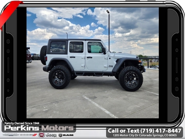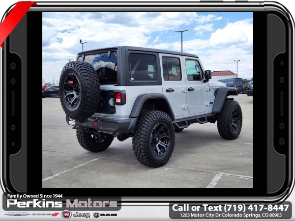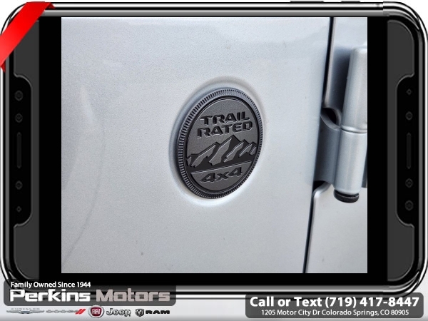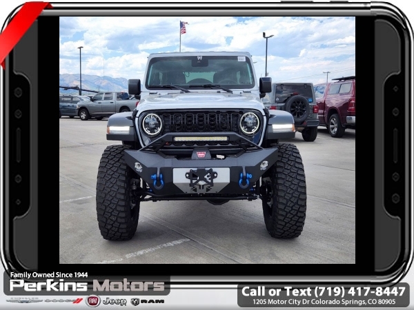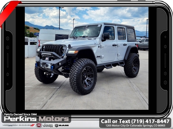 Factory MSRP: $54,070 Silver Zynith Clearcoat 2024 Jeep Wrangler Willys 4WD 8-Speed Automatic 2.0L I4 DOHC<br>Rocky Ridge Lift.<br>Check us out at www.perkinsmotors.com to see our specials! Since opening our doors in 1944, we’ve been proud to serve Colorado Springs, CO, and the surrounding areas of Pueblo, Castle Rock and Denver, CO. Throughout this time of being family owned for 80 years, we’ve maintained a firm commitment to our customers: to offer a wide selection of New Chrysler, Dodge, Fiat, Jeep, and Ram vehicles and quality pre-owned vehicles, and provide a quick, no-hassle car-buying process that ensures everyone drives off the lot satisfied with their purchase.<br><br>Convenience Group (Heated Front Seats), Quick Order Package 22W Willys (240 Amp Alternator, 4.10 Rear Axle Ratio, Injection Molded Black Rear Bumper, Mold In Color Bumper w/Gloss Black, Wheels: 17 x 7.5 Painted Black, Willy's Suspension, and Willys), Technology Group (Alpine Premium Audio System), 110 MPH Vehicle Max Speed Calibration, 3.45 Overall Top Gear Ratio, 4-Wheel Disc Brakes, 8 Speakers, ABS brakes, Air Conditioning, AM/FM radio, Apple CarPlay/Android Auto, Aux Battery, Black 3-Piece Hard Top, Brake assist, Cloth Low-Back Bucket Seats, Compass, Cruise Control, Delay-off headlights, Driver door bin, Driver vanity mirror, Dual front impact airbags, Dual front side impact airbags, Electronic Stability Control, Front anti-roll bar, Front Bucket Seats, Front Center Armrest w/Storage, Front fog lights, Front reading lights, Integrated roll-over protection, Low tire pressure warning, Non-Lock Fuel Cap w/o Discriminator, Normal Duty Suspension, Occupant sensing airbag, Outside temperature display, Overhead airbag, ParkView Rear Back-Up Camera, Passenger door bin, Passenger vanity mirror, Power steering, Radio data system, Radio: Uconnect 5 w/12.3 Display, Rear anti-roll bar, Rear reading lights, Split folding rear seat, Steering wheel mounted audio controls, Stop-Start Dual Battery System, Tachometer, Telescoping steering wheel, Tilt steering wheel, Traction control, Trip computer, Variably intermittent wipers, and Wheels: 17 x 7.5 Black Steel Styled. Sale price includes all manufacture's incentives and dealer discounts. Sale price not available on lease or compatible with special APR. $2250 - 2024 Bonus Cash . Exp. 06/30/2025 Price includes $24,479 in dealer added accessories.
