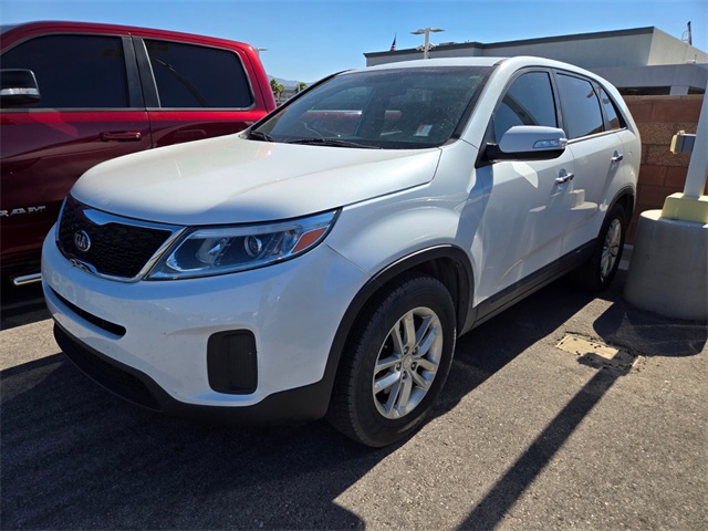 Recent Arrival!Priced below KBB Fair Purchase Price!Odometer is 46154 miles below market average!20/27 City/Highway MPGSnow White Pearl 2015 Kia Sorento LX FWD 6-Speed Automatic with Sportmatic 2.4L I4 DGI DOHC Dual CVVTIf you don't drive here, you can't save here!Awards: * JD Power Initial Quality Study (IQS) * 2015 KBB.com 10 Best SUVs Under $25,000Price may not include recon fee. 3.648 Axle Ratio, 4-Wheel Disc Brakes, 6 Speakers, ABS brakes, Air Conditioning, Alloy wheels, AM/FM radio: SiriusXM, AM/FM/CD/MP3 Audio System, Anti-whiplash front head restraints, Brake assist, Bumpers: body-color, Carpet Floor Mats (5 Seat), CD player, Delay-off headlights, Driver door bin, Driver vanity mirror, Dual front impact airbags, Dual front side impact airbags, Electronic Stability Control, Four wheel independent suspension, Front anti-roll bar, Front Bucket Seats, Front Center Armrest, Front reading lights, Heated door mirrors, Illuminated entry, Low tire pressure warning, Occupant sensing airbag, Overhead airbag, Overhead console, Panic alarm, Passenger door bin, Passenger vanity mirror, Power door mirrors, Power steering, Power windows, Rear anti-roll bar, Rear seat center armrest, Rear window defroster, Rear window wiper, Remote keyless entry, Speed control, Speed-sensing steering, Split folding rear seat, Steering wheel mounted audio controls, Tachometer, Telescoping steering wheel, Tilt steering wheel, Traction control, Tricot Fabric Seat Trim, Trip computer, Turn signal indicator mirrors, Variably intermittent wipers, and Wheels: 17" x 7.0 Silver Painted Alloy.