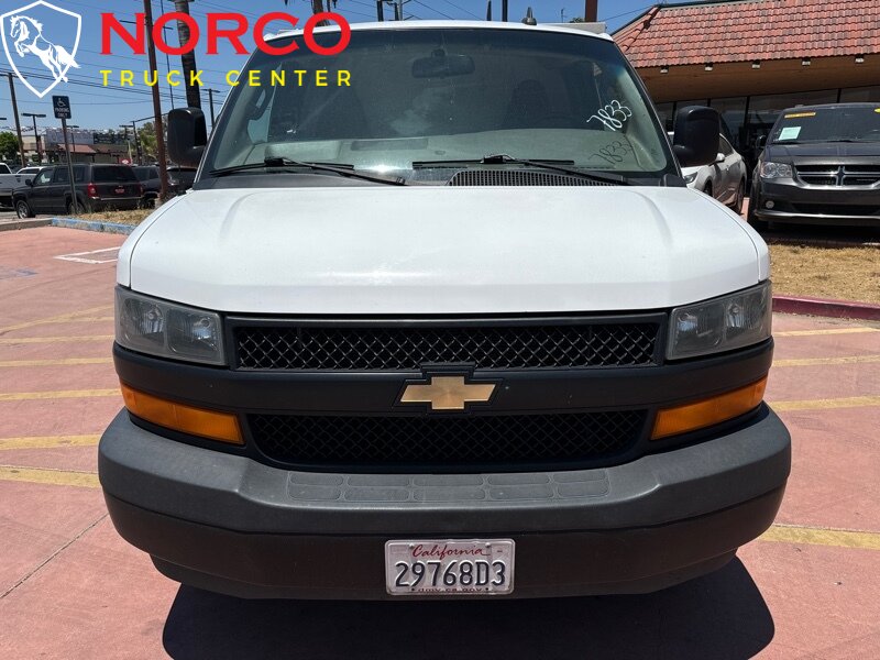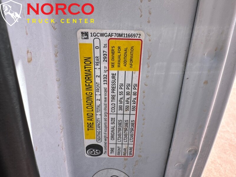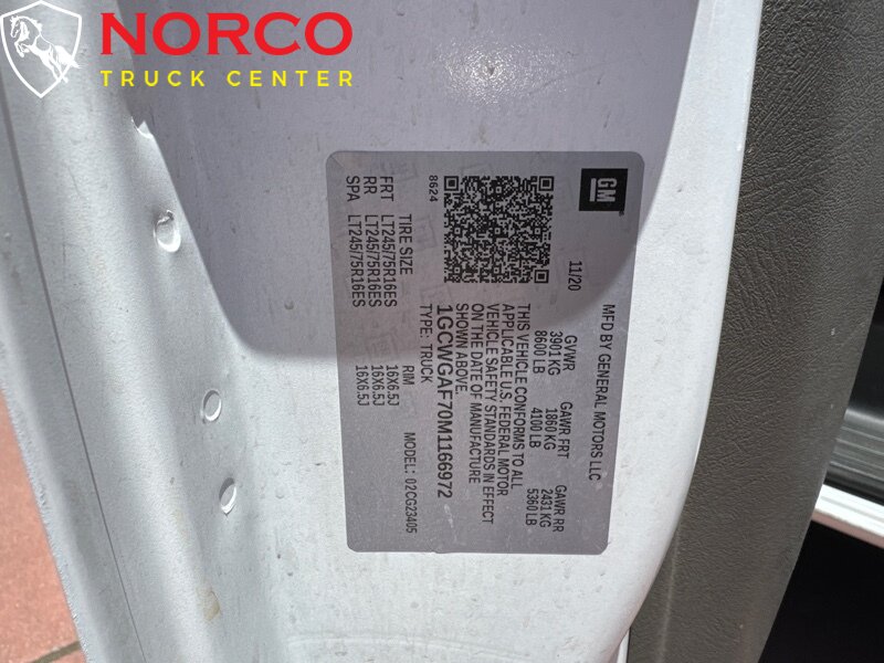 The 2021 Chevrolet Express 2500 G2500 Cargo is a powerful and reliable vehicle that is designed to meet the needs of businesses and individuals who require a spacious and versatile cargo van. It comes equipped with a 6.6L V8 engine that delivers an impressive 401 horsepower and 464 foot-pounds of torque, providing ample power to handle heavy loads and demanding tasks. As for its factory default features, the 2021 Chevrolet Express 2500 G2500 Cargo is packed with useful and practical amenities that make driving and working with this van a breeze. These features include a 4-wheel anti-lock braking system, StabiliTrak electronic stability control, and a tire pressure monitoring system, which ensures the safety and stability of the vehicle at all times. Inside the cabin, the 2021 Chevrolet Express 2500 G2500 Cargo offers a comfortable and spacious interior that is designed to accommodate the needs of drivers and passengers alike. It comes with air conditioning, power windows and door locks, and a 120-volt power outlet, providing a comfortable and convenient environment for work or travel. Other notable features of the 2021 Chevrolet Express 2500 G2500 Cargo include a 6-speed automatic transmission with overdrive, a heavy-duty locking rear differential, and a 31-gallon fuel tank, which ensures that this van is ready for any job, no matter how demanding it may be. Overall, the 2021 Chevrolet Express 2500 -- INSTALLED FEATURES: Front air conditioning, Front air conditioning zones: single, Airbag deactivation: passenger switch, Front airbags: dual, Side airbags: front, Side curtain airbags: front, Antenna type: mast, Auxiliary audio input: jack, Radio: AM/FM, Total speakers: 2, ABS: 4-wheel, Electronic brakeforce distribution, Front brake diameter: 12.8, Front brake type: ventilated disc, Front brake width: 1.5, Power brakes, Rear brake diameter: 13.0, Rear brake type: ventilated disc, Rear brake width: 1.14, Armrests: front center, Floor material: rubber/vinyl, Steering wheel trim: urethane, Assist handle: front, Cargo area light, Cupholders: front / 3, Power outlet(s): 115V front / 12V front, Power steering, Reading lights: front, Storage: cargo tie-down anchors and hooks / door pockets / in dash, Sun visors, Axle ratio: 3.42, Alternator: 105 amps, Auxiliary oil cooler, Battery: maintenance-free, Battery rating: 600 CCA, Battery saver, Bumper detail: rear step, Door handle color: black, Exhaust tip color: stainless steel, Front bumper color: black, Grille color: black, License plate bracket: front, Mirror color: black, Rear bumper color: black, Rear trunk/liftgate: barn, Side door type: passenger-side hinged swing-out, Window trim: black, Clock, Digital odometer, Fuel economy display: MPG / range, Gauge: oil pressure / tachometer, Multi-function display, Powertrain hour meter, Trip odometer, Warnings and reminders: low fuel level / maintenance due, Daytime running lights, Headlights: auto on/off / halogen, Side mirror adjustments: manual / manual folding, OEM roof height: undefined, Camera system: rearview, Child seat anchors, Rearview monitor: in mirror, Front seatbelts: 3-point, Seatbelt pretensioners: front, Driver seat manual adjustments: reclining / 4, Front headrests: integrated / 2, Front seat type: bucket, Passenger seat manual adjustments: reclining / 4, Upholstery: vinyl, Anti-theft system: alarm / vehicle immobilizer, Power door locks: anti-lockout, Hill holder control, Stability control, Traction control, Steering ratio: 17.2, Turns lock-to-lock: 3.0, Front shock type: gas, Front spring type: coil, Front stabilizer bar: diameter 35 mm, Front suspension classification: independent, Front suspension type: short and long arm, Rear shock type: gas, Rear spring type: leaf, Rear suspension classification: solid live axle, Rear suspension type: multi-leaf, Driver assistance app: roadside assistance, Satellite communications: OnStar / voice guided directions, Smart device app compatibility: myChevrolet with Connected Access, Smart device app function: maintenance status, Wi-Fi: hotspot, Spare tire mount location: underbody, Spare tire size: full-size matching, Spare wheel type: steel, Tire Pressure Monitoring System, Tire type: all season, Wheel covers: partial, Wheels: steel, Auxiliary transmission fluid cooler, Tow/Haul mode, Front wipers: intermittent, Power windows, Solar-tinted glass: front / rear, Window defogger: side