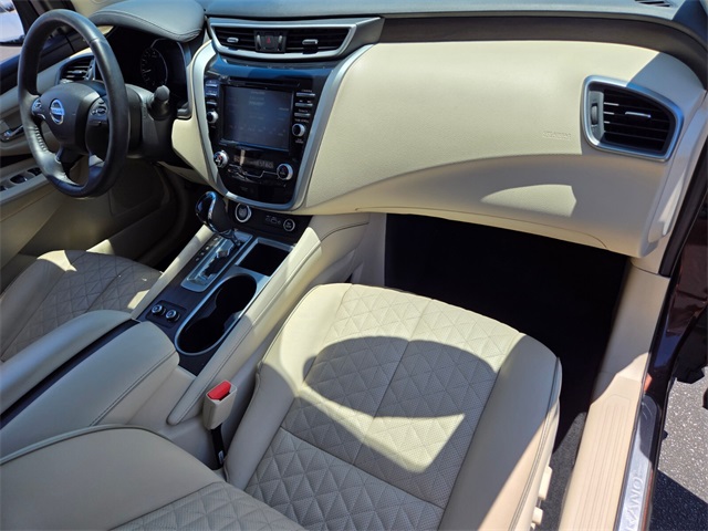 Priced below KBB Fair Purchase Price!Odometer is 8298 miles below market average!20/28 City/Highway MPGMocha Almond Pearl 2019 Nissan Murano Platinum AWD CVT with Xtronic 3.5L V6 DOHC 24V CVT with Xtronic, AWD.If you don't drive here, you can't save here!Price may not include recon fee. CVT with Xtronic, AWD, 4-Wheel Disc Brakes, 4.667 Axle Ratio, ABS brakes, Air Conditioning, Alloy wheels, AM/FM radio: SiriusXM, AM/FM/CD/MP3/WMA Audio System, Automatic temperature control, Brake assist, Bumpers: body-color, Carpeted Floor Mats & Carpeted Cargo Mat, CD player, Child-Seat-Sensing Airbag, Delay-off headlights, Driver door bin, Driver vanity mirror, Dual front impact airbags, Dual front side impact airbags, Electronic Stability Control, Four wheel independent suspension, Front anti-roll bar, Front Bucket Seats, Front Center Armrest, Front dual zone A/C, Front reading lights, Fully automatic headlights, Illuminated entry, Knee airbag, Low tire pressure warning, NissanConnect featuring Apple CarPlay and Android Auto, Occupant sensing airbag, Outside temperature display, Overhead airbag, Overhead console, Panic alarm, Passenger door bin, Passenger vanity mirror, Power door mirrors, Power steering, Power windows, Radio data system, Rear anti-roll bar, Rear reading lights, Rear seat center armrest, Rear side impact airbag, Rear window defroster, Rear window wiper, Remote keyless entry, Security system, Speed control, Speed-sensing steering, Splash Guards, Split folding rear seat, Spoiler, Steering wheel mounted audio controls, Tachometer, Telescoping steering wheel, Tilt steering wheel, Traction control, Trip computer, Turn signal indicator mirrors, Variably intermittent wipers, and Wheels: 20" Satin Black Alloy.