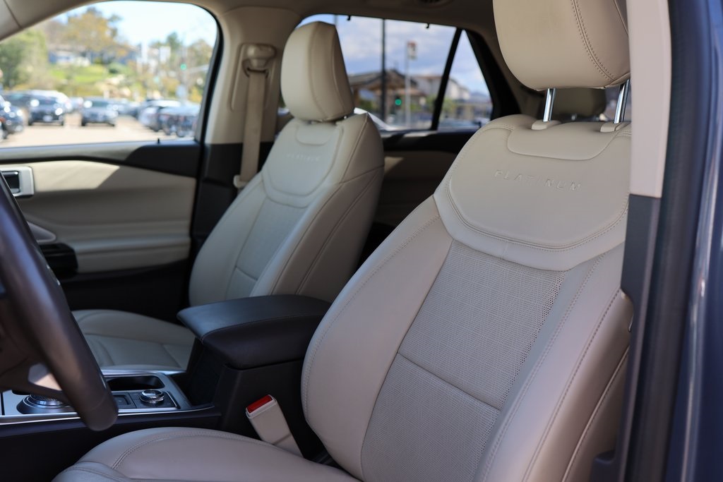 LIFE TIME WARRANTY, ***NON-SMOKER***, ***ONE OWNER CARFAX***, ***CLEAN CARFAX***, ***REMAINDER OF FACTORY WARRANTY***, ***LEATHER AND LOADED***, Explorer Platinum, 4D Sport Utility, 3.0L EcoBoost V6, 10-Speed Automatic, 4WD, Infinite Blue Metallic Tinted Clearcoat, Light Sandstone w/Leather Htd/Ventilated Sport Captain's Chairs or Leather Htd/Ventilated Sport Captain's Chairs, 10.1" LCD Capacitive Portrait Touchscreen, 2 Additional Speakers, 3rd row seats: bench, Active Cruise Control, Air Conditioning, Auto-dimming door mirrors, Equipment Group 601A, Exterior Parking Camera Rear, FordPass Connect, Fully automatic headlights, Garage door transmitter: HomeLink, Heated front seats, Heated rear seats, Leather Htd/Ventilated Sport Captain's Chairs, Memory seat, Navigation System, Power driver seat, Power Liftgate, Premium Technology Package, Radio: B&O Sound System by Bang & Olufsen, Rear air conditioning, Security system, Steering wheel mounted audio controls, SYNC 3 Communications & Entertainment System, SYNC 3/Apple CarPlay/Android Auto, Twin Panel Moonroof, Ventilated front seats, Voice-Activated Touchscreen Navigation System, Wheels: 21" Bright Machined-Face Aluminum.Clean CARFAX.CARFAX One-Owner.