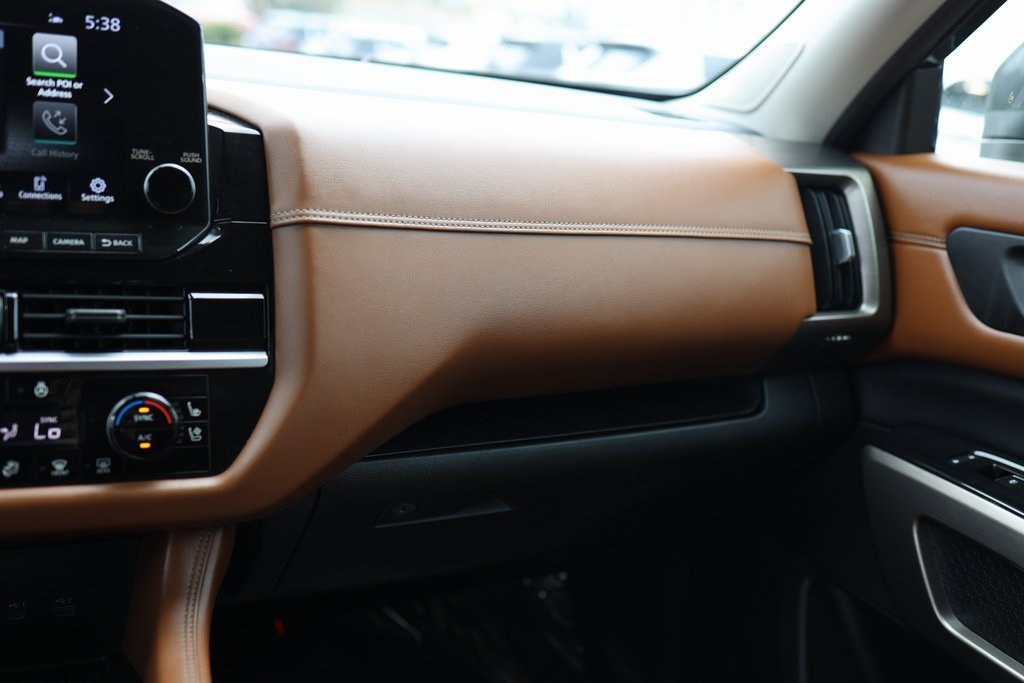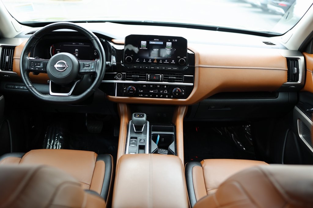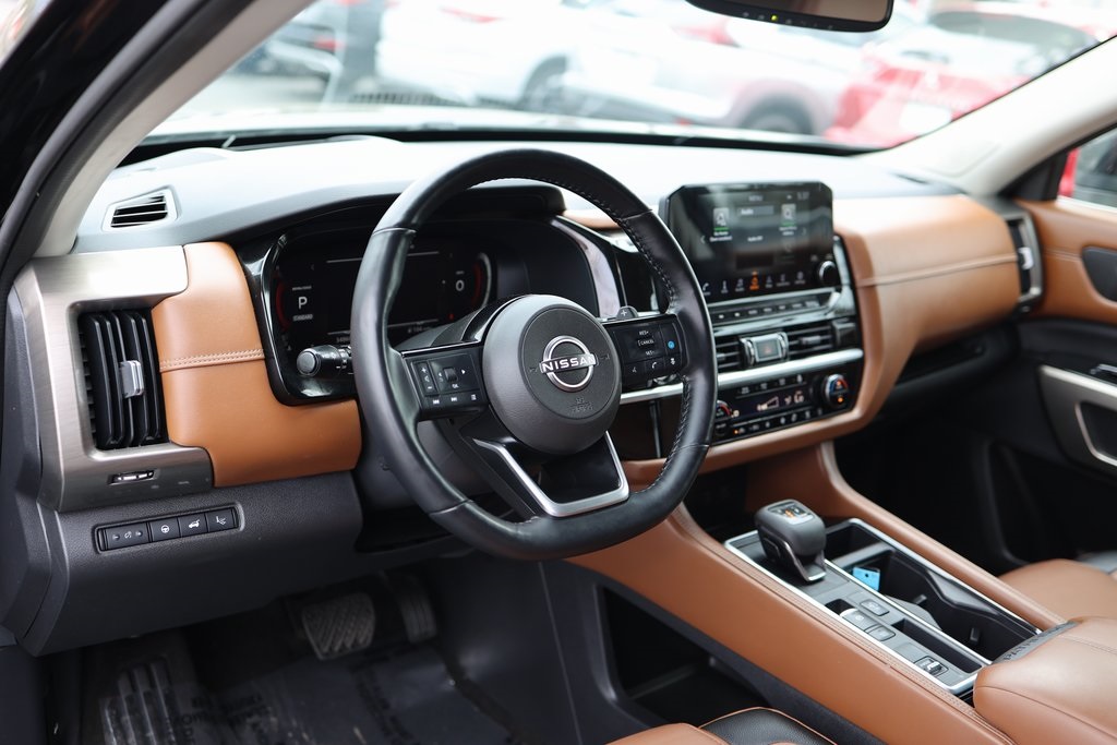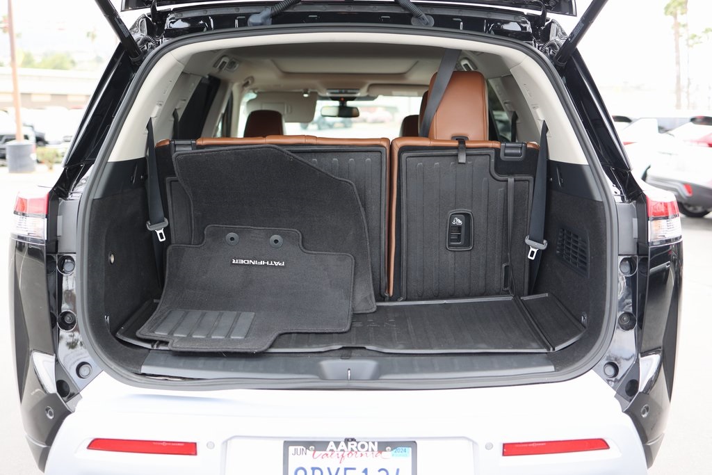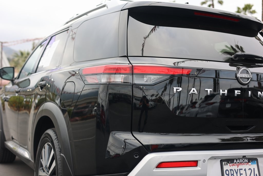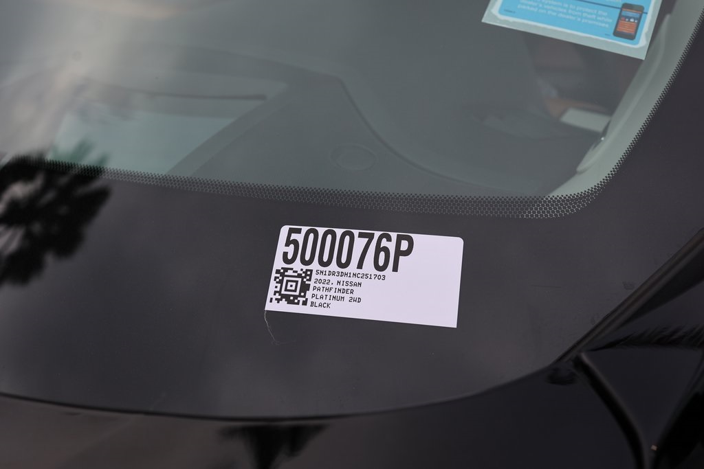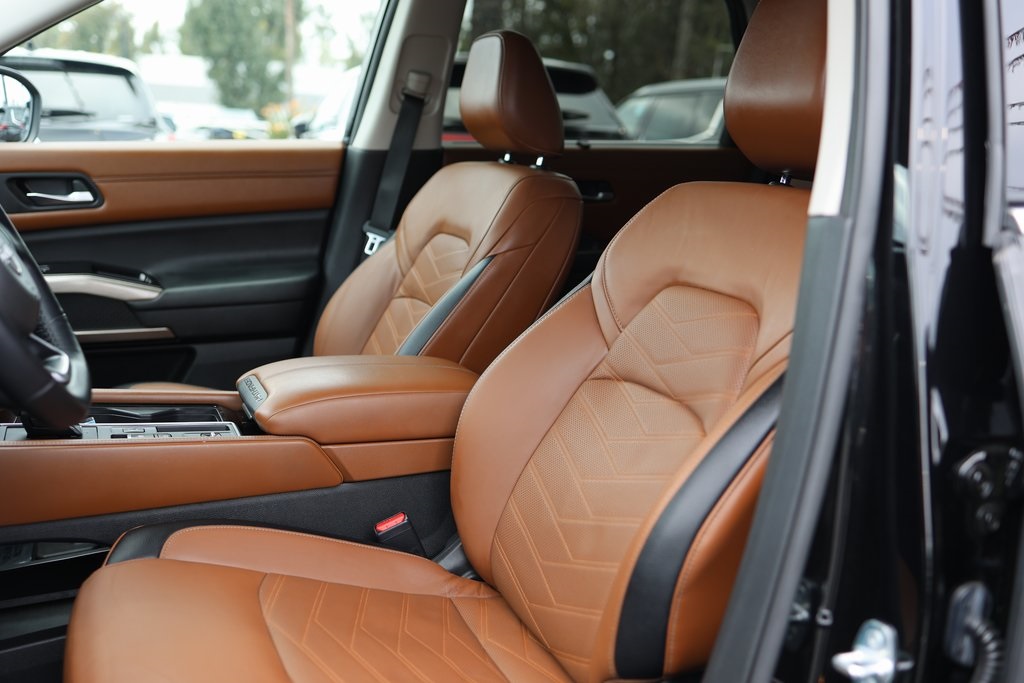 Priced below KBB Fair Purchase Price!NEW FILTERS, Pathfinder Platinum, 4D Sport Utility, V6, 9-Speed Automatic, FWD, Super Black, Chestnut Leather, 13 Speakers, 3rd row seats: bench, Active Cruise Control, AM/FM radio: SiriusXM, Auto tilt-away steering wheel, Auto-dimming Rear-View mirror, Bose Premium Audio System, Cargo Area Protector, Cargo Net, Cargo Package, Climate Controlled Front Bucket Seats, Delay-off headlights, First Aid Kit, Four wheel independent suspension, Front dual zone A/C, Fully automatic headlights, Heads-Up Display, Heated door mirrors, Heated front seats, Heated rear seats, Heated steering wheel, Memory seat, Navigation system: NissanConnect Navigation, Power driver seat, Power Liftgate, Power moonroof, Power passenger seat, Reclining 3rd row seat, Security system, Speed-sensing steering, Steering wheel mounted audio controls, Wheels: 20" Alloy w/Unique Finish.Clean CARFAX.CARFAX One-Owner.