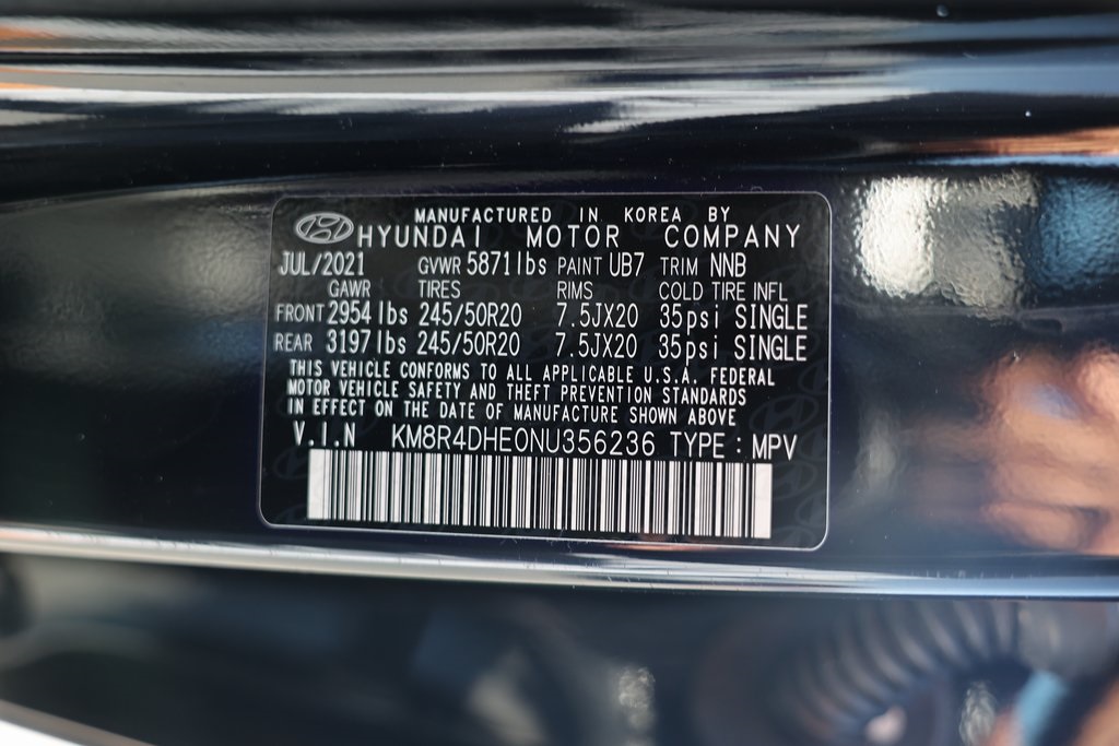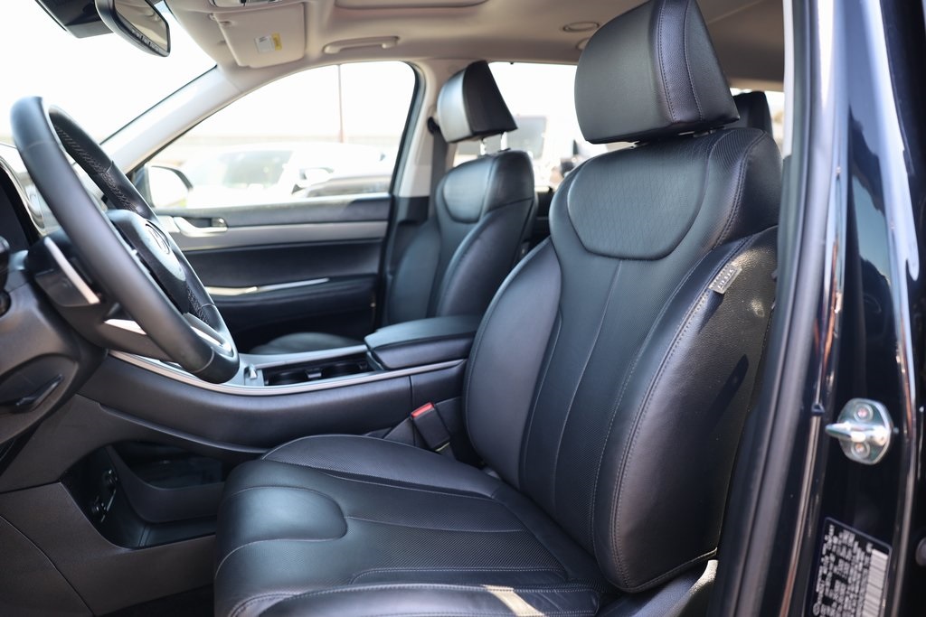 Palisade SEL, 4D Sport Utility, V6, 8-Speed Automatic with SHIFTRONIC, AWD, Moonlight Cloud, Black Cloth, 115-Volt AC Power Outlet, 3rd row seats: split-bench, 3rd Row USB Outlets, 7" High-Resolution Cluster Display, 8-Way Power Passenger Seat, Acoustic Front Side Glass, Alloy wheels, Auto Leveling Rear Suspension, Convenience Package P2, Driver's Seat Integrated Memory System, Front dual zone A/C, Front Parking Sensors, Hands-Free Smart Liftgate, Heated 2nd Row Seats, Heated Steering Wheel, Highway Drive Assist I, Knee airbag, Leather Seat Trim, LED Taillights, Low tire pressure warning, Power 3rd Row Seating, Premium Dashboard & Door Armrests, Premium Package, Premium Package P3, Radio: AM/FM/MP3 Premium Audio System, Rear Side Window Sunshades, Roof rack: rails only, Ultrasonic Rear Occupant Alert, Wheels: 20" x 7.5J Split 5-Spoke Machined Alloy, Wireless Phone Charger.