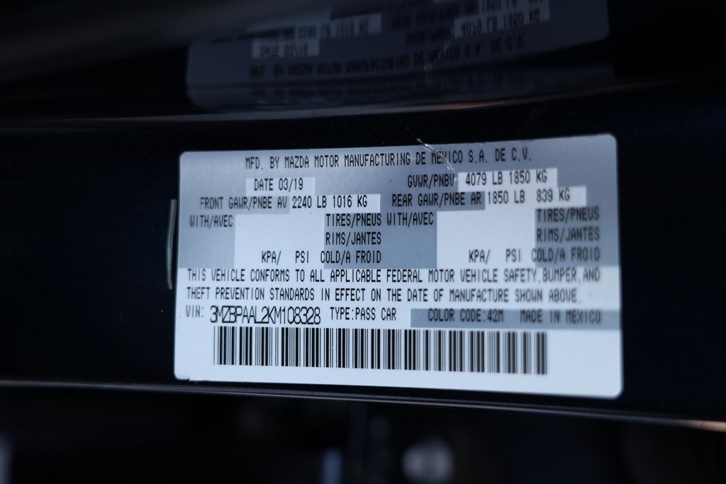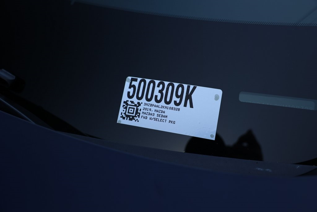 Priced below KBB Fair Purchase Price!Mazda3 Select, 4D Sedan, I4, 6-Speed Automatic, FWD, Deep Crystal Blue Mica, Black Artificial Leather, Alloy wheels, AppLink/Apple CarPlay and Android Auto, Blind Spot Monitoring w/Rear Cross Traffic Alert, Compass, Exterior Parking Camera Rear, Front dual zone A/C, Front Lower Bumper Black Gloss Decoration, Knee airbag, Lane Departure Warning System, Lane Keep Assist, Leatherette Seat Trim, Low tire pressure warning, Remote keyless entry.26/35 City/Highway MPGAwards: * 2019 KBB.com Brand Image Awards