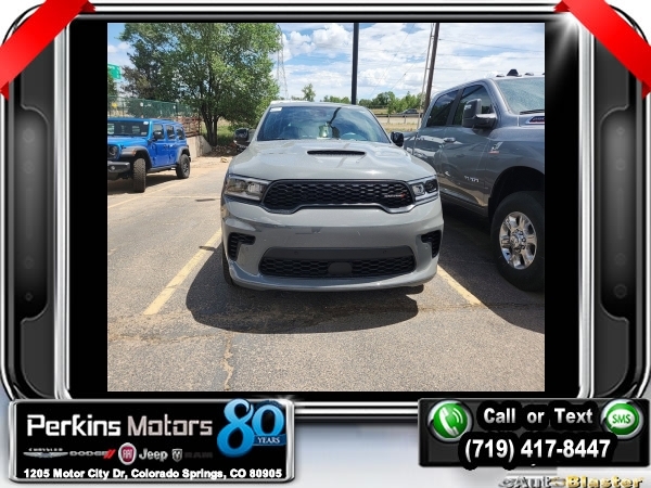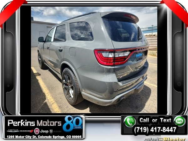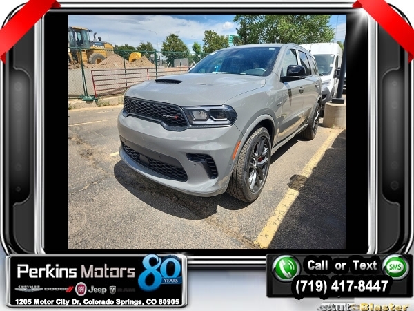 New Price! Factory MSRP: $65,745 $5,600 off MSRP! Destroyer Gray Clearcoat 2024 Dodge Durango R/T AWD 8-Speed Automatic HEMI 5.7L V8 Multi Displacement VVT<br>AWD, ABS brakes, Alloy wheels, Compass, Electronic Stability Control, Emergency communication system, Front dual zone A/C, Heated door mirrors, Heated front seats, Illuminated entry, Low tire pressure warning, Navigation System, ParkView Rear Back-Up Camera, Power Liftgate, Remote keyless entry, Traction control.<br>Check us out at www.perkinsmotors.com to see our specials! Since opening our doors in 1944, we’ve been proud to serve Colorado Springs, CO, and the surrounding areas of Pueblo, Castle Rock and Denver, CO. Throughout this time of being family owned for 80 years, we’ve maintained a firm commitment to our customers: to offer a wide selection of New Chrysler, Dodge, Fiat, Jeep, and Ram vehicles and quality pre-owned vehicles, and provide a quick, no-hassle car-buying process that ensures everyone drives off the lot satisfied with their purchase.<br><br>AWD, ABS brakes, Alloy wheels, Compass, Electronic Stability Control, Emergency communication system, Front dual zone A/C, Heated door mirrors, Heated front seats, Illuminated entry, Low tire pressure warning, Navigation System, ParkView Rear Back-Up Camera, Power Liftgate, Remote keyless entry, Traction control, 3.09 Rear Axle Ratio, 3rd row seats: split-bench, 4-Wheel Disc Brakes, 9 Speakers, Air Conditioning, AM/FM radio: SiriusXM w/360L, Anti-whiplash front head restraints, Apple CarPlay/Android Auto, Auto High-beam Headlights, Auto-dimming Rear-View mirror, Auto-leveling suspension, Automatic temperature control, Brake assist, Bumpers: body-color, Cloth Bucket Seats w/Shift Insert, Cruise Control, Delay-off headlights, Driver door bin, Driver vanity mirror, Dual front impact airbags, Dual front side impact airbags, Exterior Mirrors w/Heating Element, Four wheel independent suspension, Front anti-roll bar, Front Bucket Seats, Front Center Armrest w/Storage, Front reading lights, Fully automatic headlights, Garage door transmitter, Gloss Black Exterior Mirrors, Heated steering wheel, Knee airbag, Leather steering wheel, Navigation system: TomTom, Occupant sensing airbag, Outside temperature display, Overhead airbag, Overhead console, Panic alarm, Passenger door bin, Passenger vanity mirror, Power door mirrors, Power driver seat, Power steering, Power windows, Radio data system, Radio: Uconnect 5 Nav w/10.1 Display, Rain sensing wipers, Rear air conditioning, Rear anti-roll bar, Rear Load Leveling Suspension, Rear reading lights, Rear seat center armrest, Rear window defroster, Rear window wiper, Red Accent Stitching, Security system, Speed-sensing steering, Speed-Sensitive Wipers, Split folding rear seat, Spoiler, Sport steering wheel, Steering wheel mounted audio controls, Tachometer, Telescoping steering wheel, Tilt steering wheel, Trip computer, Variably intermittent wipers, Voltmeter, and Wheels: 20 x 8.0 Fine Silver. Sale price includes all manufacture's incentives and dealer discounts. Sale price not available on lease or compatible with special APR. $3600 - 2024 National Power Dollars Bonus Cash. Exp. 07/01/2024