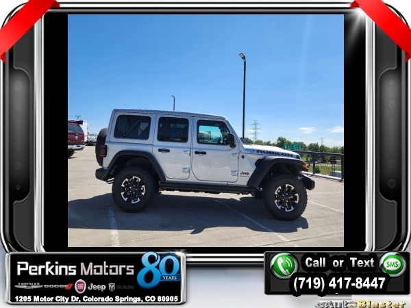 Factory MSRP: $70,320 $7,000 off MSRP! Silver Zynith Clearcoat 2024 Jeep Wrangler Rubicon 4WD 8-Speed Automatic 3.6L V6 24V VVT<br>ABS brakes, Alloy wheels, Compass, Electronic Stability Control, Front dual zone A/C, Heated door mirrors, Illuminated entry, Low tire pressure warning, ParkView Rear Back-Up Camera, Remote keyless entry, Traction control.<br>Check us out at www.perkinsmotors.com to see our specials! Since opening our doors in 1944, we’ve been proud to serve Colorado Springs, CO, and the surrounding areas of Pueblo, Castle Rock and Denver, CO. Throughout this time of being family owned for 80 years, we’ve maintained a firm commitment to our customers: to offer a wide selection of New Chrysler, Dodge, Fiat, Jeep, and Ram vehicles and quality pre-owned vehicles, and provide a quick, no-hassle car-buying process that ensures everyone drives off the lot satisfied with their purchase.<br><br>ABS brakes, Alloy wheels, Compass, Electronic Stability Control, Front dual zone A/C, Heated door mirrors, Illuminated entry, Low tire pressure warning, ParkView Rear Back-Up Camera, Remote keyless entry, Traction control, 12.3 Touchscreen Display, 4-Wheel Disc Brakes, 4.10 Rear Axle Ratio, 8 Speakers, 97 MPH Vehicle Max Speed Calibration, Air Conditioning, AM/FM radio: SiriusXM, Apple CarPlay, Apple CarPlay/Android Auto, Automatic temperature control, Aux Battery, Brake assist, Cloth Low-Back Bucket Seats, Connectivity - US/Canada, Cruise Control, Delay-off headlights, Disassociated Touchscreen Display, Driver door bin, Driver vanity mirror, Dual front impact airbags, Dual front side impact airbags, Front anti-roll bar, Front Bucket Seats, Front Center Armrest w/Storage, Front fog lights, Front reading lights, Fully automatic headlights, Google Android Auto, Integrated Center Stack Radio, Integrated roll-over protection, Integrated Voice Command w/Bluetooth, Non-Lock Fuel Cap w/o Discriminator, Occupant sensing airbag, Outside temperature display, Overhead airbag, Panic alarm, Passenger door bin, Passenger vanity mirror, Performance Suspension, Power door mirrors, Power steering, Power windows, Radio data system, Radio: Uconnect 5 w/12.3 Display, Rear anti-roll bar, Rear reading lights, Security system, Split folding rear seat, Steering wheel mounted audio controls, Stop-Start Dual Battery System, Tachometer, Telescoping steering wheel, Tilt steering wheel, Trip computer, Variably intermittent wipers, Voltmeter, and Wheels: 17 x 7.5 Machined/Painted Black. Sale price includes all manufacture's incentives and dealer discounts. Sale price not available on lease or compatible with special APR. $2000 - 2024 Bonus Cash . Exp. 09/03/2024 $2,000 - Exp. 09/03/2024