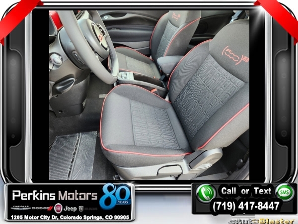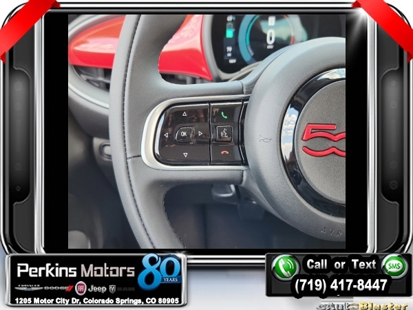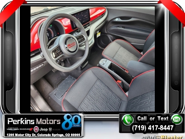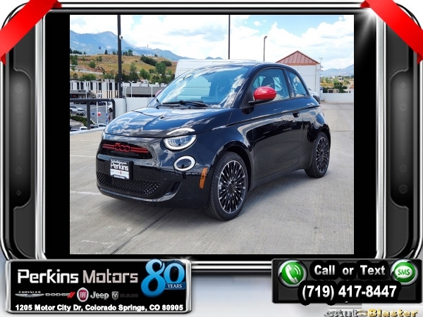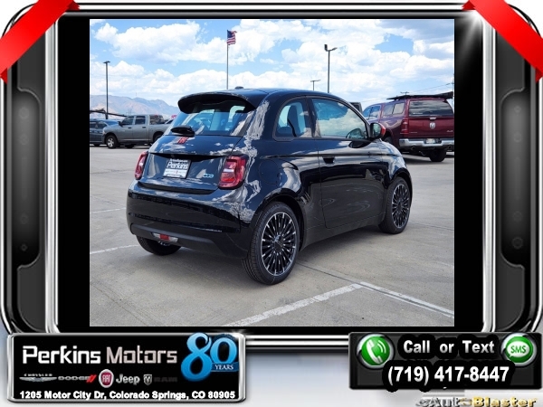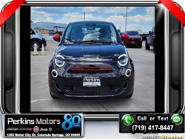 Factory MSRP: $34,095 $1,023 off MSRP! Tuxedo Black 2024 Fiat 500e Battery Electric FWD 1-Speed Automatic Electric<br>ABS brakes, Alloy wheels, Compass, Electronic Stability Control, Front dual zone A/C, Illuminated entry, Low tire pressure warning, Navigation System, ParkView Rear Back-Up Camera, Remote keyless entry, Traction control.<br>Check us out at www.perkinsmotors.com to see our specials! Since opening our doors in 1944, we’ve been proud to serve Colorado Springs, CO, and the surrounding areas of Pueblo, Castle Rock and Denver, CO. Throughout this time of being family owned for 80 years, we’ve maintained a firm commitment to our customers: to offer a wide selection of New Chrysler, Dodge, Fiat, Jeep, and Ram vehicles and quality pre-owned vehicles, and provide a quick, no-hassle car-buying process that ensures everyone drives off the lot satisfied with their purchase.<br><br>ABS brakes, Alloy wheels, Compass, Electronic Stability Control, Front dual zone A/C, Illuminated entry, Low tire pressure warning, Navigation System, ParkView Rear Back-Up Camera, Remote keyless entry, Traction control, 4-Wheel Disc Brakes, 6 Speakers, Air Conditioning, AM/FM radio: SiriusXM, Anti-whiplash front head restraints, Automatic temperature control, Brake assist, Bumpers: body-color, Cloth Bucket Seats w/Red Accents, Cruise Control, Delay-off headlights, Driver door bin, Driver vanity mirror, Dual front impact airbags, Dual front side impact airbags, Four wheel independent suspension, Front anti-roll bar, Front Bucket Seats, Front Center Armrest, Front reading lights, Fully automatic headlights, Knee airbag, Occupant sensing airbag, Outside temperature display, Overhead airbag, Overhead console, Panic alarm, Passenger door bin, Passenger vanity mirror, Power door mirrors, Power steering, Power windows, Premium audio system: Uconnect 5.0, Radio data system, Radio: Uconnect 5 Nav w/10.25 Display, Rain sensing wipers, Rear anti-roll bar, Rear window defroster, Rear window wiper, Security system, Split folding rear seat, Spoiler, Sport steering wheel, Steering wheel mounted audio controls, Telescoping steering wheel, Tilt steering wheel, Trip computer, Variably intermittent wipers, and Wheels: 17 x 7.0 Aluminum Multi-Spoke.<br><br>121/100 City/Highway MPG