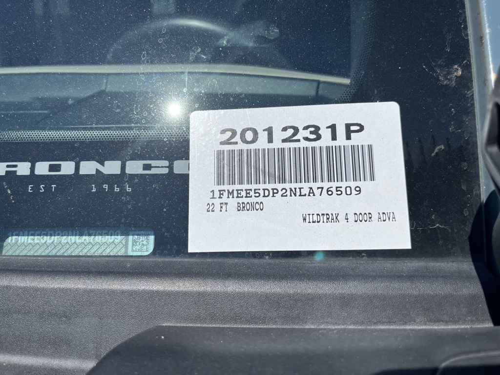Priced below KBB Fair Purchase Price!Bronco Wildtrak, 4D Sport Utility, 2.7L 6-Cylinder PDI Turbocharged DOHC, 10-Speed Automatic, 4WD, 12" LCD Capacitive Touchscreen w/Swipe Capability, 2 Smart Charging USB Ports In Dashboard, 360-Degree Camera, Adaptive Cruise Control, Additional Sound Deadening, Alloy wheels, Connected Built-In Navigation, Equipment Group 354A Lux Package, Evasive Steering Assist, Exterior Parking Camera Rear, Front dual zone A/C, Front fog lights, Front Parking Sensors, Heated Steering Wheel, Information on Demand Panel, Low tire pressure warning, Navigation system: Connected Navigation, Overhead airbag, Radio: B&O Sound System by Bang & Olufsen, Sideview Mirrors, Universal Garage Door Opener, Wireless Charging Pad.CARFAX One-Owner.Awards: * NACTOY 2022 North American Utility of the Year