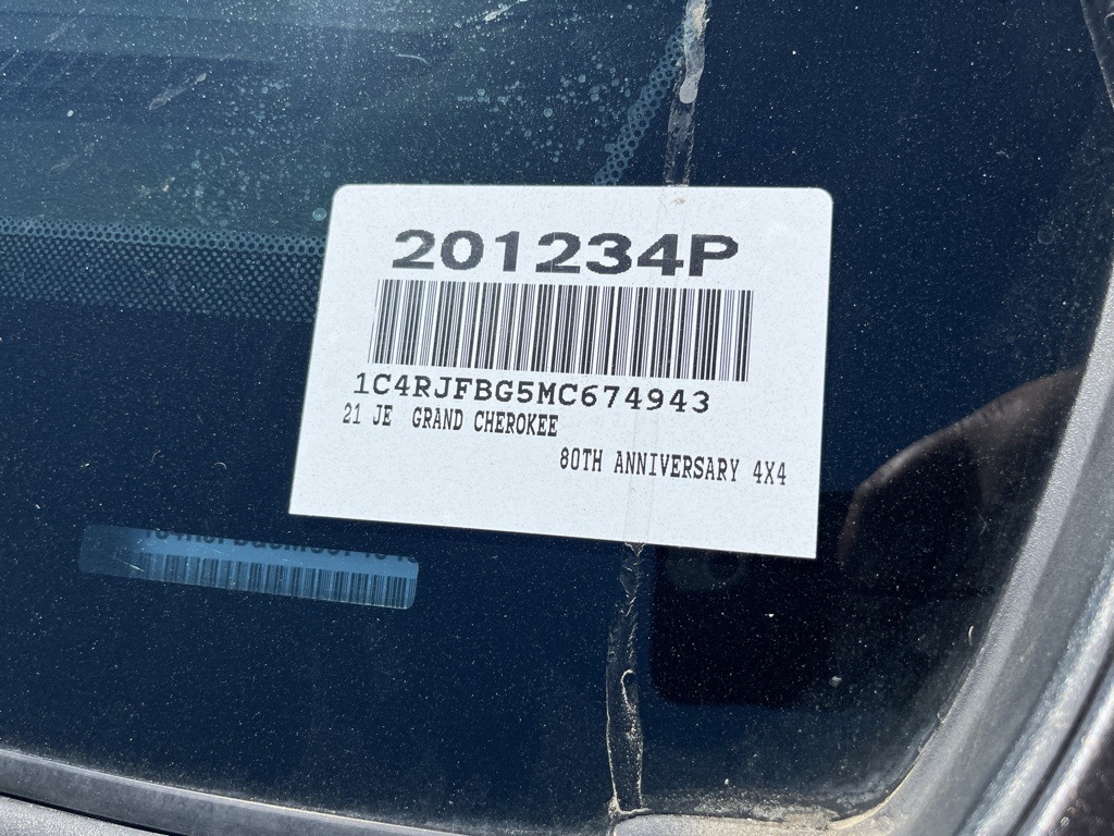 Priced below KBB Fair Purchase Price!NEW FILTERS, Grand Cherokee 80th Anniversary Edition, 4D Sport Utility, 3.6L V6 24V VVT, 8-Speed Automatic, 4WD, Granite Crystal Metallic Clearcoat, Black w/Leather Trimmed Bucket Seats or Leather Trim Seats w/Perforated Inserts or Leather Trimmed Bucket Seats (JY) or Leather Trimmed Seats, 4G LTE Wi-Fi Hot Spot, 506 Watt Amplifier, 8.4" Touchscreen Display, 80th Anniversary Luxury Group, Active Noise Control System, Adaptive Cruise Control w/Stop, Advanced Brake Assist, Apple CarPlay/Android Auto, Auto-dimming door mirrors, Auto-dimming Rear-View mirror, Berber Floor Mats w/80th Anniversary Tag, Black Roof Molding, Body Color Claddings, Body Color Door Handles, Body Color Shark Fin Antenna, Cargo Compartment Cover, Compass, Dark Day Light Opening Moldings, Dark Headlamp Bezel Finish, Dark Lens Taillamps, Dual-Pane Panoramic Sunroof, Electronic Stability Control, Front Accent/Body Color Fascia, Front dual zone A/C, Front fog lights, Full Speed FWD Collision Warn Plus, Garage door transmitter, GPS Antenna Input, GPS Navigation, Granite Crystal Exterior Accents, Granite Crystal Exterior Badging, Granite Crystal Exterior Mirror Caps, Granite Crystal/Black Grille, HD Radio, Heated door mirrors, Heated front seats, Heated Second Row Seats, Illuminated entry, Integrated Voice Command w/Bluetooth, Jeep 80th Anniversary Badges, Jeep 80th Anniversary Edition, Lane Departure Warning Plus, Leather Trimmed Bucket Seats (JY), Low tire pressure warning, LT. Tungsten Interior Accent Stitching, Memory seat, Parallel & Perp Park Assist w/Stop, ParkView Rear Back-Up Camera, Piano Black/Anod. Gunmetal Interior Accents, Power driver seat, Power Liftgate, Power Tilt/Telescope Steering Column, Premium Alpine Speaker System, Quick Order Package 2BK 80th, Radio: Uconnect 4C Nav w/8.4" Display, Rain Sensitive Windshield Wipers, Rear Accent/Body Color Fascia, Remote keyless entry, Security system, SiriusXM Satellite Radio, Steering wheel mounted audio controls, Traction control, Ventilated Front Seats, Wheels: 20" x 8.0" Granite Crystal Aluminum.Clean CARFAX.CARFAX One-Owner.